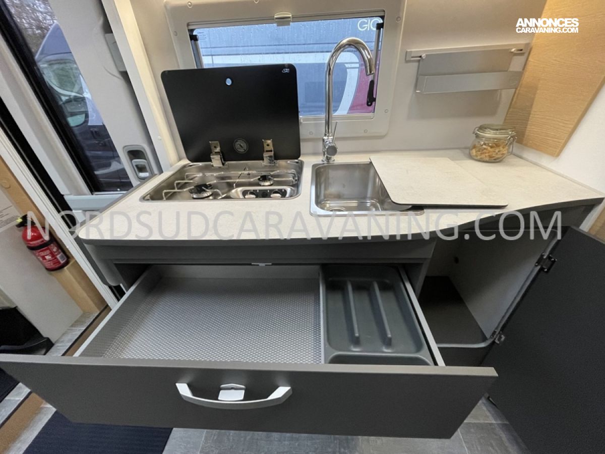 Nouveauté 2025, GIOTTILINE SIENA 330 Première Edition, Ultra compact, 5.99m, Lit à la française, Douche indépendante, Grand frigo, Caméra de recul…