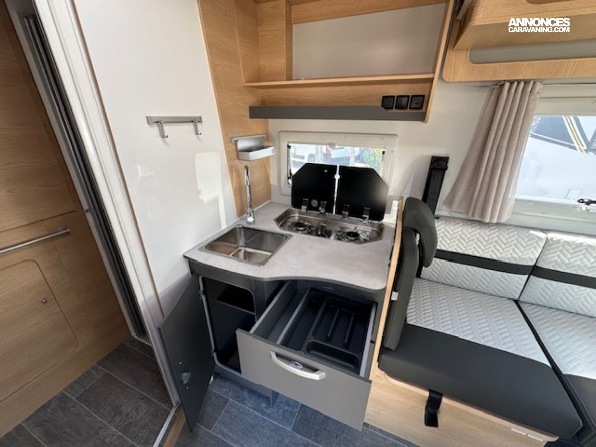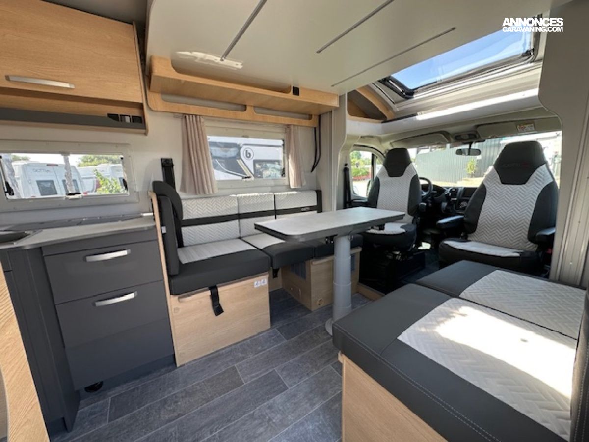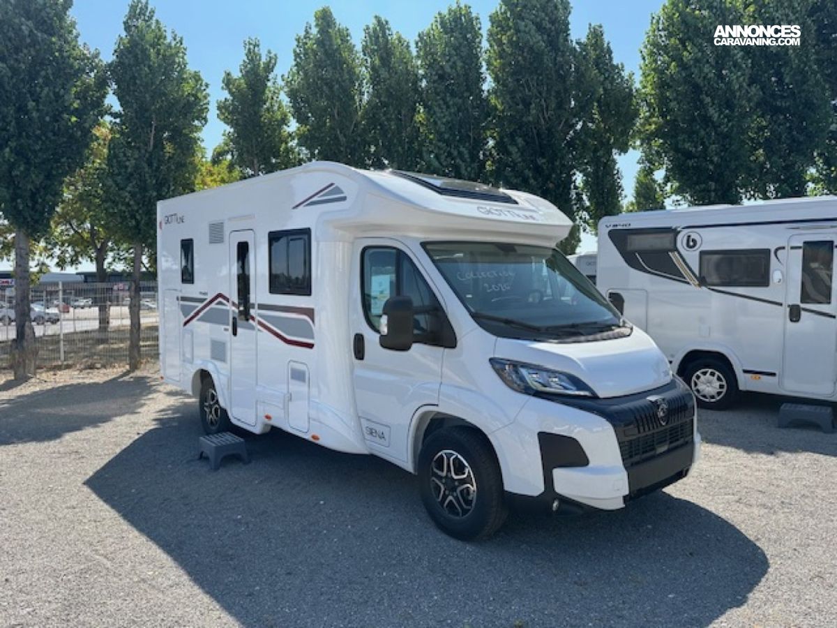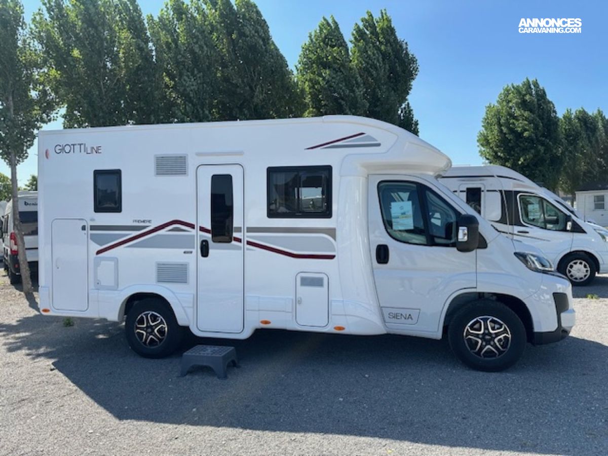 Découvrez le Giottiline Siena 350 première édition, le profilé tout équipé, compact qui combine maniabilité et confort haut de gamme, signé par le groupe Rapido. Avec seulement 6,36 m de long et 2,32 m de large, il se faufile partout comme un fourgon tout en offrant un spacieux salon face-face, une salle de bain avec WC séparés et de nombreux rangements pour voyager sereinement.