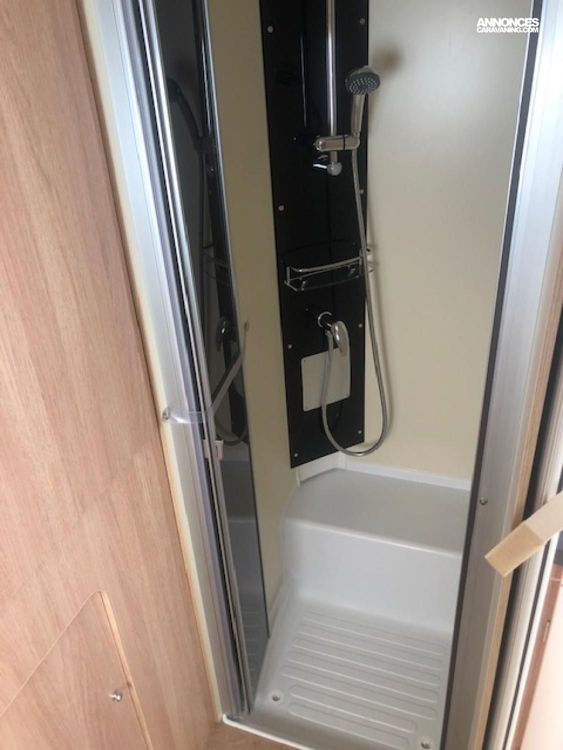 A l'arrière la salle d'eau transversale est très grande et la cabine de douche de taille confortable. Un grand dressing est également présent dans la salle d'eau.
