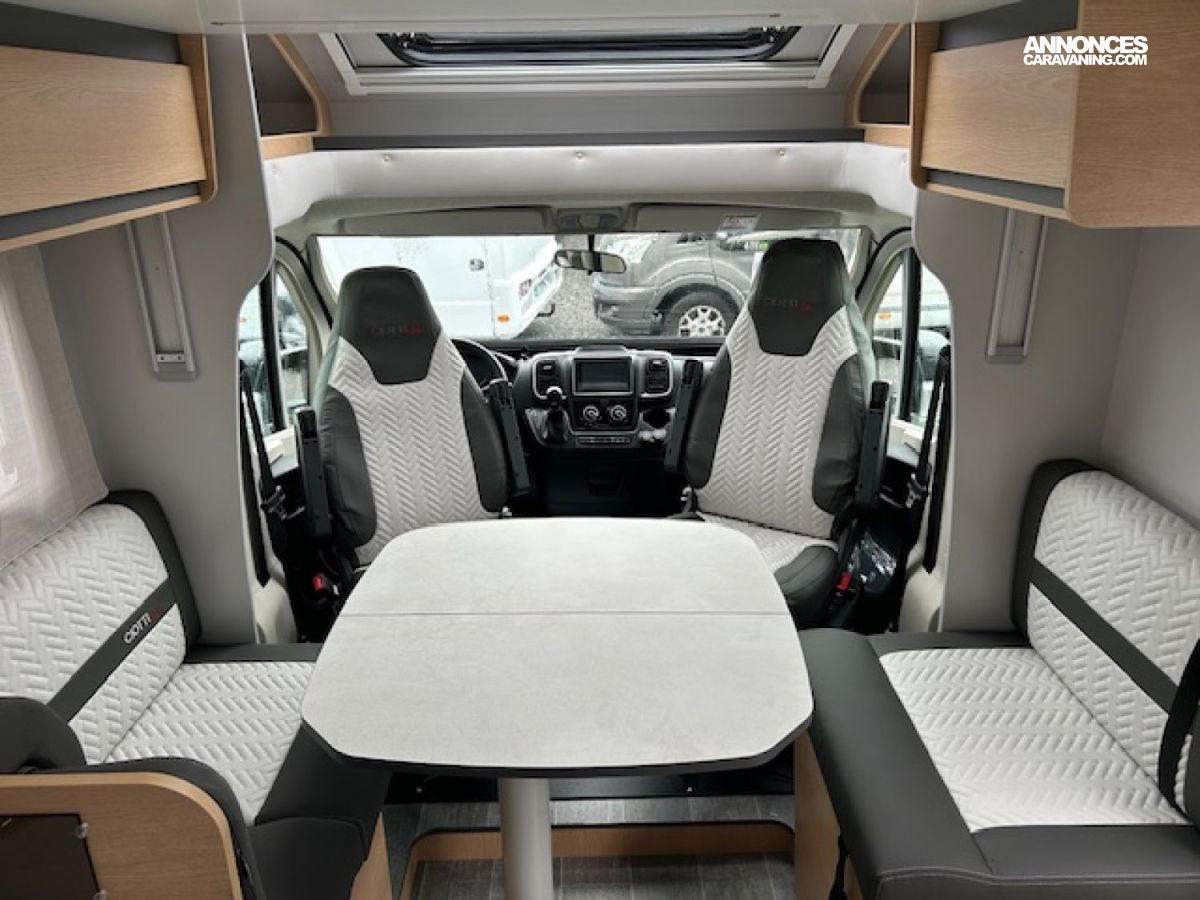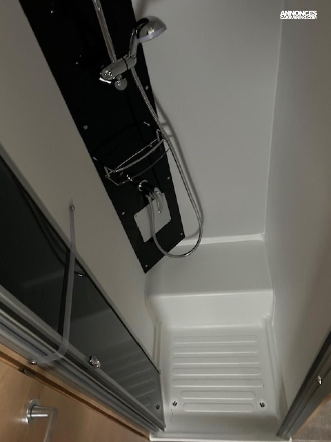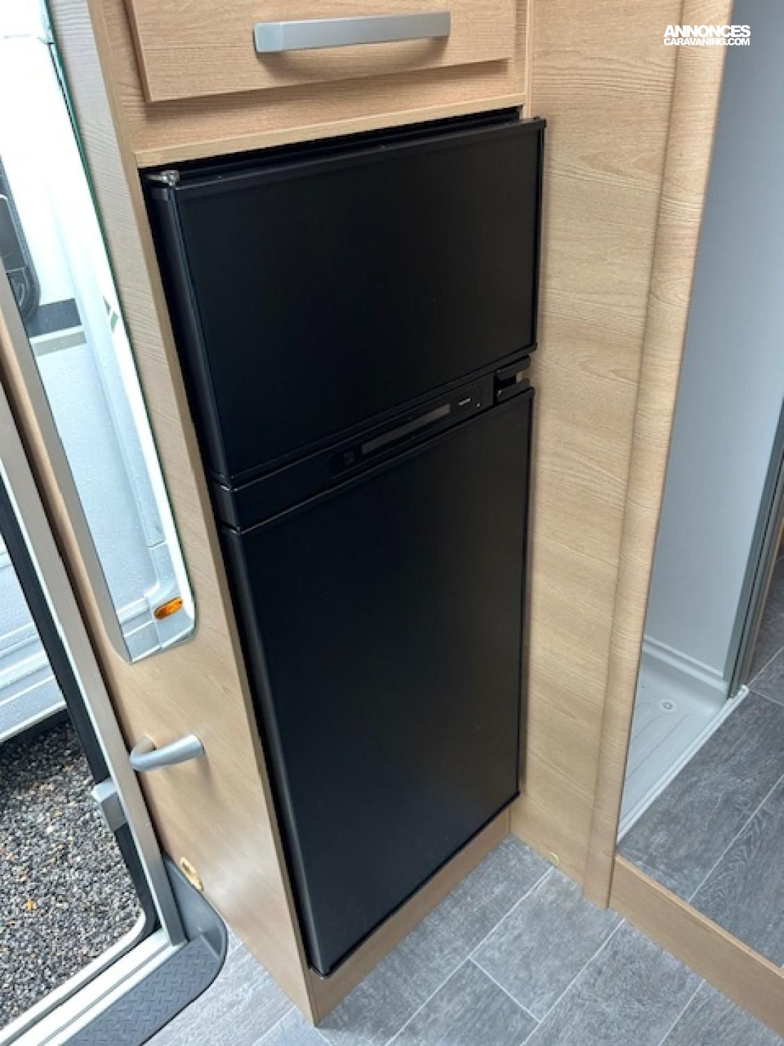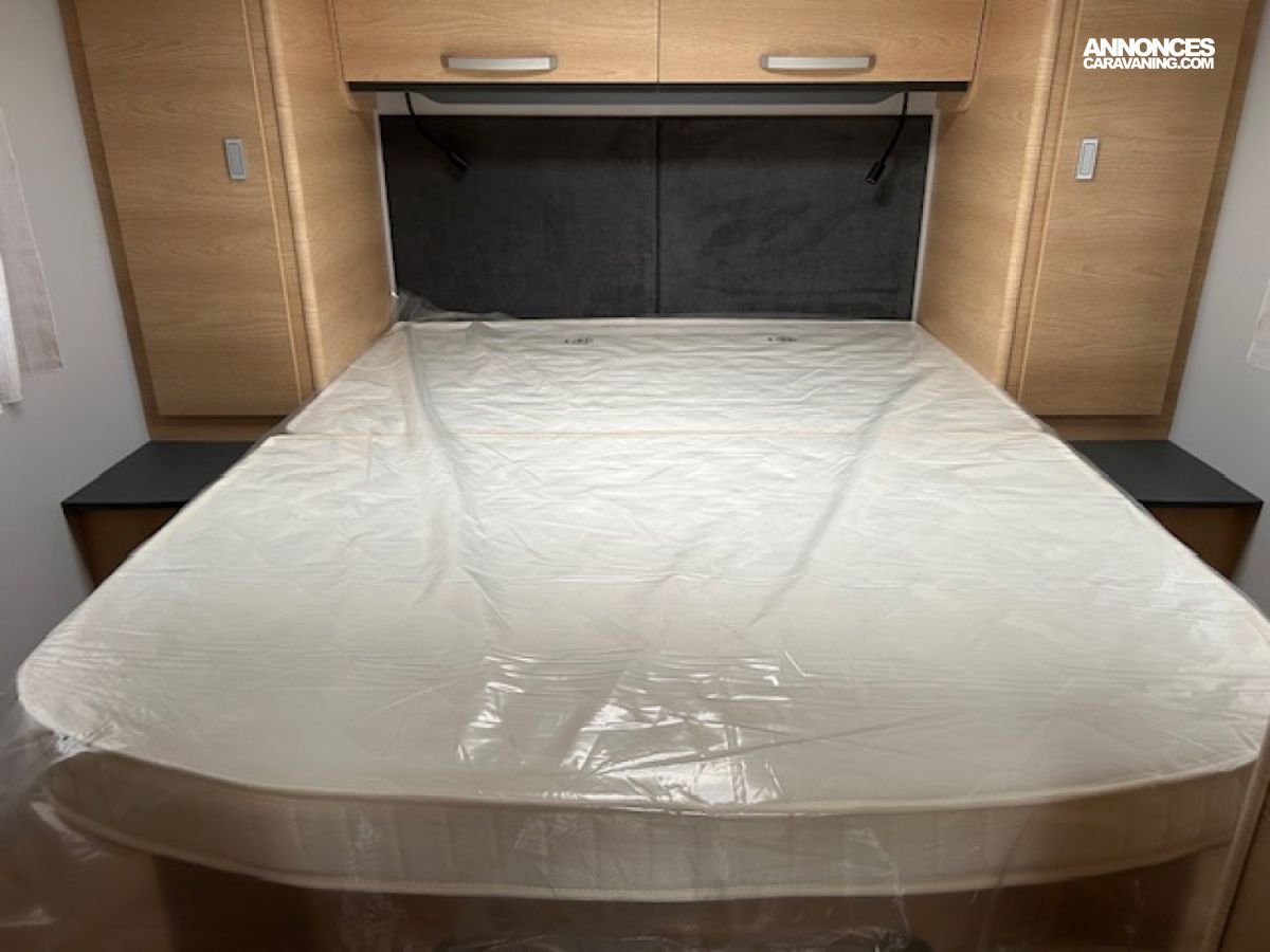 Porte cellule vitrée avec 2 points de fermeture et centralisée - caméra de recul - façade arrière-« style » avec feux Led - Sellerie elba - Maxi lanterneau Sky Wiew - Climatisation cabine - ESP avec aide à la montée/descente, - Traction + - régulateur de vitesse - 2 Airbags - pré-équipement radio - Suspensions AR renforcées - Housses sur sièges cabine - Eaux usées chauffées - Moustiquaire porte cellule - Sommier à lattes - Pare-chocs peint - éclairage extérieur LED - commande Truma 4000CP+ Radio 6.8“ - Duo control - rideaux occultant cabine - Tapis cabine et cellule - Jantes alu 16’