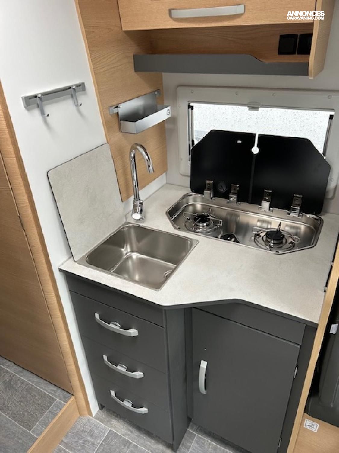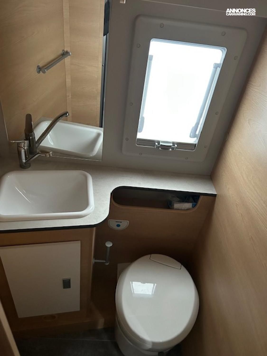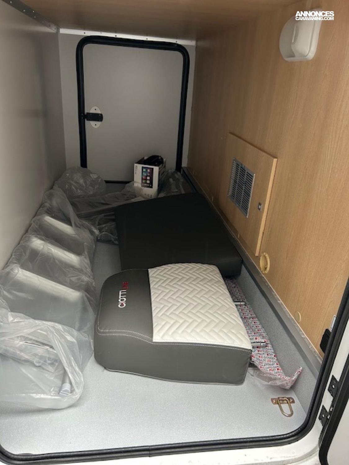 Porte cellule vitrée avec 2 points de fermeture et centralisée - caméra de recul - façade arrière-« style » avec feux Led - Sellerie elba - Maxi lanterneau Sky Wiew - Climatisation cabine - ESP avec aide à la montée/descente, - Traction + - régulateur de vitesse - 2 Airbags - pré-équipement radio - Suspensions AR renforcées - Housses sur sièges cabine - Eaux usées chauffées - Moustiquaire porte cellule - Sommier à lattes - Pare-chocs peint - éclairage extérieur LED - commande Truma 4000CP+ Radio 6.8“ - Duo control - rideaux occultant cabine - Tapis cabine et cellule - Jantes alu 16’