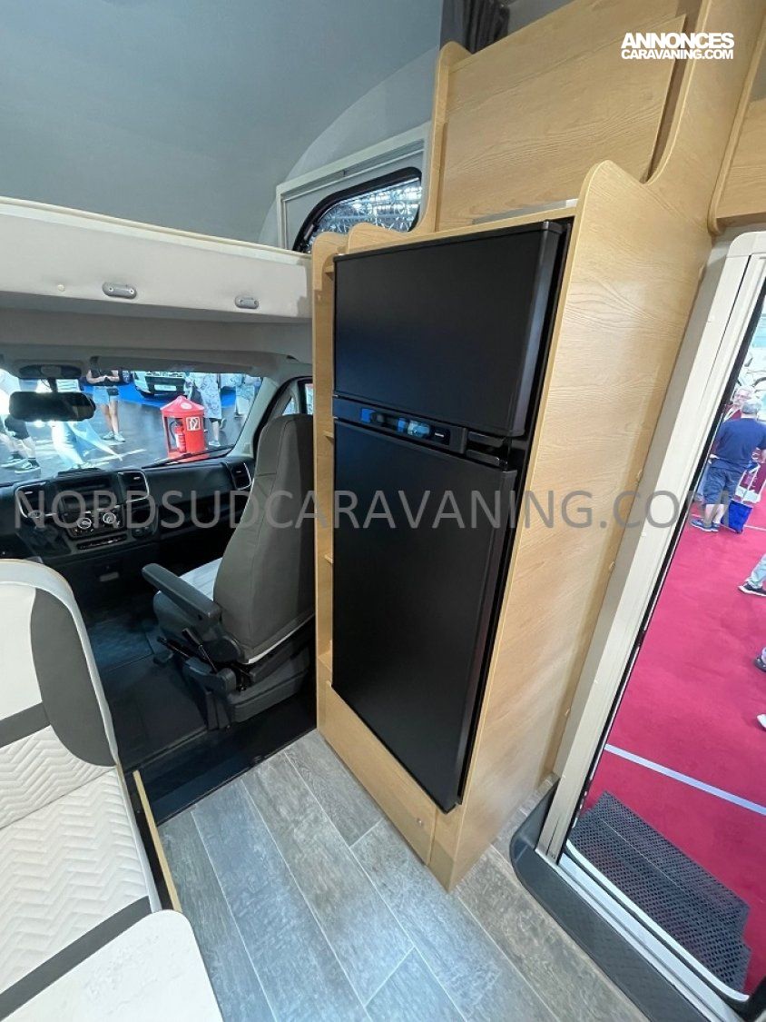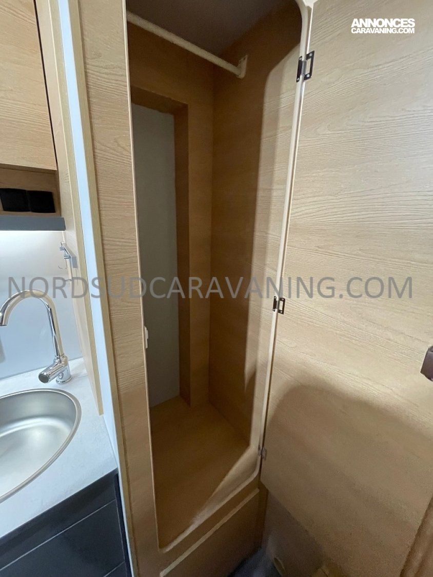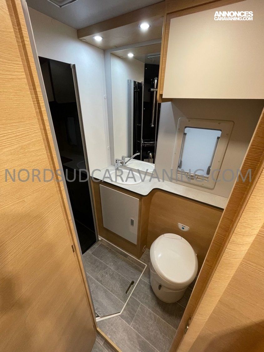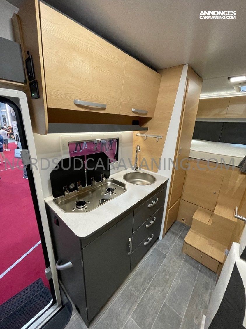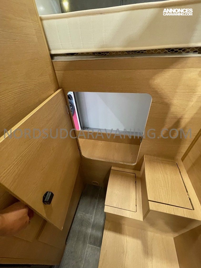 CAMPING-CAR CAPUCINE GIOTTILINE SIENA 440 moins de 7m, grande soute garage, 6 places carte grise, Grand lit arrière transversal de 136 cm de large, Grandes portes d'accès au garage à droite et à gauche.