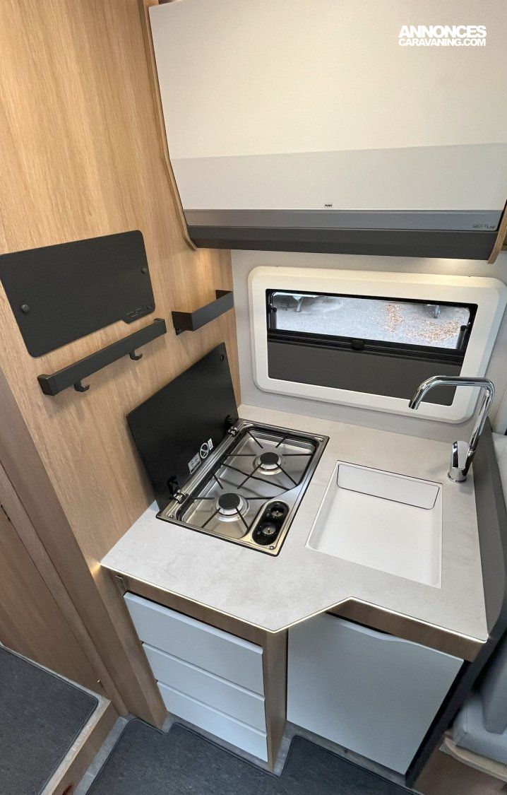 La finition comprend une boîte automatique à 8 rapports, un autoradio 9 pouces avec Apple CarPlay et Android Auto, une sellerie Elsa et de la moquette pour l'espace de vie et l'habitacle.