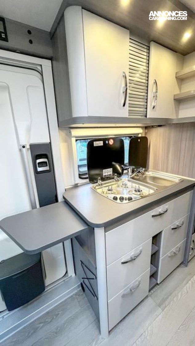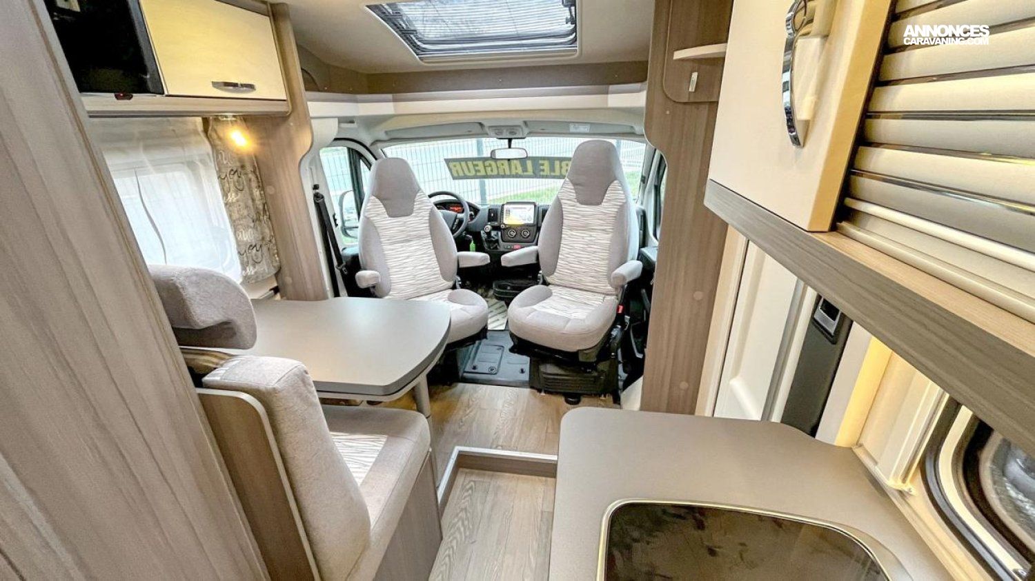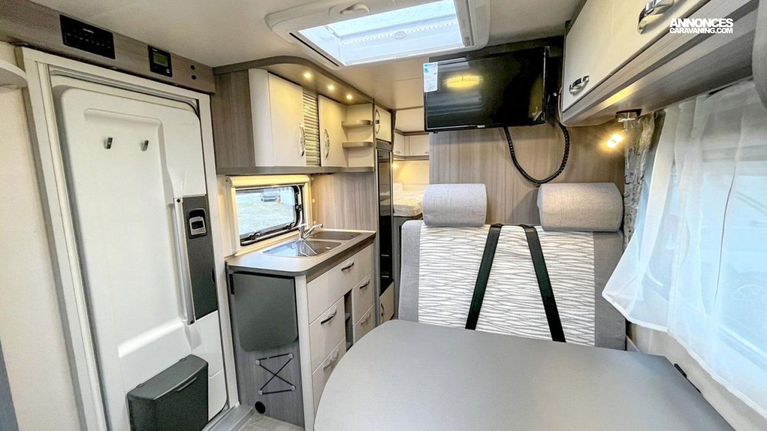 Double porte de soute : Options : Caméra de reculAutoradio multimédia Bluetooth ( Apple CarPlay & Android auto)Store banneLumière de seuil extérieure ledMarche pied électriquePanneau solaireGrand réfrigérateur 133L double accès avec freezer trimix automatiqueTV 22’ + Antenne satellite automatiqueÉclairage d’ambiance Full LedChauffage Truma Combi 6000 Watts+ chauffe-eau à gazEaux usées isolées et chauffées Séparation jour/nuitCuisine droite + Salon face routeRéchaud 3 feux gaz + Évier InoxRallonge de plan de travail amoviblesRallonge de table à mangerPenderies sous lit arrièreDouche avec paroi rigideSalle d’eau et WCJantes alu 16’Contrôle de descente et de traction intelligentAirbag conducteur et passagerClimatisation de cabine avantABS, EBD, ESPRégulateur de vitesseBarres stabilisatrices avant et arrièrePack électrique ( Vitres électriques, Rétroviseurs électriques chauffants, verrouillage centralisé…)Sièges avants Captain Chair pivotantsEmplacement 2 bouteilles de gaz 13 Kg et rails coulissantsSoute arrière spacieuse, double accès, revêtement antidérapant, œillets d'arrimage, éclairage intérieur et capacité de charge à 150kg...