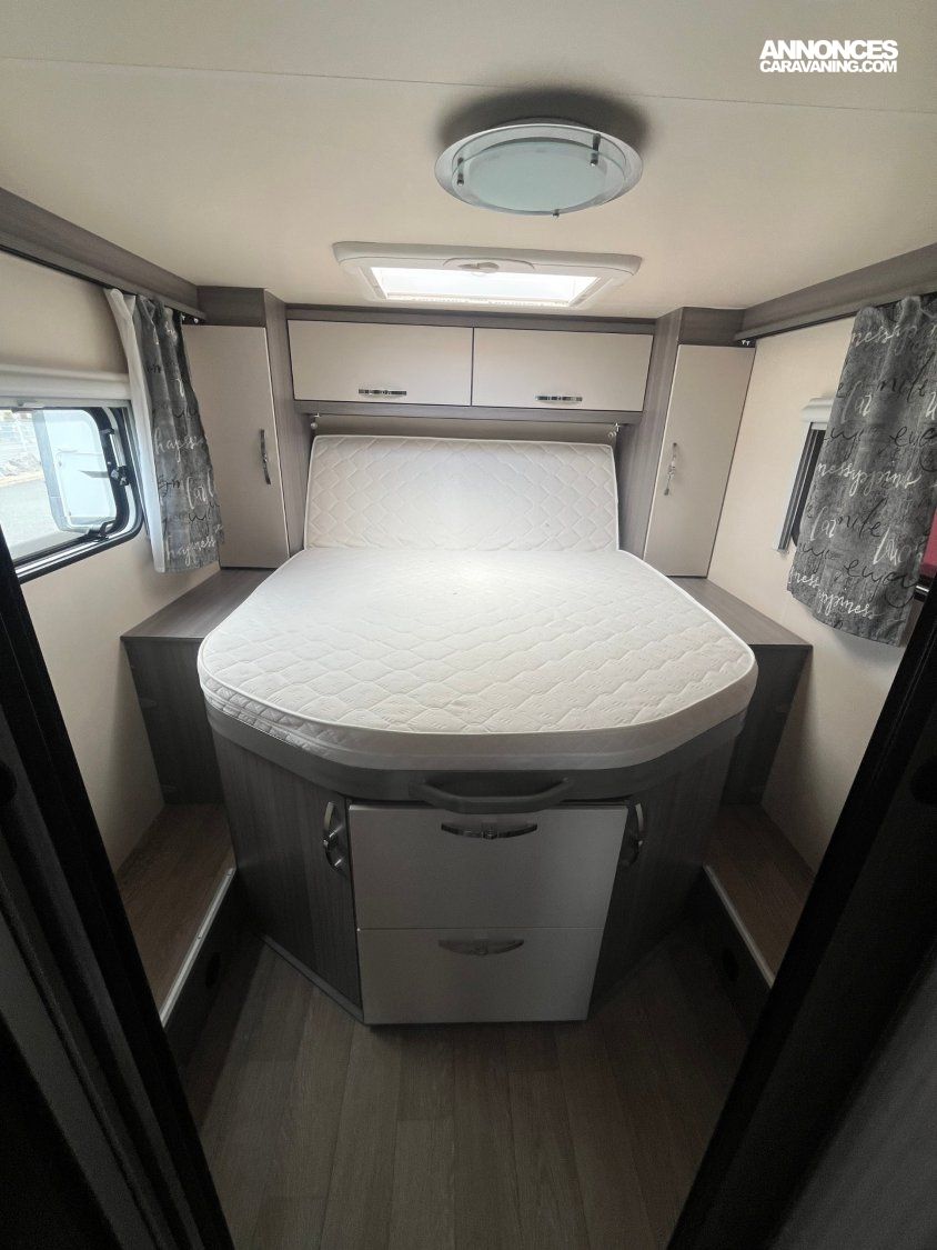 Son implantation met en valeur un lit central confortable, accessible de chaque côté, une grande salle de bain arrière, ainsi qu’un coin cuisine bien équipé, optimisé pour le quotidien des voyageurs.