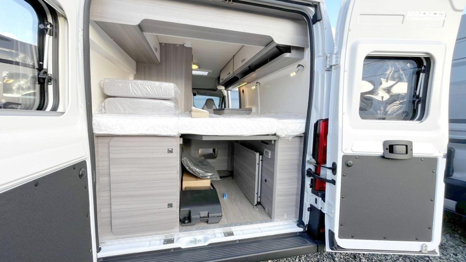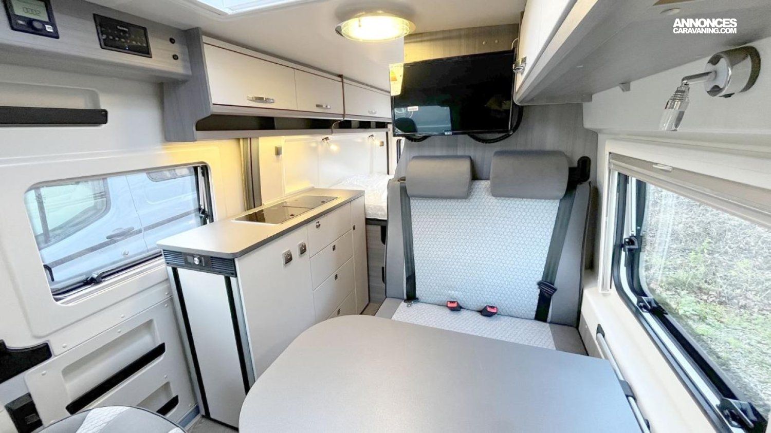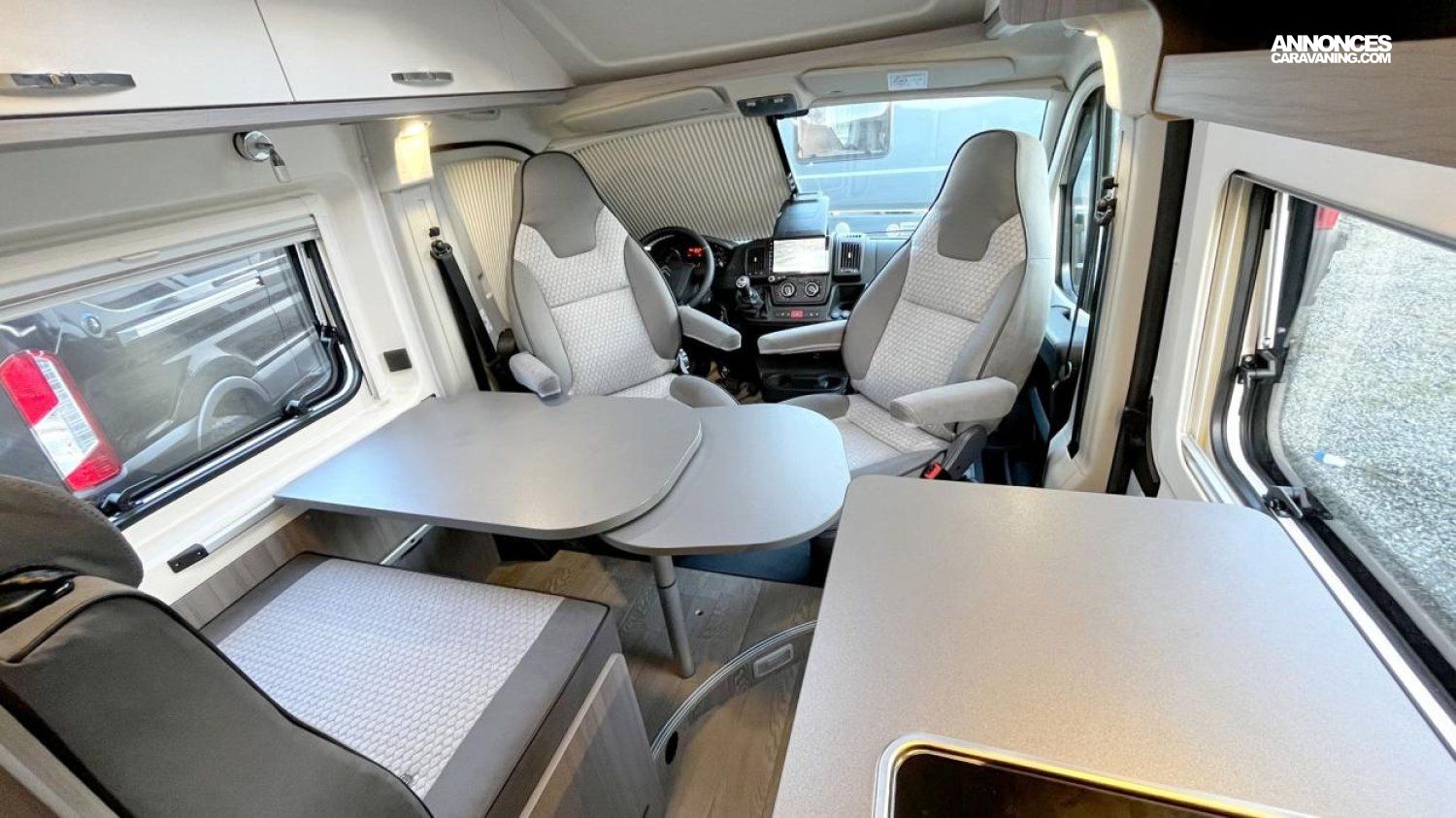 Type marche pied : électrique Options : Lit double sur soute 194x164 cm1 Couchage de dînette supplémentaire 58x182 cmCaméra de reculStation multimédia tactile Bluetooth (Apple CarPlay & Android auto)Kit téléphone mains libresRégulateur / limiteur de vitesseContrôle de descente et de traction intelligentRéfrigérateur 90L double accès + Freezer à compressionNombreuses prises 220v et USBTV avec support pivotant salon / chambreAntenne satellite automatiqueCombi chauffage + chauffe-eau à gaz Truma 4000WBatterie Cellule AGM 95 AhSkydome : Grand lanterneau de salonSalon face routeExtension de table à manger pivotanteCuisine droite réchaud 2 feuxMeuble à fermeture "soft close"Evier inox1 penderieRéservoirs d’eau propre et usées isolésMoustiquaire de porte de cellule et de lanterneauBaies latérales et arrière double vitrage entrebaillantes + rideau / moustiquaireSalle d'eau avec baieDouche + WC chimiqueHOBBY Connect ( gestion panneau de commande via Bluetooth )Store banne à coffre noirLumière de seuil extérieure bandeau LedMarche pied électriqueABS/ESP2 AirbagsStart&Stop avec booster de chargeVitres électriquesRétroviseurs électriques chauffantsVerrouillage centraliséSièges avants Captain Chair pivotantsVolant + pommeau cuirÉclairage d’ambiance Full LedClimatisation de cabineTapis de sol moquette cabineStores de cabine RémisJantes alu 16'Bavettes AV/ARPare choc avant ton caisseSellerie Tissu grisEmplacement coulissant 2 bouteilles de gazSoute arrière, œillets d'arrimage, éclairage intérieur...