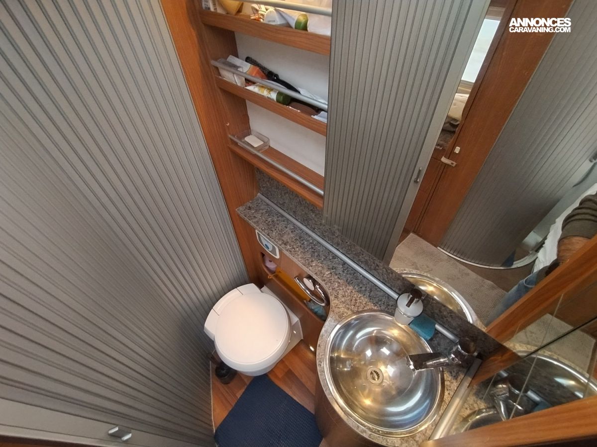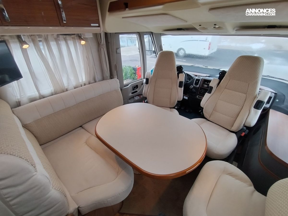 Son implantation intérieure est particulièrement appréciée, avec un grand salon lumineux à la sellerie comme neuve, une cuisine tout équipé aux multiples rangements avec four et grand frigo-congélateur. Côté nuit un bel espace avec lit central associé à une salle de bain confortable avec douche et WC séparés ; à l’avant un grand lit pavillon pour accueillir confortablement 2 personnes supplémentaires. Une grande soute traversante complète l’ensemble pour transporter tous vos équipements.