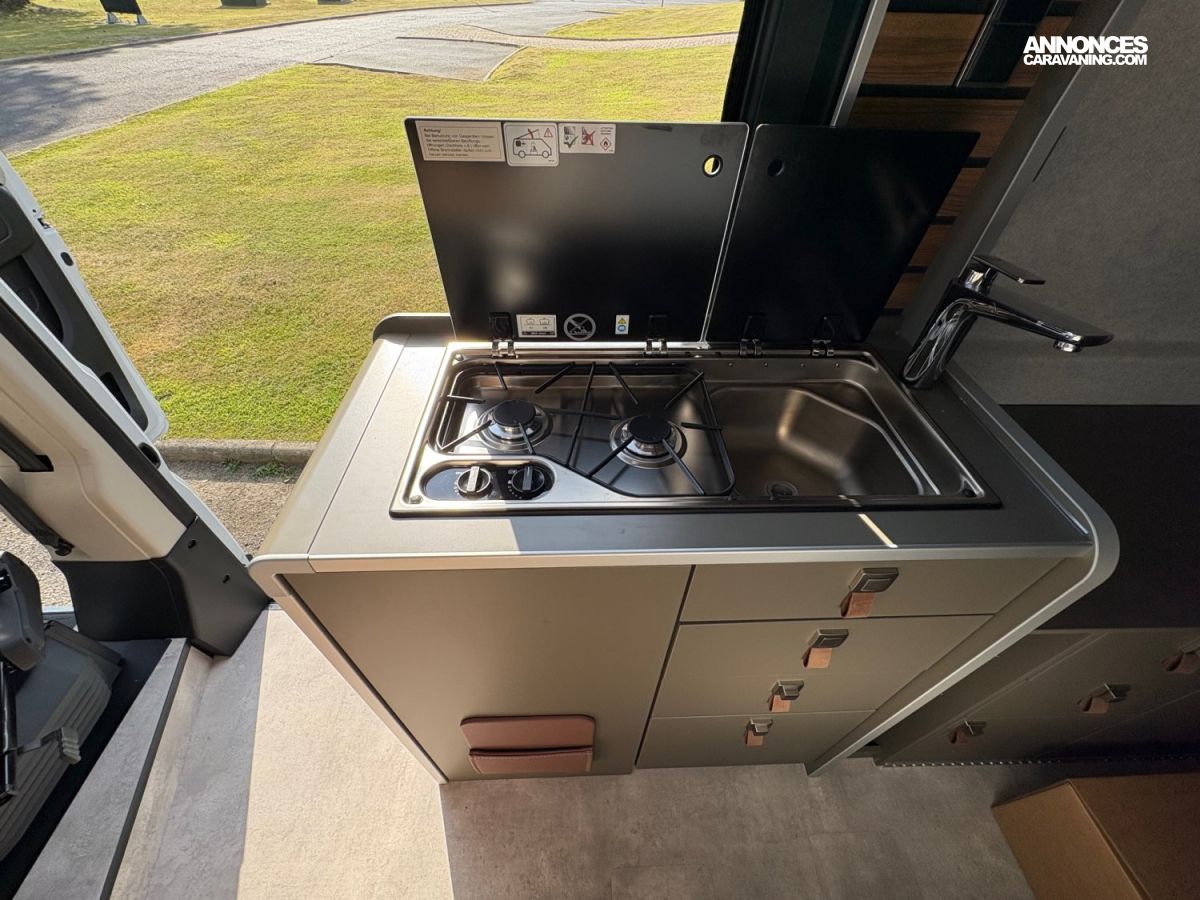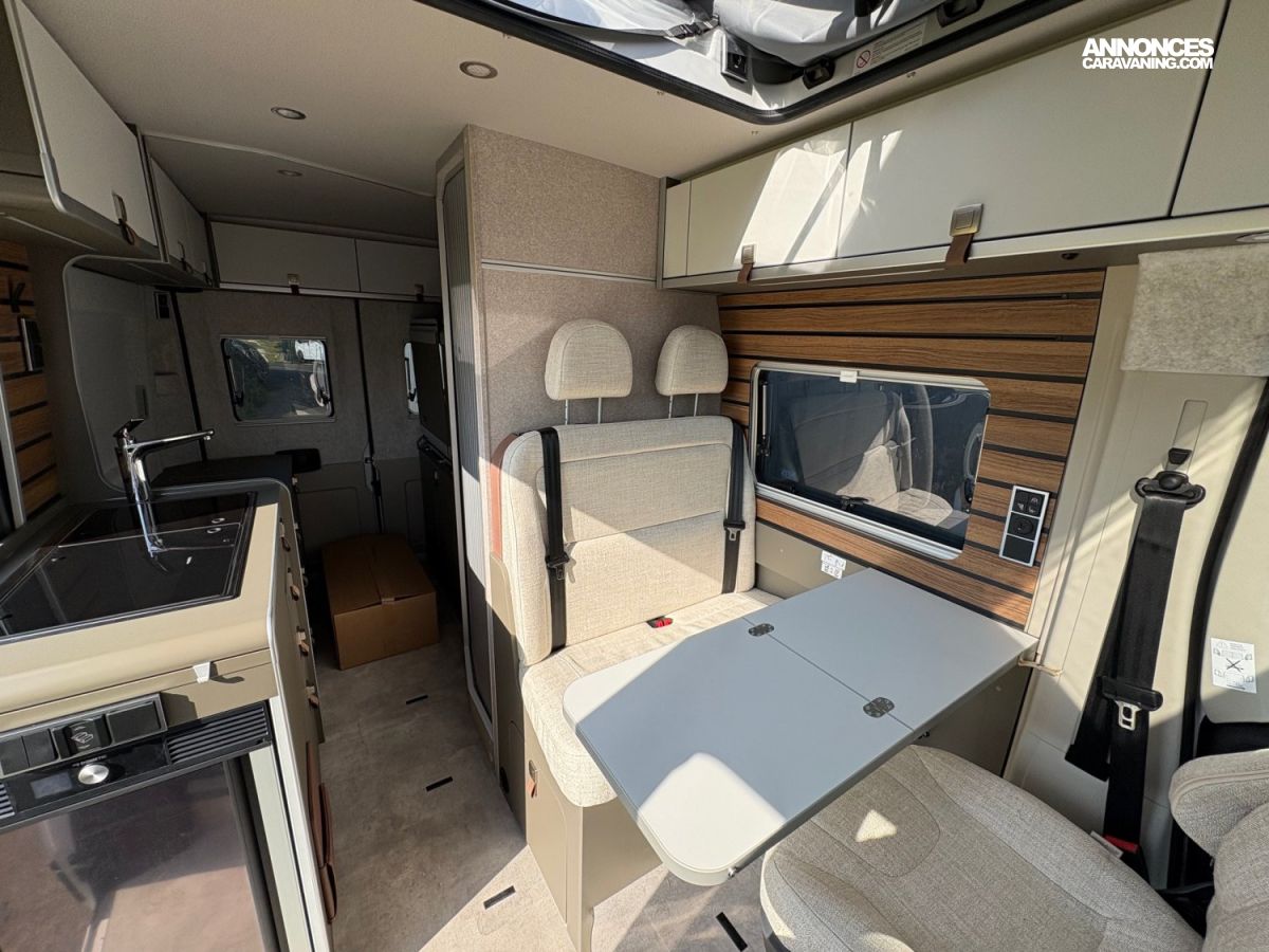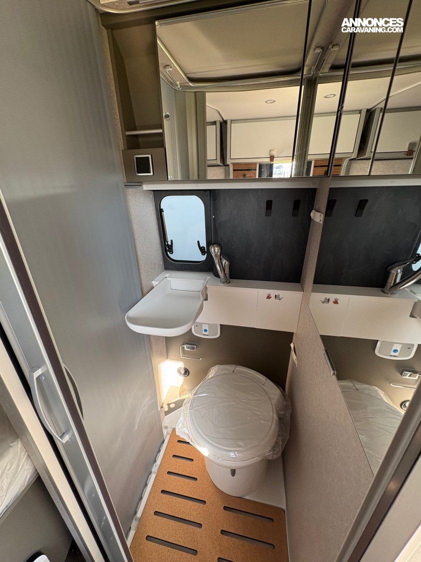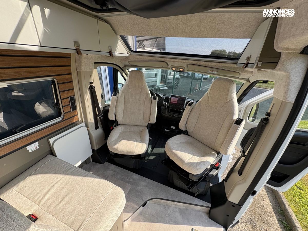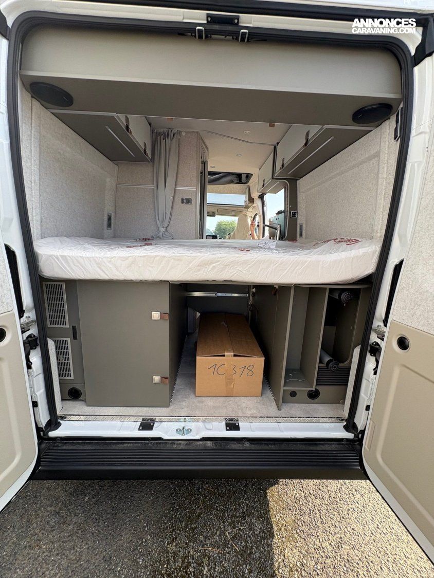 Skyview avec store occultantSystème d’éclairage d’ambiance : système d’éclairage à plusieurs niveaux avec commande dynamique et individuelle (y compris l’intensité de la lumière) ainsi qu’un balisage au solAmbiance style « HOME » (2 coussins houssés + pochette de rangement en tissu)Draps-housses sur mesure pour lits arrière adaptés aux contours du matelasCaillebotis de douche avec surface en liège