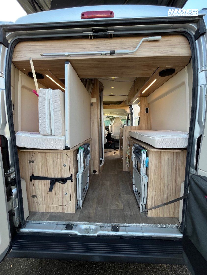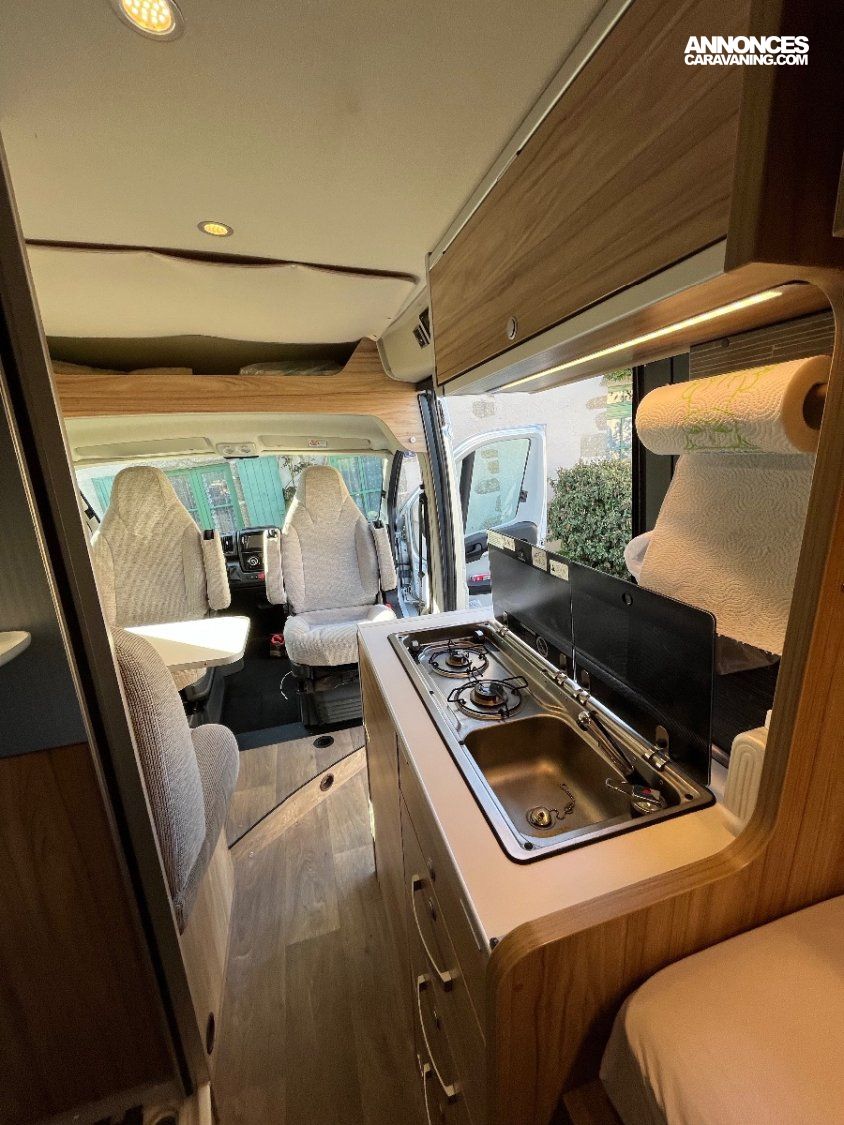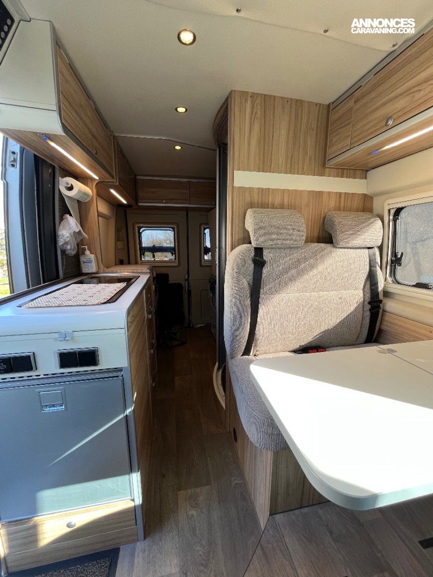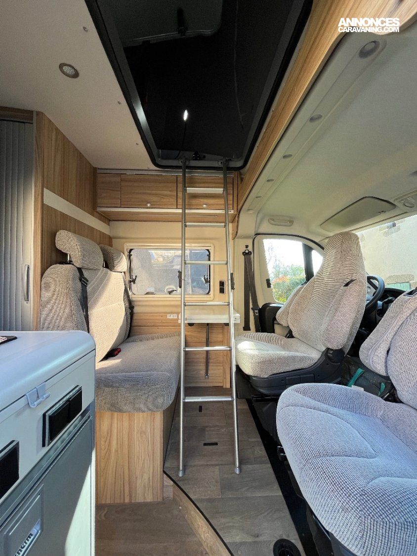 Réservoir go 90l, eau propre 100l, eau grise 100l, toit relevable, store extérieur 3m, moustiquaire porte latérale, climatisation manuelle, 2ème batterie cellule, réfrigérateur à compression, 2 feux gaz, évier, salle d’eau équipée douche, lavabo wc, eau chaude et chauffage Truma gaz, panneau solaire 120w, lit bas 138x196, lit haut 135x200, sommiers à assiettes, salon avec table escamotable, isofix sur banquette, isolation toit relevable, multimédia Pioneer + caméra de recul, kit 2 chaises + table pliantes, porte vélos (2)..