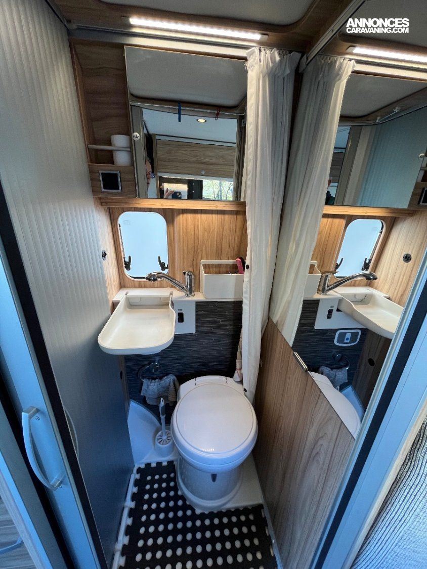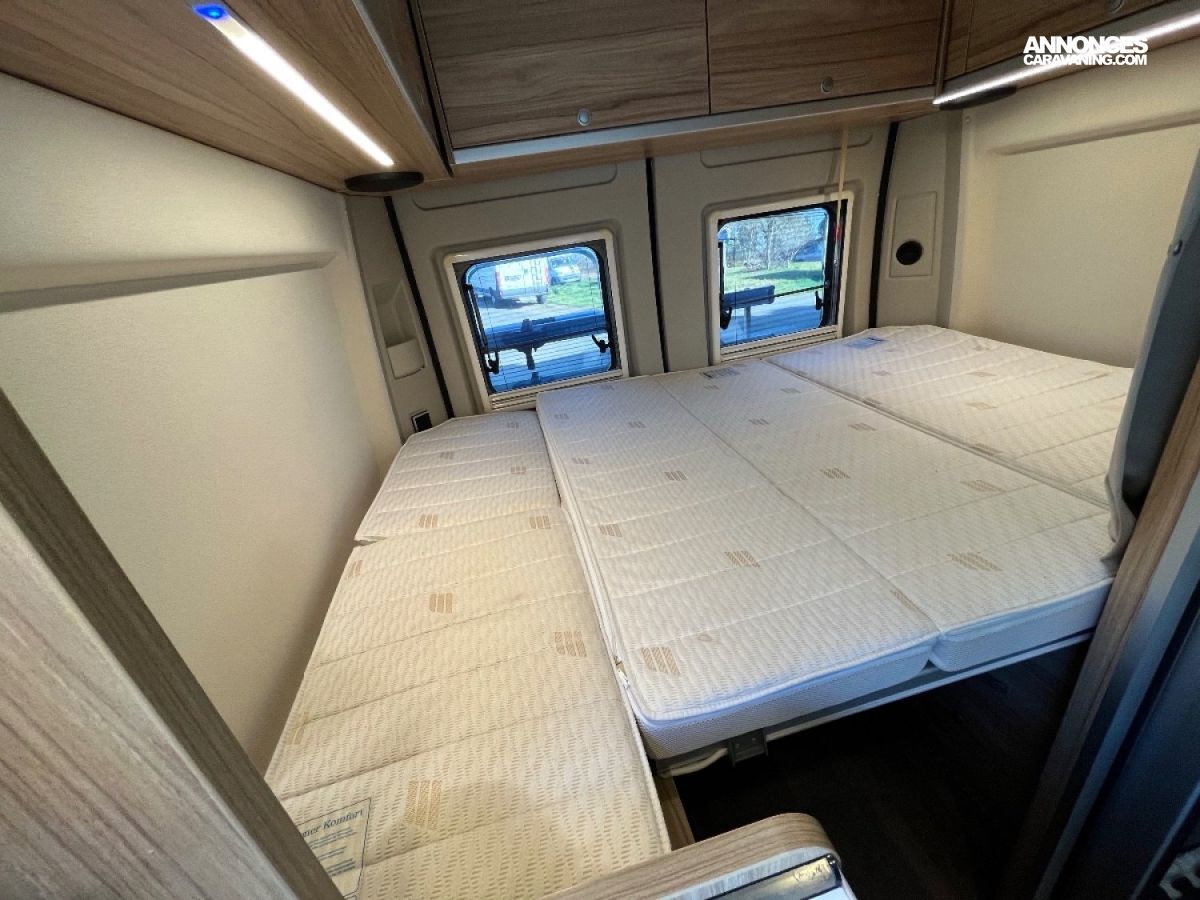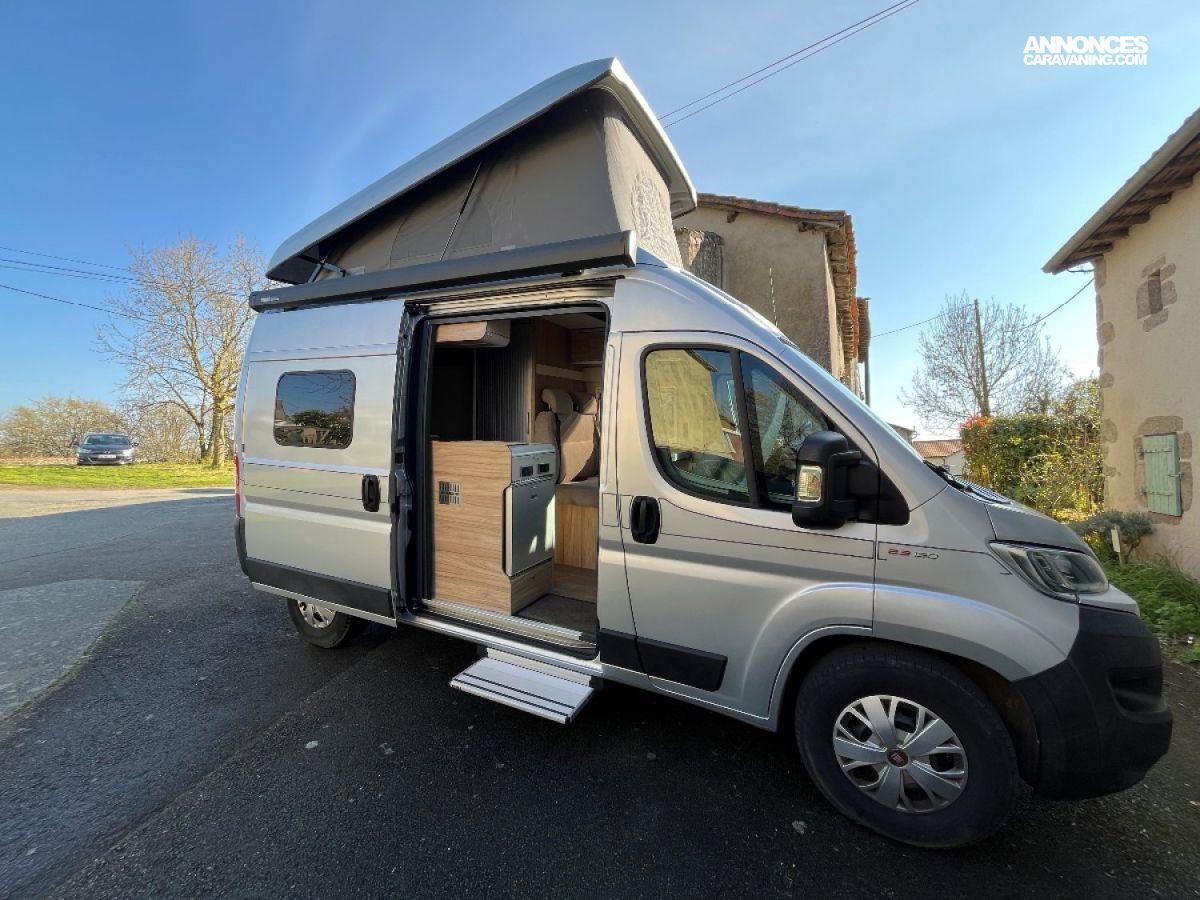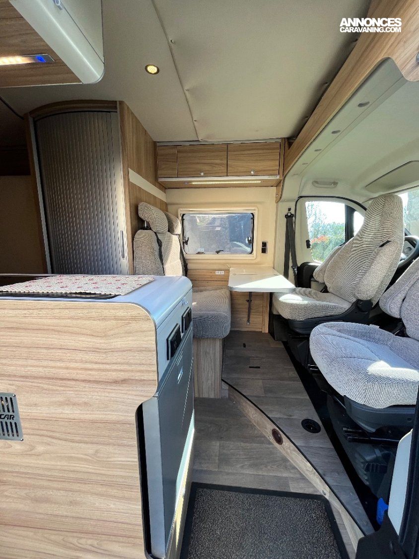 Réservoir go 90l, eau propre 100l, eau grise 100l, toit relevable, store extérieur 3m, moustiquaire porte latérale, climatisation manuelle, 2ème batterie cellule, réfrigérateur à compression, 2 feux gaz, évier, salle d’eau équipée douche, lavabo wc, eau chaude et chauffage Truma gaz, panneau solaire 120w, lit bas 138x196, lit haut 135x200, sommiers à assiettes, salon avec table escamotable, isofix sur banquette, isolation toit relevable, multimédia Pioneer + caméra de recul, kit 2 chaises + table pliantes, porte vélos (2)..