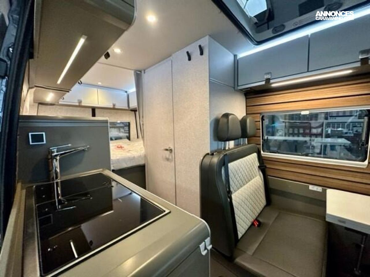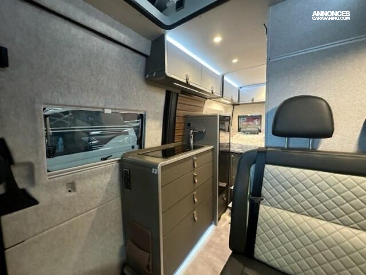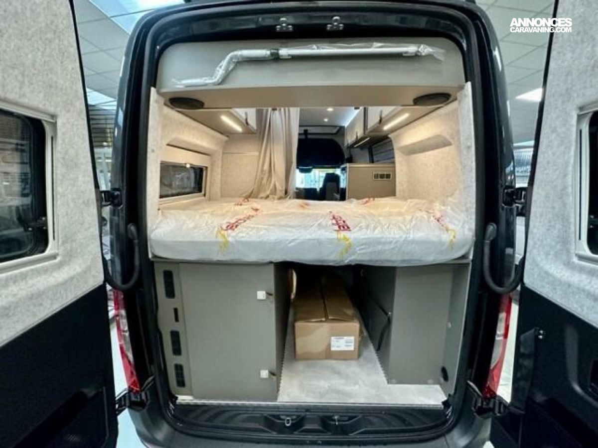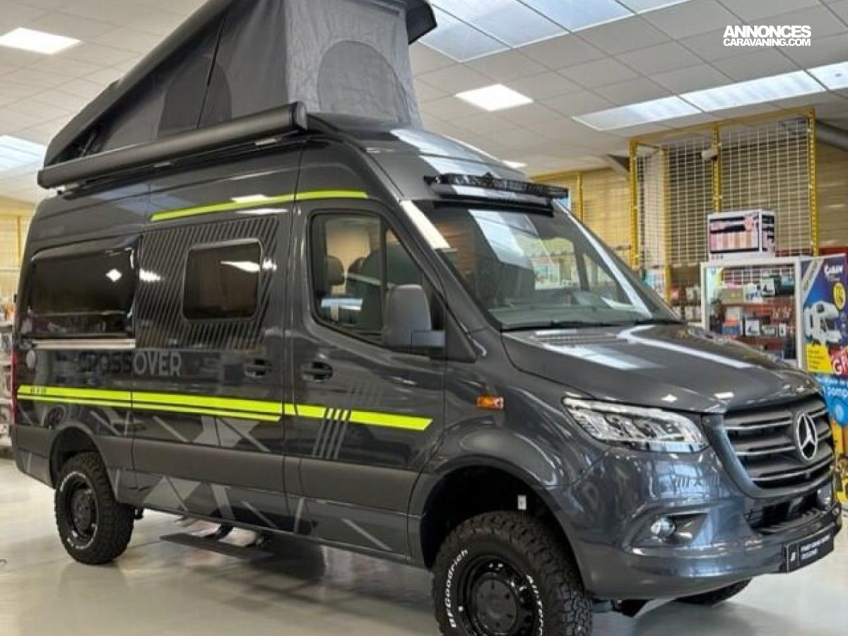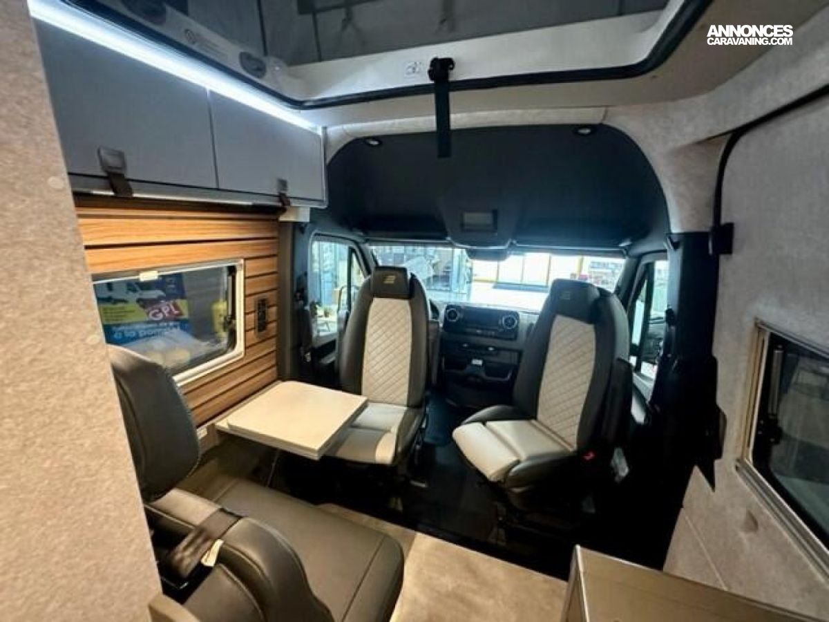 PACK CROSSOVER Mercedes-Benz Sprinter 3,88 t - 419 CDI - 141 KW/190 ch - Euro VI-E Gris Ténorite métallisé Transmission intégrale 4x4 permanente, feux arrière à technologie LED Boîte de vitesses automatique 9G-TRONIC + fonction Hold Bandes décoratives chromées sur la calandre Feux LED haute performance Protection sous moteur Feux antibrouillard avec feux de virage Spoiler et calandre couleur carrosserie Jantes acier 16" avec pneus All-Terrain Assistance électrique à la fermeture de la porte coulissante Rangement pour smartphones avec fonction de recharge sans fil et indicateur de charge Pack chargement pour le tableau de bord avec 2 x prises USB-C 5 V / 1 x prise 12 V Climatisation automatique THERMOTRONIC Volant cuir Module PSM Mercedes-Benz programmable Pare-brise chauffant Système multimédia MBUX 10,25" avec caméra de recul, commande vocale et écran tactile, y compris navigation & intégration pour smartphone Pack Stationnement avec caméra 360° Régulateur de vitesse actif DISTRONIC PLUS avec commandes au volant Détecteur de franchissement de ligne Système de gestion automatique des phares Avertisseur d’angle mort Assistant reconnaissance des panneaux de signalisation Marchepied électrique tout-terrain (escamotable) pour une meilleure garde au sol Barre LED 44" au-dessus de la cabine Sérigraphie CrossOver Chauffage à air pulsé au diesel 6 kW avec chauffe-eau 10 l, kit altitude et résistance électrique 1800 W HYMER Smart Battery System 2.0 (4x80 Ah LFP) avec chargeur supplémentaire Filtre pour le circuit d'eau propre Système d'éclairage d'ambiance : système d'éclairage à plusieurs niveaux avec commande dynamique et individuelle (y compris l'intensité de la lumière) ainsi qu'un balisage au sol Draps-housses sur mesure pour lits arrière adaptés aux contours du matelas Ambiance style "HOME" (2 coussins houssés + pochette de rangement en tissu) Caillebotis de douche avec surface en liège Deuxième cassette de toilettes avec support Chaises pliantes (2 pièces) + table Set d’outils dans le compartiment de rangement arrière + Châssis 4100kg (260€) / Wet Wiper system (100€) / Isofix (260€) / sièges chauffants (750€) : 1370 €