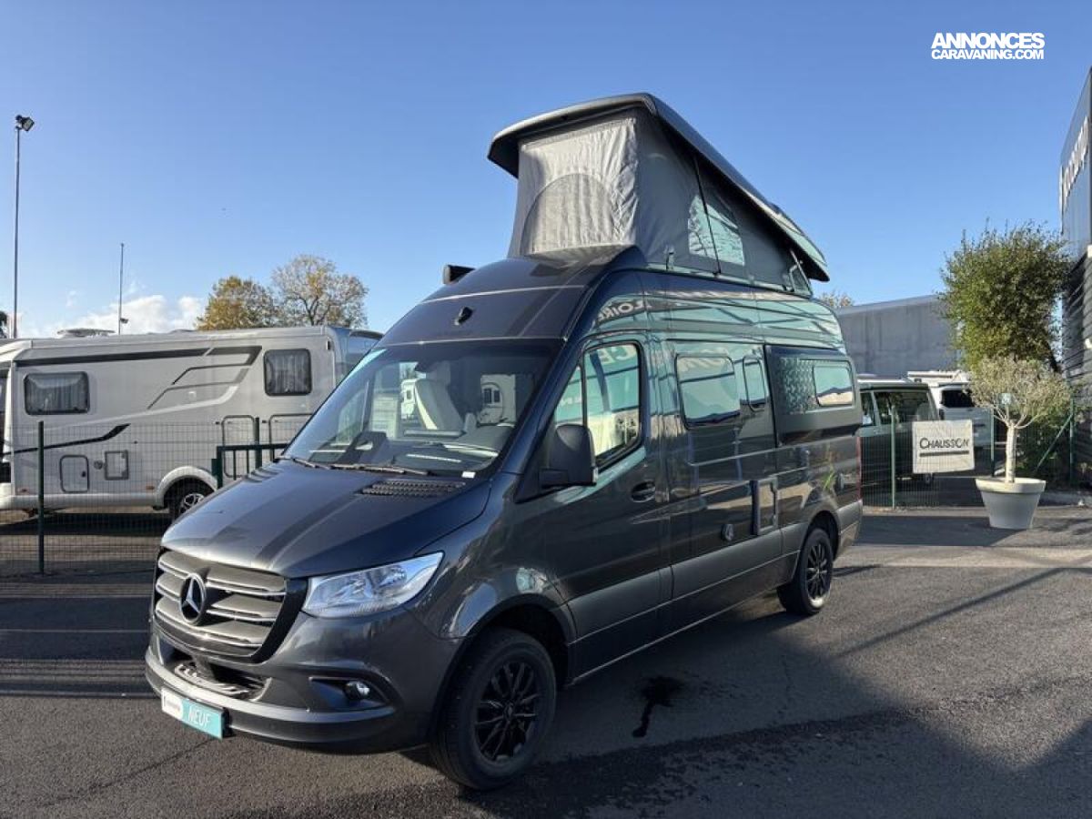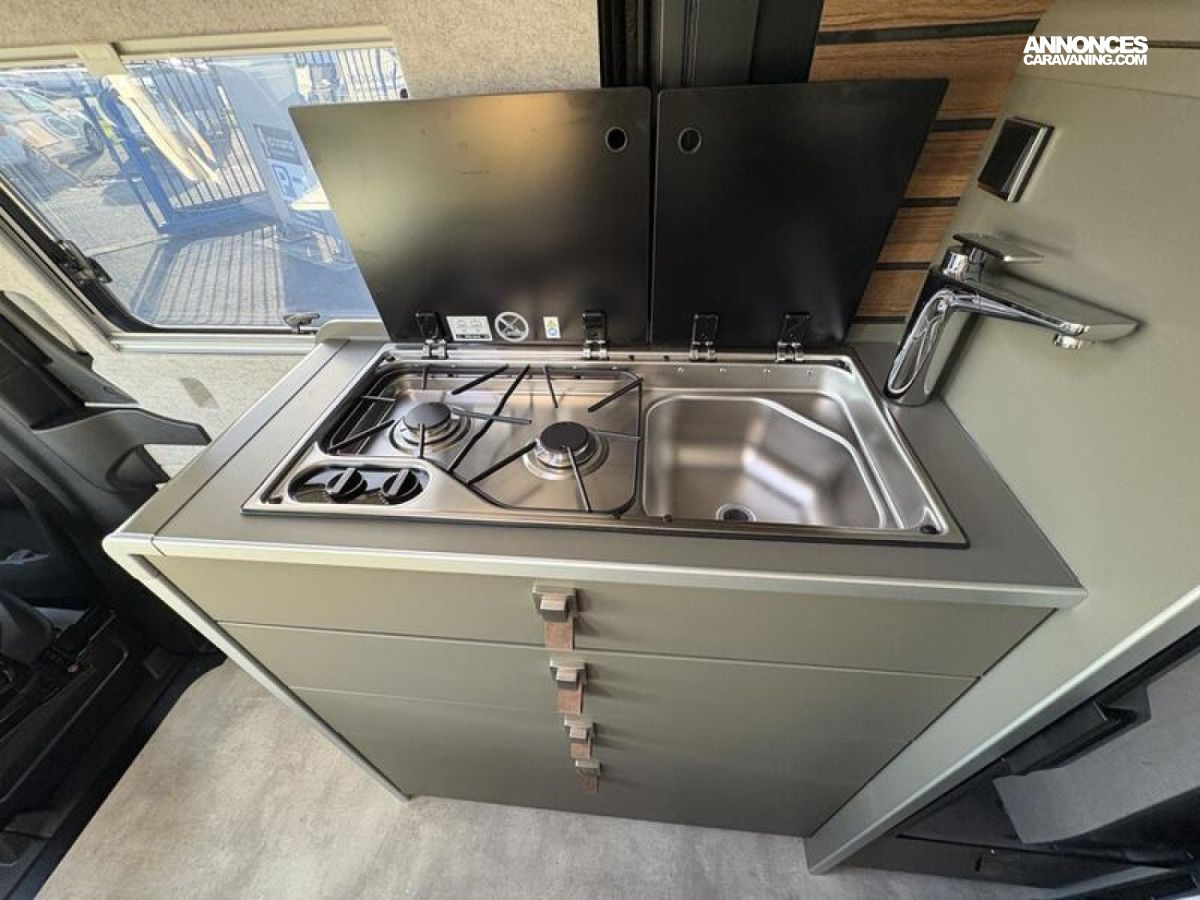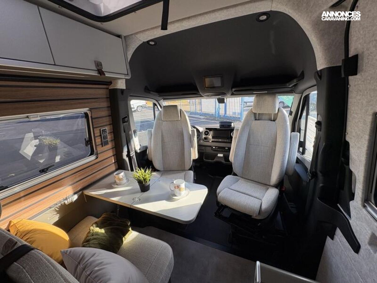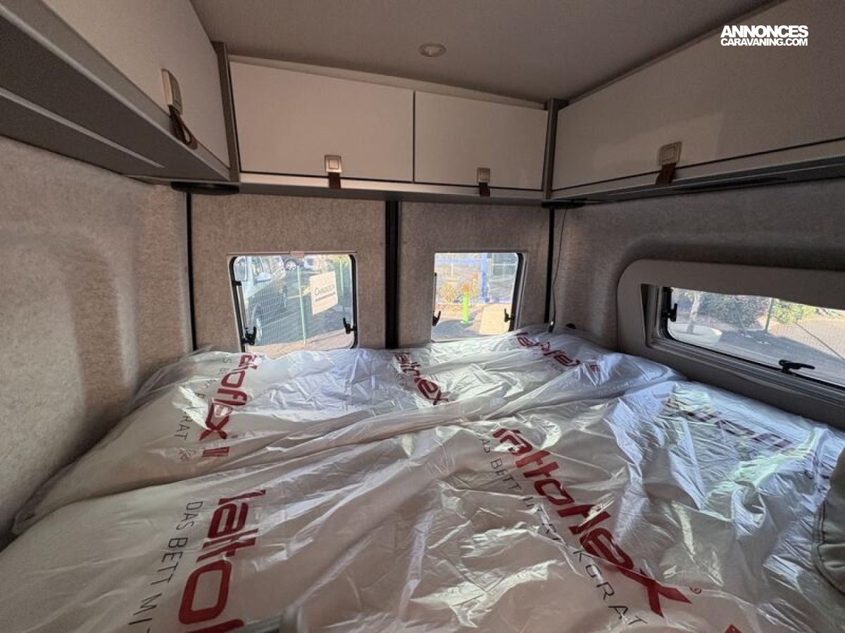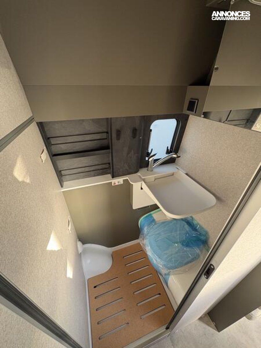 Fenêtre arrière côté gauche + Filtre pour le circuit d'eau propre + Assistance électrique à la fermeture de la porte cellule + Toit relevable + 2 Chaises pliantes et table + Combi 6 DE : 7030 €