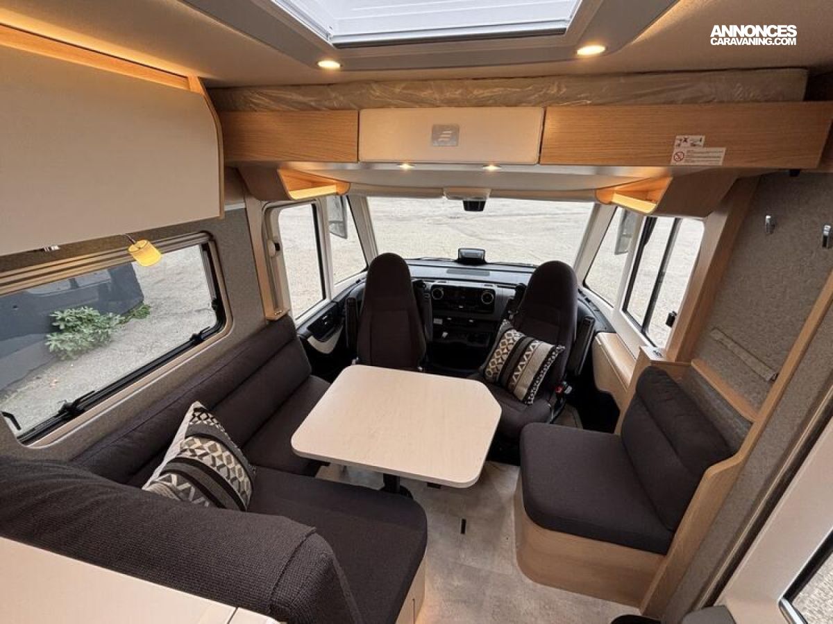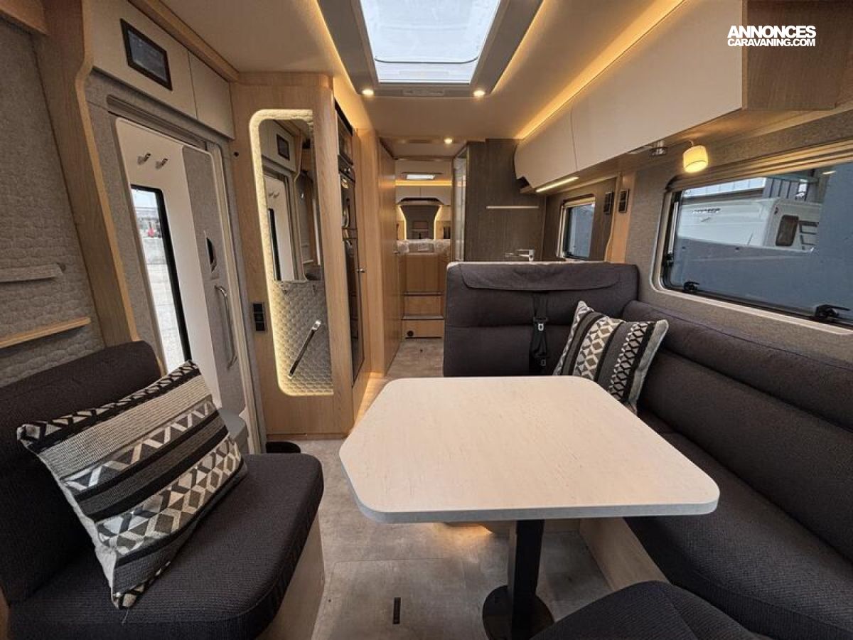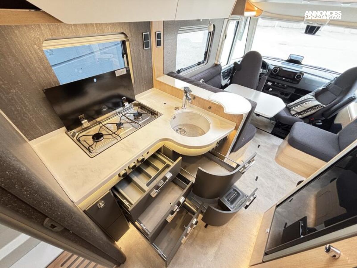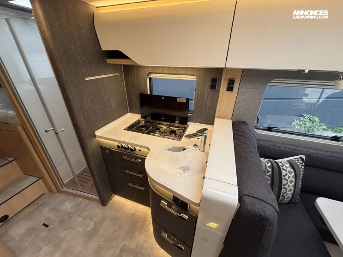 Pack BlackLine Mercedes-Benz Sprinter 4,43 t - 417 CDI - 125 KW/170 ch - Euro VI-E Couleur extérieure : argent Crystal métallisé Feux full LED HYMER Premium Rétroviseurs extérieurs suspendus coloris noir, chauffants et réglables électriquement, y compris rétroviseurs grand angle Jantes alliage 16" (coloris noir) avec pneus quatre saisons Rangement pour smartphones avec fonction de recharge sans fil et indicateur du niveau de charge Pack chargement pour le tableau de bord avec 2 x prises USB-C 5 V / 1 x prise 12 V Volant cuir (uniquement avec la boîte de vitesses automatique) Climatisation automatique THERMOTRONIC Régulateur de vitesse actif DISTRONIC PLUS avec commandes au volant Assistant reconnaissance des panneaux de signalisation Système multimédia MBUX avec navigation, intégration pour smartphone, commande vocale et caméra de recul Sérigraphie BlackLine Store extérieur électrique (boîtier coloris anthracite) avec éclairage LED dimmable, 550 x 300 cm Volet roulant électrique à l'avant incluant volet de protection pour l'intimité pour pare-brise (volet de bas en haut) et fonction pare-soleil Tiroir et bac comme espaces de rangement dans la dînette Caillebotis de douche avec surface en bois Prises supplémentaires : 4 x 230 V / 1 x 12 V / 1 x double-USB ainsi que les lampes Pack capteurs HYMER Connect comprenant 1x capteur de niveau de gaz, 1x capteur de température et 2x capteurs de contact Panneaux solaires 3 x 95 W avec régulateur MPPT et écran d'affichage Draps-housses sur mesure pour lits arrière adaptés aux contours du matelas Plancher aspect béton Coussins avec housses (4 pièces) Inverseur automatique des bouteilles de gaz avec capteur de chocs et résistance antigivre du détendeur Filtre à gaz pour inverseur automatique des bouteilles Filtre pour le circuit d'eau propre Indicateur de niveau d'eau Smart Connect (par incréments de 1 %) Smart TV LED 32" avec haut-parleurs intégrés, télécommande, HYMER Smart Multimedia System avec Bluetooth (DVB-T/C, DVB-S2) et support électrique, incluant un récepteur Routeur Wi-Fi 5G avec antenne extérieure et emplacement double SIM (carte SIM non incluse) + Feux antibrouillard LED y compris feux de virage statiques : 795 €
