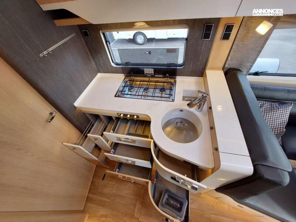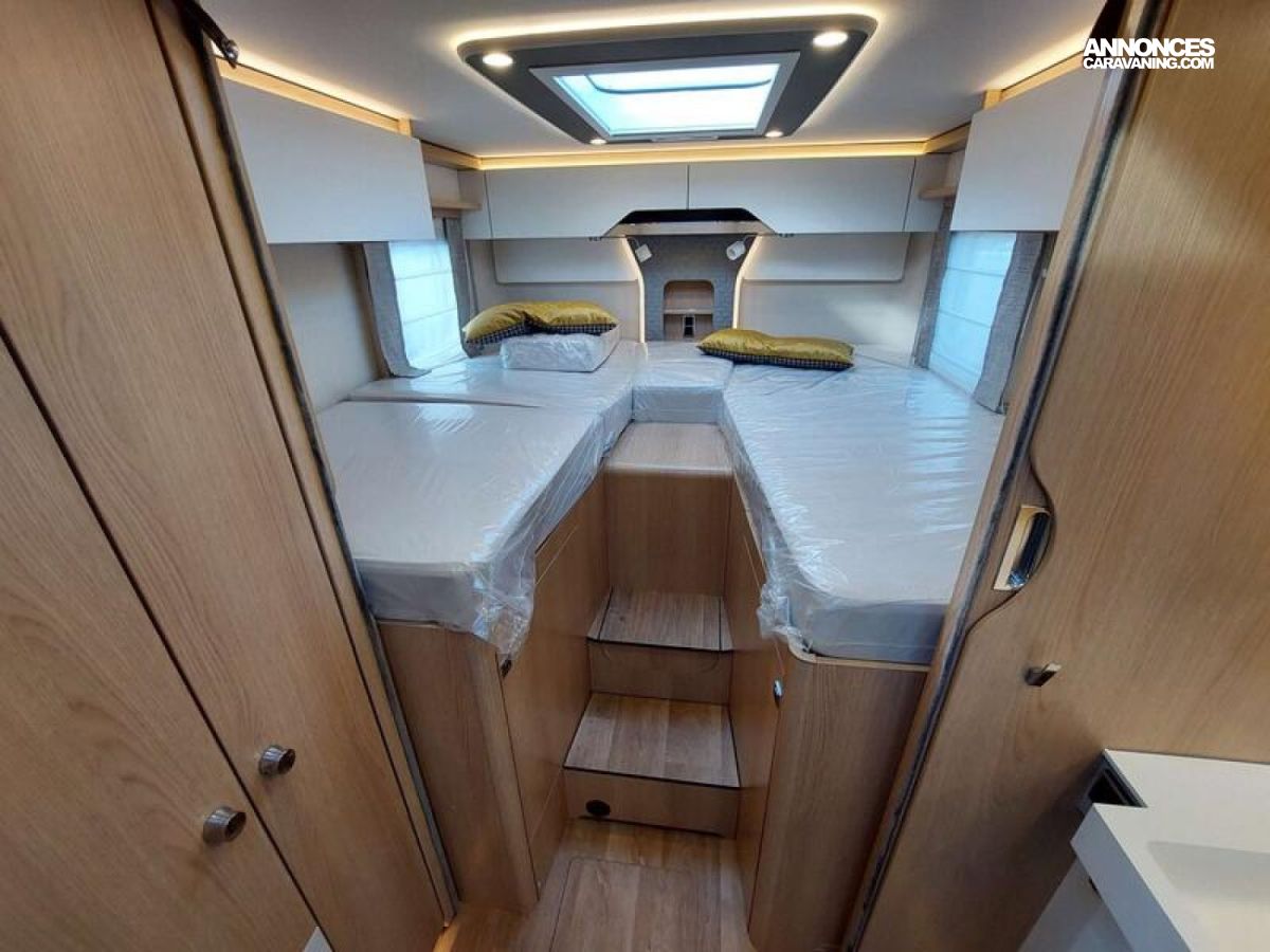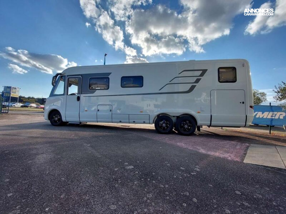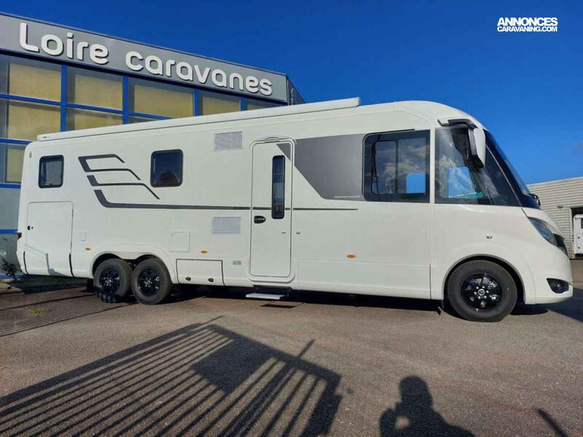 PACK CONFORT CELLULE : Caillebotis de douche en bois, Prises supplémentaires : 4 x 230 V / 1 x 12 V / 1 x double-USB ainsi que les lampes, Draps-housses sur mesure pour lits arrière adaptés aux contours du matelas, Coussins avec housses (4 pièces) + PACK AUTARCIE LFP XL : HYMER Smart Battery System 2.0 : deuxième batterie cellule 80 Ah LFP avec chargeur supplémentaire HYMER Smart Battery System 2.0 : troisième batterie cellule 160 Ah LFP avec chargeur supplémentaire Convertisseur 12 V à 230 V, 1800 W avec priorité réseau + PACK ARKTIS SMART : Échangeur de chaleur pour chauffage à eau chaude Pré-équipement pour échangeur thermique Mercedes-Benz Plancher chauffant à eau chaude au gaz pour garage Isolation extérieure pour pare-brise Isolation basse de cabine Chauffage additionnel (aide au préchauffage du véhicule) Fond du plancher en tôle, moquette et 2 rails d'arrimage supplémentaires dans le garage arrière + Coussin supplémentaire pour lits jumeaux avec accès confort + Marchepied électrique pour porte conducteur (déployé automatiquement lors de l'ouverture de la porte) + Porte cellule Confort Plus avec aide à la fermeture, accès RFID (sans clé) et verrouillage centralisé + TEC-Tower (combiné réfrigérateur / freezer 153 l + four) + TV écran plat LED 32" avec haut-parleurs intégrés, télécommande, lecteur DVD, "Smart-Multimedia-System" HYMER avec Bluetooth (DVB-T / C, DVB-S2) et support électrique, récepteur inclus + Table ronde de haute qualité, extensible avec un cadre en bois véritable + Volet roulant électrique à l'avant incluant volet de protection pour l'intimité pour pare-brise (volet de bas en haut) et fonction pare-soleil + Cuir Grigio + Feux antibrouillard LED y compris feux de virage statiques + Store extérieur électrique avec éclairage LED dimmable, boîtier coloris blanc, 600 x 300 cm + Pare-brise dégivrant électriquement + Vérins stabilisateurs hydrauliques (AV + AR) avec fonction de mise à niveau automatique + Serrure de sécurité pour porte conducteur et porte cellule + Sièges chauffants et support lombaires pour sièges Pilot + Douche extérieure dans le garage : 33905 €