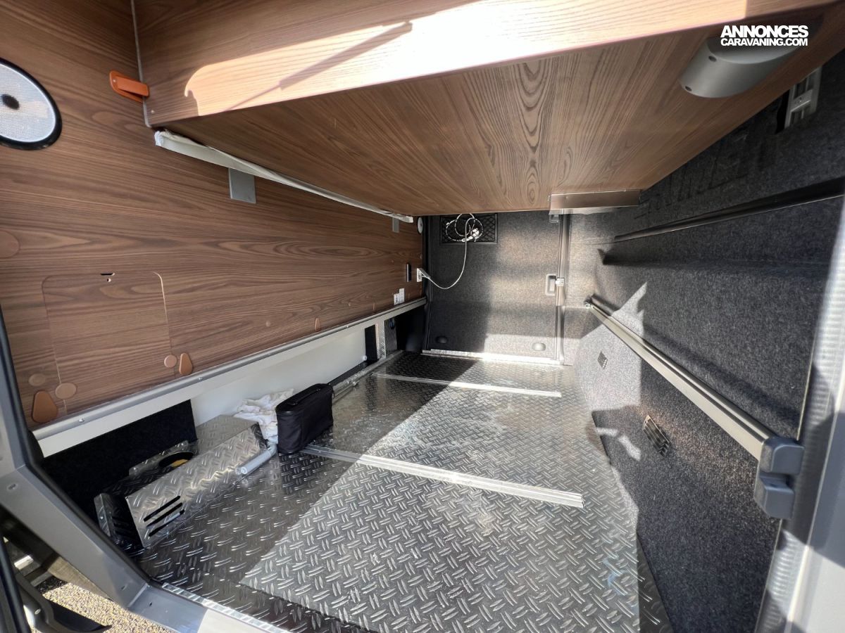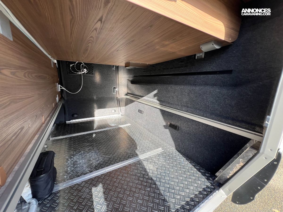 Fond du plancher en tôle, moquette et 2 rails d'arrimage supplémentaires dans le garage arrière