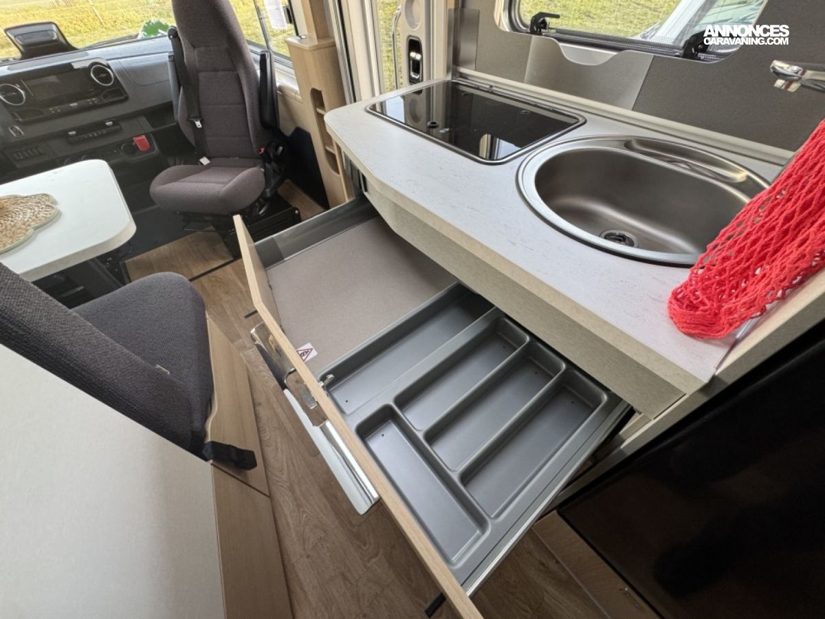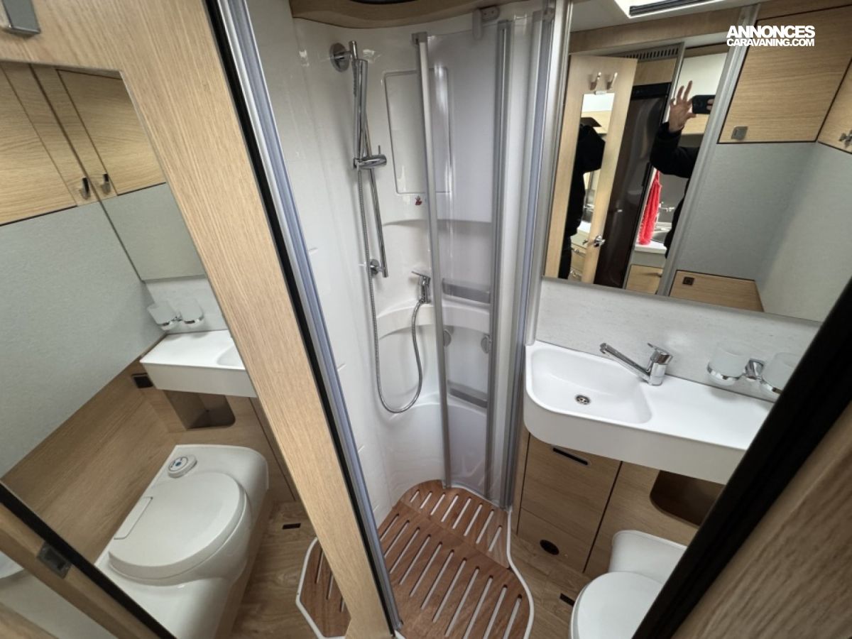PACK CONFORT CELLULE : Caillebotis de douche avec surface en boisDraps-housses sur mesure pour lits arrière adaptés aux contours du matelasCoussins avec housses (4 pièces)Système Ambient Light : système d éclairage à plusieurs niveaux avec commande dynamique et individuelle (y compris l intensité de la lumière) ainsi qu un balisage au solPrises supplémentaires : 4 x 230 V (2 x garage ; 1 x dînette ; 1 x lit) / 1 x 12 V / 1 x double USB (y compris crédence cuisine)