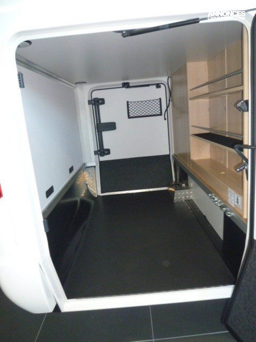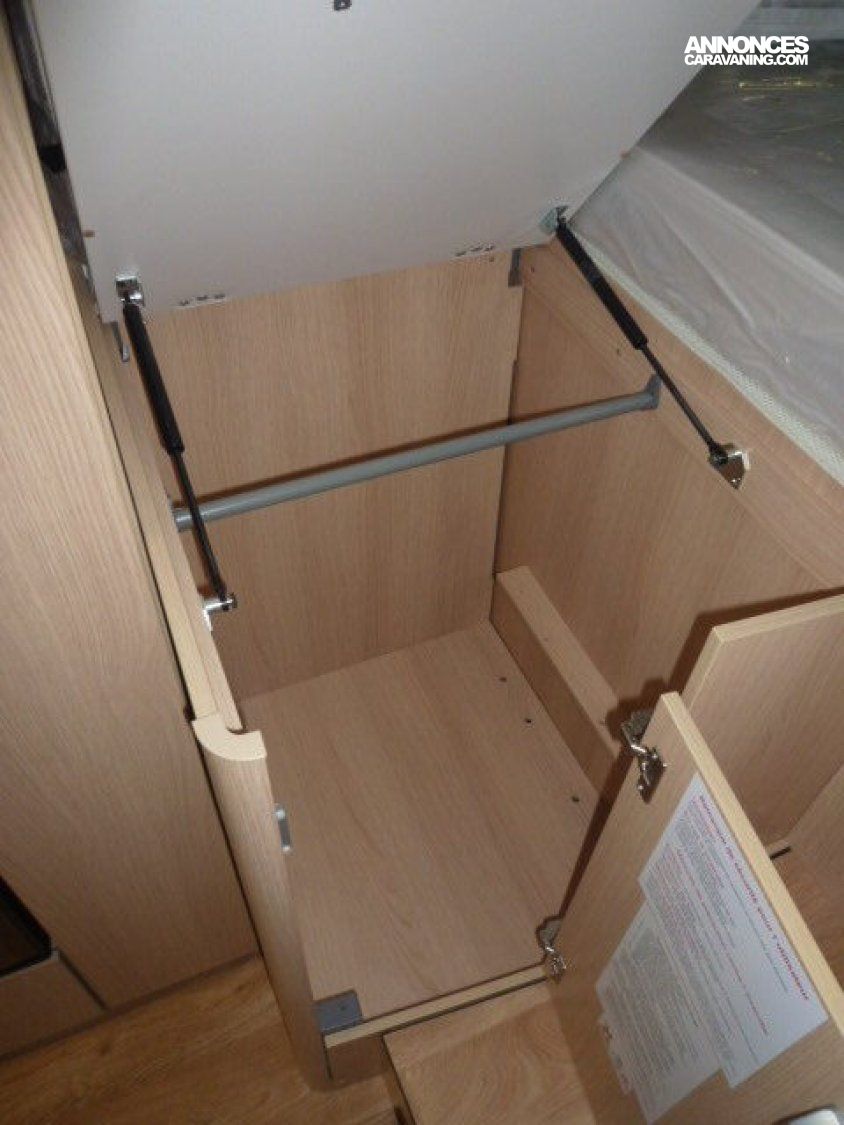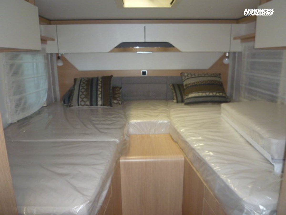 Cuisine en long, Douche à vario, Grande soute, lit jumeaux, lit pavillon, Salon avant sièges pivotants, Salon en L, WC Cassette.