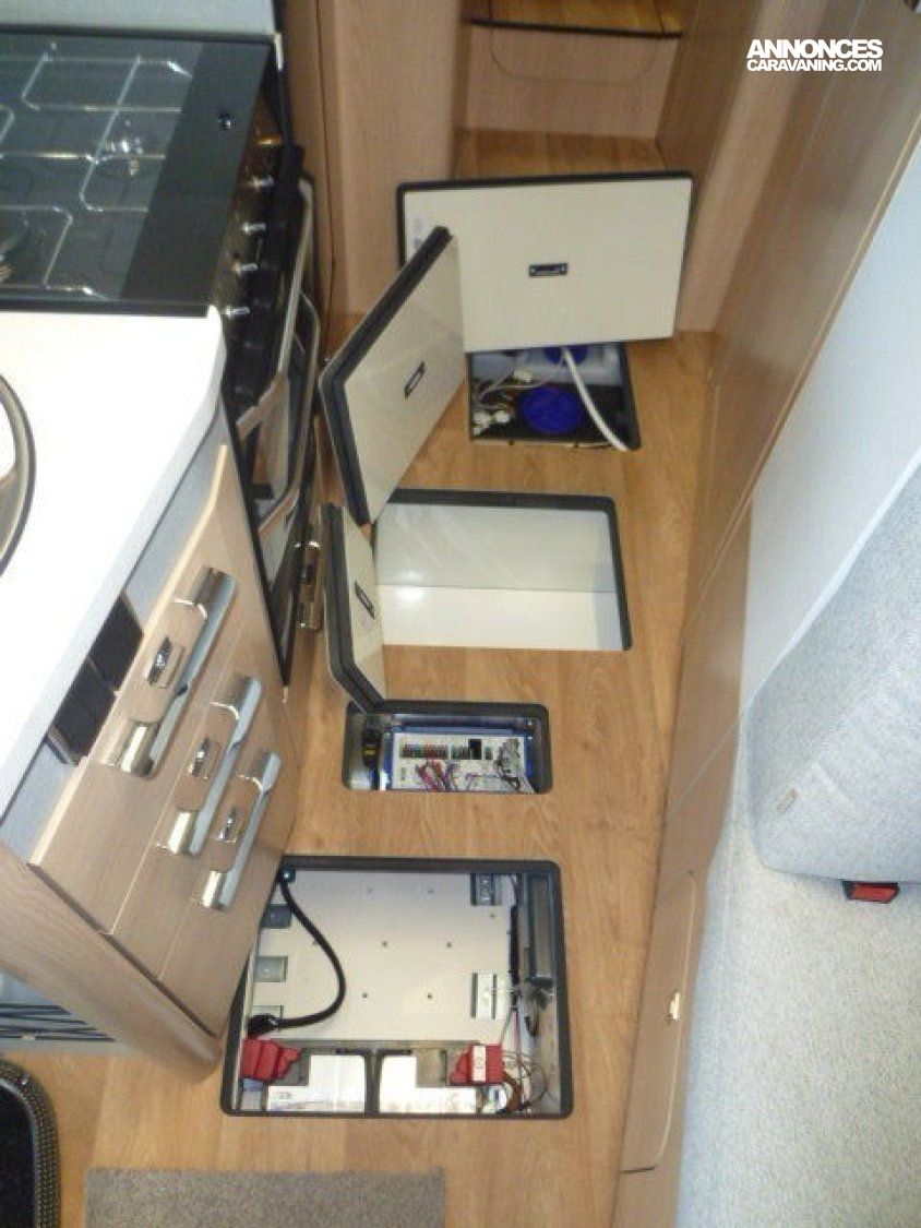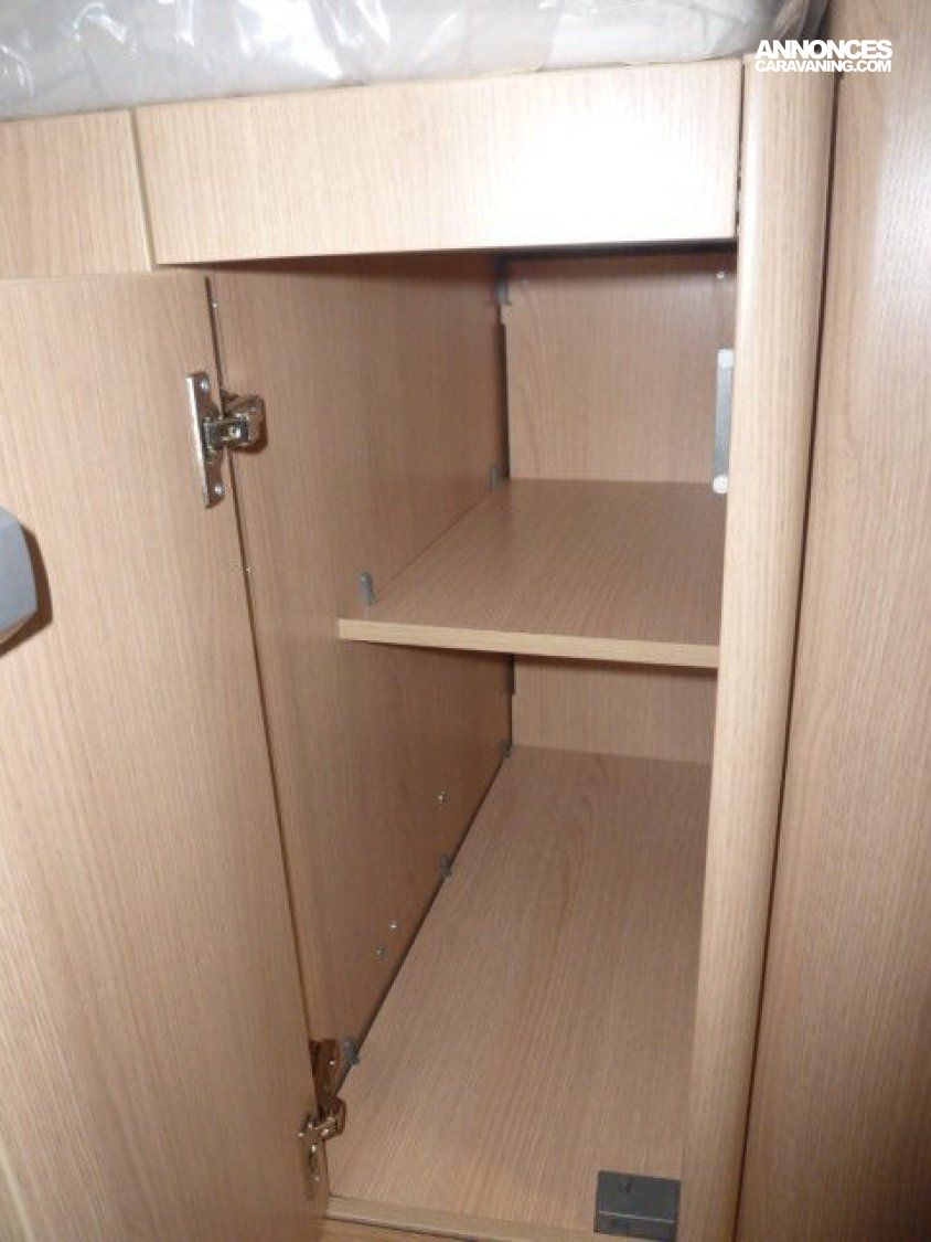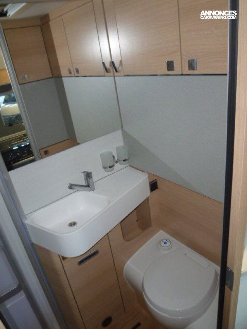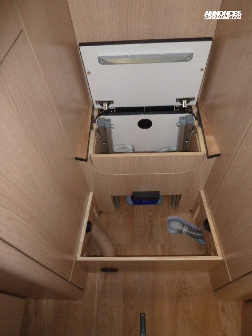 Cuisine en long, Douche à vario, Grande soute, lit jumeaux, lit pavillon, Salon avant sièges pivotants, Salon en L, WC Cassette.