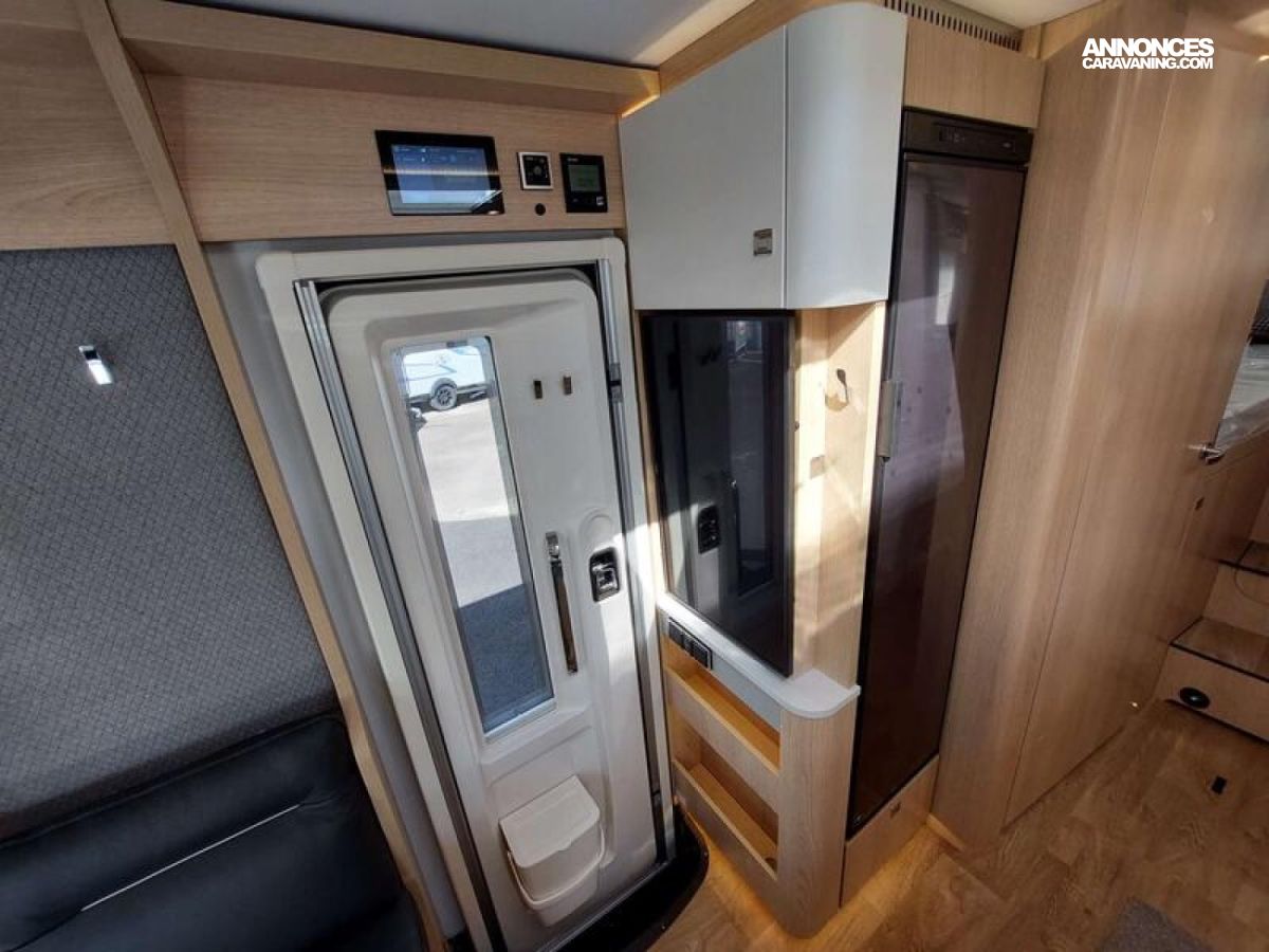 Réservoir à carburant 92 l + FINITION PLUS Climatisation semi-automatique TEMPMATIC Régulateur de vitesse avec commandes au volant Volant multifonction Frein de stationnement électrique Essieu avant renforcé Radio DAB Boîte de vitesses automatique 9G-TRONIC incluant la fonction Hold Système multimédia Mercedes-Benz MBUX 10,25" avec navigation, volant multifonction, DAB+, écran tactile et caméra de recul Volant cuir (uniquement avec la boîte de vitesses automatique) Régulateur de vitesse actif DISTRONIC PLUS avec commandes au volant Instrumentation combinée avec écran Pixel-Matrix Mercedes-Benz Pack Acoustique Mercedes-Benz + PACK CONFORT CELLULE 4 Caillebotis de douche avec surface en bois Draps-housses sur mesure pour lits arrière adaptés aux contours du matelas Coussins avec housses (4 pièces) Système Ambient Light : système d'éclairage à plusieurs niveaux avec commande dynamique et individuelle (y compris l'intensité de la lumière) ainsi qu'un balisage au sol Prises supplémentaires : 4 x 230 V (2 x garage ; 1 x dînette ; 1 x lit) / 1 x 12 V / 1 x double USB (y compris crédence cuisine) + PACK AUTARCIE XL HYMER Smart Battery System (150 Ah LFP) avec chargeur supplémentaire 3ème batterie cellule (95 Ah AGM) Convertisseur 12 V à 230 V, 1800 W avec priorité réseau + Cuir Grigio + Porte cellule Confort fermeture 2 points avec baie, store occultant et poubelle intégrés + Marchepied électrique pour porte conducteur (déployé automatiquement lors de l'ouverture de la porte) + Fermeture centralisée pour portes conducteur, cellule et garage + Douche extérieure dans le garage + Chauffage à air pulsé au gaz 6 kW avec chauffe-eau 10 l et résistance électrique 1800 W + TV écran plat LED 32" avec haut-parleurs intégrés, télécommande, lecteur DVD, HYMER Smart Multimedia System avec Bluetooth (DVB-T / C, DVB-S2) et récepteur + Support écran plat 22" ou 32" + Coussin supplémentaire pour lits jumeaux avec accès confort + Feux antibrouillard halogènes + Transformation dînette en L en couchage avec table au pied télescopique + Système de couchage avec sommier à assiettes (lit(s) arrière) + Store extérieur 500 x 250 cm avec adaptateur, boîtier blanc + Compartiment de rangement sous le plancher avec tiroir côté passager : 25425 €
