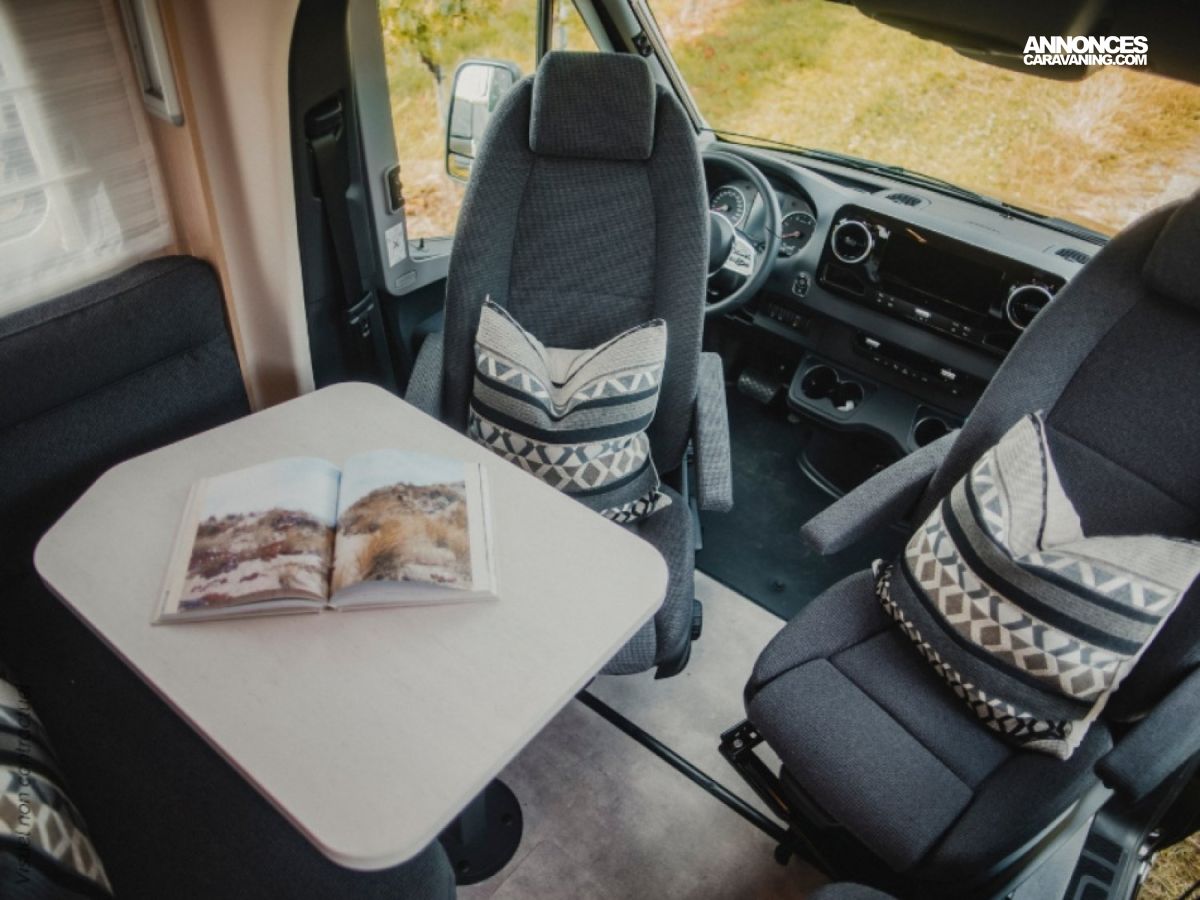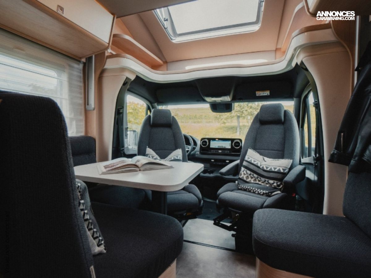 PACK BLACK LINE : STORE EXTERIEUR 400 X 250 CM REGULATEUR DE VITESSE ACTIF DISTRONIC PLUS AVEC COMMANDES AU VOLANT DÎNETTE EN L CONFORT AVEC COUSSINS LOUNGE, TABLE COULISSANTE LONGITUDINALEMENT /TRANSVERSALEMENT ET 2 CEINTURES 3 POINTS INTEGREES TRANSFORMATION DÎNETTE EN L EN COUCHAGE AVEC TABLE AU PIED TELESCOPIQUE CAILLEBOTIS DE DOUCHE JANTES ALLIAGE 16 BORBET COLORIS NOIR ET PNEUS 4 SAISONS SYSTEME MULTIMEDIA MBUX AVEC CAMERA DE RECUL SMART TV LED