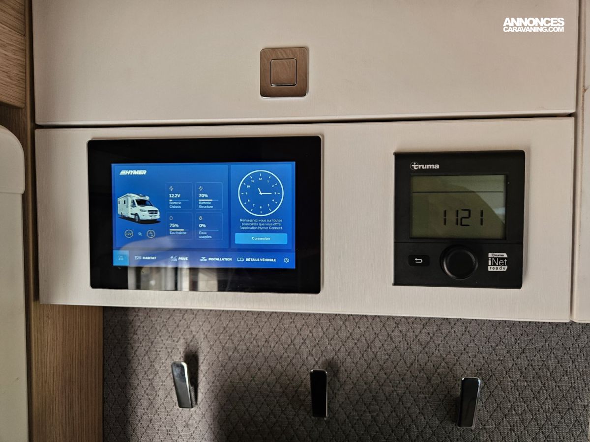 L'hymer connect permet avec votre smartphone de programmer votre scénario pour profiter d'une température agréable , d'une douche chaude et d'une ambiance lumineuse relaxante avant votre arrivées.