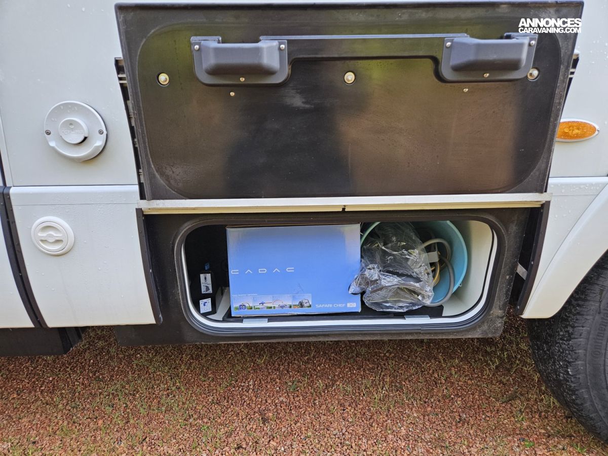 CHAUFFAGE COMBI HYBRIDE, INET BOX, REFRIGERATEUR/CONGELATEUR, STORE EXTERIEUR 4M, EAUX USEES ELECTRIQUE, PRISE GAZ EXTERIEURE, GAZINIERE 3 FEUX, TIROIRS FERMETURE RALENTIE, PORTE SEPARATRICE, SELLERIE CUIR, CUISINE EN L, DINETTE EN L, DOUCHETTE DANS SOUTE, DOUCHE ET WC SEPARES, ECLAIRAGE LED, EXTRACTEUR D'AIR, MOQUETTE CABINE, MOUSTIQUAIRE DE PORTE CELLULE, REFRIGERATEUR 150L, REFRIGERATEUR TRI MIX, RESERVOIRS D EAUX ISOLES ET CHAUFFES, STORES PLISSES DE CABINE, SIEGE AGUTI, LANTERNEAU PANORAMIQUE, SUN ROOF OUVRANT, CLIMATISATION CELLULE REVERSIBLE