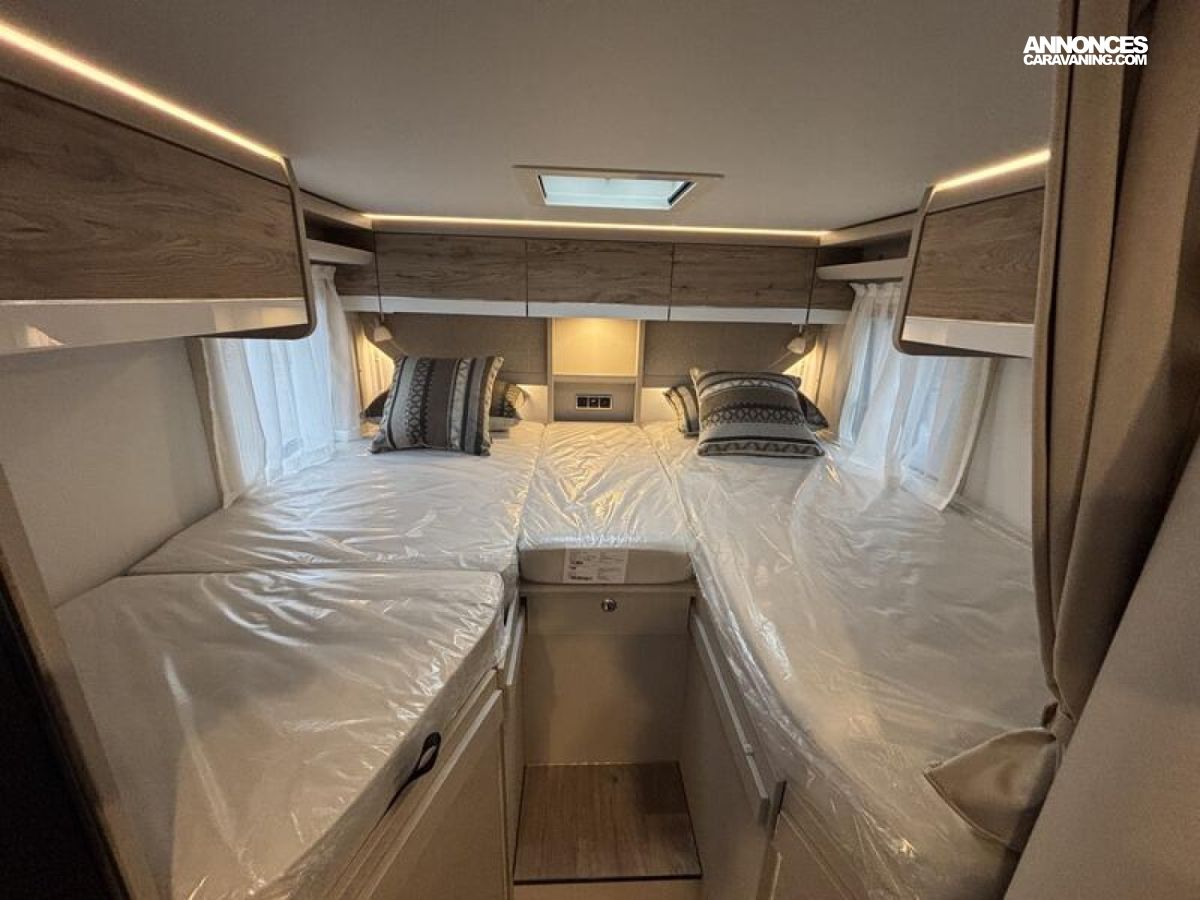 PACK CONFORT CELLULE Éclairage d'ambiance Draps-housses sur mesure pour lits arrière adaptés aux contours du matelas Coussins avec housses (4 pièces) Caillebotis de douche avec surface en bois Prises supplémentaires : 5 x 230 V / 3 x 12 V / 2 x double-USB (y compris crédence cuisine) : 1340 €