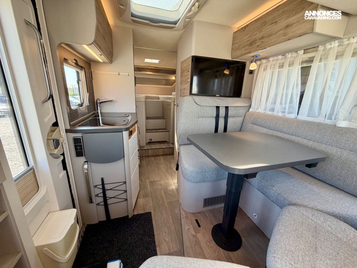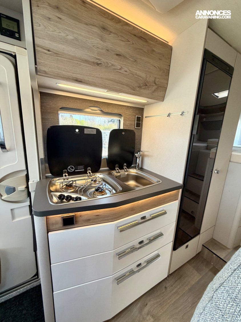 Nous avons là un intégral avec une motorisation robuste de 165cv, 4 vraies places carte grise et couchages, une très grande soute et un équipement extrêmement complet. La qualité de fabrication Hymer fait le reste, le véhicule est sublime et jouit d’une garantie légale de conformité de 12 mois et jusqu’à 180 mois avec financement.