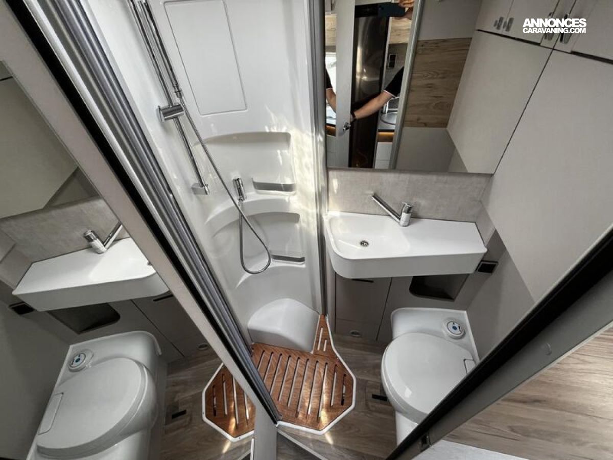 Boite de vitesse automatique 8 rapports + Frein de parking électrique + Porte cellule confort + Douche extérieure dans le garage + Chauffage à air pulsé au gaz 6 kW avec chauffe-eau 10 l et résistance électrique 1.800 W + Système multimédia avec écran tactile de 9", y compris logiciel pour camping-car, DAB+, Apple Car Play, Google Android Auto, caméra de recul et de service, fonction rétroviseur, "Smart Control" HYMER : 8325 €