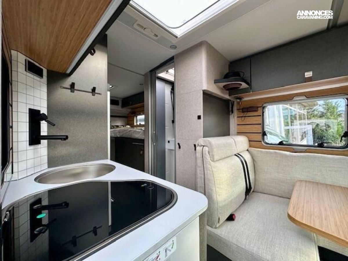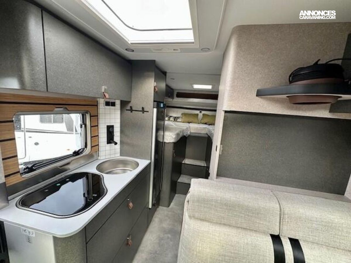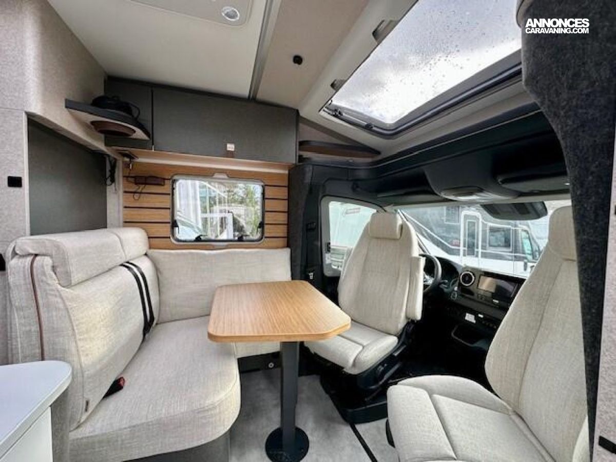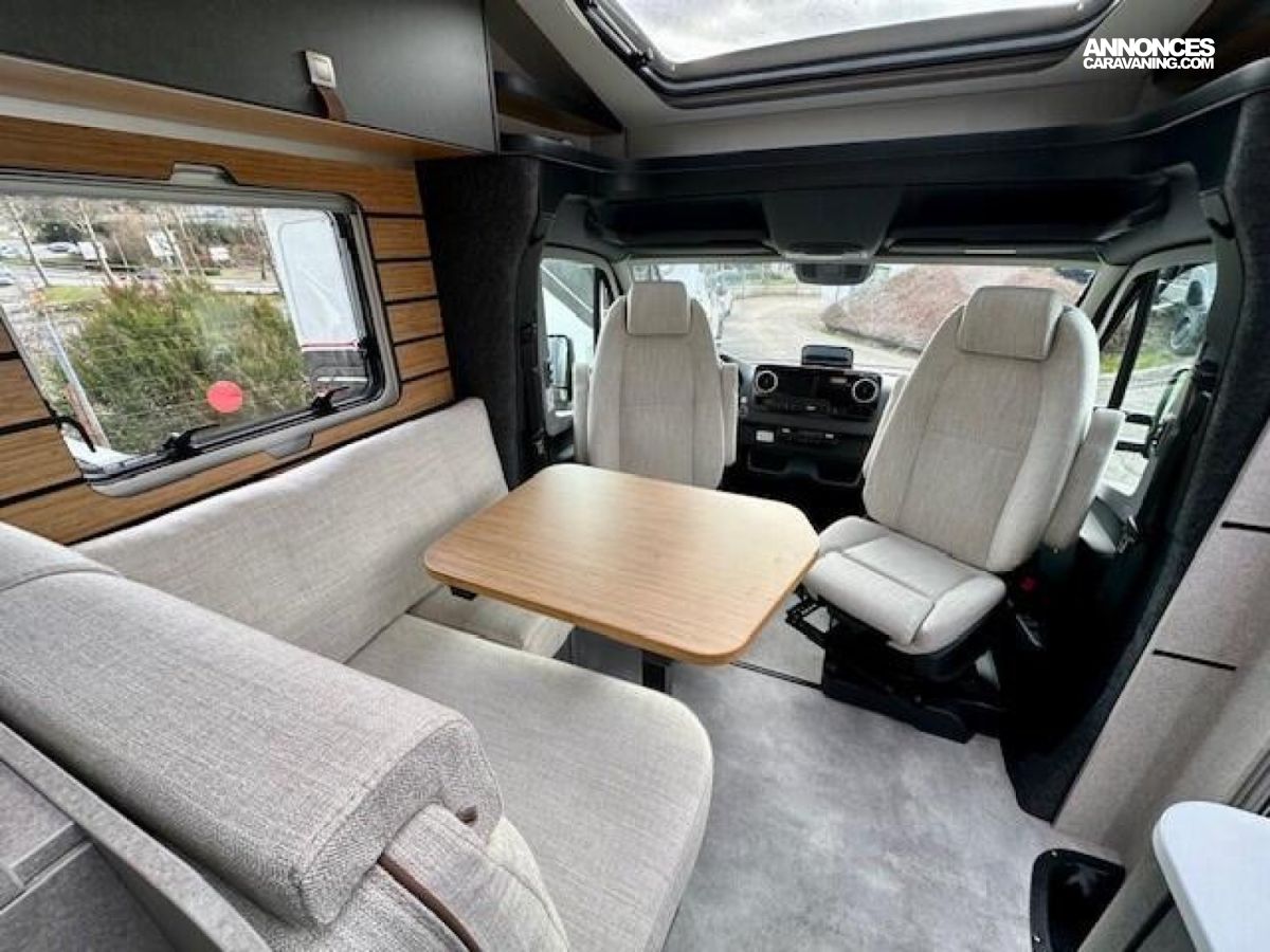 CROSSOVER Mercedes-Benz Sprinter 4,1 t - 419 CDI - 190 ch - Euro VI-E Couleur extérieure cabine : gris Ténorite (métallisé) Couleur extérieure cellule : argent Crystal métallisé Transmission intégrale 4x4 permanente avec Torque-on-Demand Boîte de vitesses automatique 9G-TRONIC incluant la fonction Hold Bandes décoratives chromées sur la calandre Feux LED haute performance Feux antibrouillard avec feux de virage Spoiler, éléments face avant et cadre de la calandre peints couleur carrosserie Pare-brise chauffant Rangement pour smartphones avec fonction de recharge sans fil et indicateur du niveau de charge Pack chargement pour le tableau de bord avec 2 x prises USB-C 5 V / 1 x prise 12 V Volant cuir Système multimédia MBUX 10,25" avec caméra de recul, commande vocale et écran tactile, y compris navigation & intégration pour smartphone Climatisation automatique THERMOTRONIC Régulateur de vitesse actif DISTRONIC PLUS avec commandes au volant Détecteur de franchissement de ligne Système de gestion automatique des phares Assistant reconnaissance des panneaux de signalisation Galerie de toit avec échelle arrière sans plateforme en aluminium Barre LED 44" au-dessus de la cabine Store extérieur avec éclairage LED dimmable, 400 x 250 cm Protection sous moteur Sérigraphie CrossOver Porte cellule Confort fermeture 2 points avec baie, store occultant et poubelle intégrés Tôle et moquette dans le garage Élargisseur d'ailes avant Douche extérieure dans le garage Set d’outils Dînette en L confort avec coussins lounge, table coulissante et 2 ceintures 3 points intégrées Transformation dînette en L en couchage (table au pied télescopique + coussin supplémentaire + utilisation du siège conducteur) Système de couchage confort avec sommier à assiettes et matelas multizones pour lits arrière Draps-housses sur mesure pour lits arrière adaptés aux contours du matelas Coussin supplémentaire pour lits jumeaux avec accès confort Coussins avec housses (4 pièces) Éclairage d'ambiance Pack Éclairage (suspension multifonction et liseuse d'ambiance pour parois multifonctions) Deuxième cassette de toilettes Chauffage à air pulsé au diesel 6 kW avec chauffe-eau 10 l, kit altitude et résistance électrique 1800 W HYMER Smart Battery System 2.0 (4x80 Ah LFP) avec chargeur supplémentaire Panneaux solaires 2 x 95 W avec régulateur MPPT et écran d'affichage Convertisseur 12 V à 230 V, 1800 W avec priorité réseau Prises supplémentaires : 5 x 230 V / 2 x 12 V / 2 x USB Filtre pour le circuit d'eau propre : 0 €