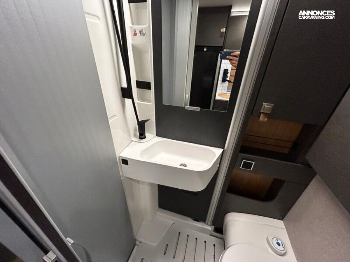 Pack Confort cellule Système de couchage avec sommier à assiettes (lit(s) arrière) Draps-housses sur mesure pour lits arrière adaptés aux contours du matelas Moquette dans le garage Revêtement supplémentaire pour mise à niveau du cabinet de toilette Coussins avec housses (4 pièces) Système Ambient Light : système d'éclairage à plusieurs niveaux avec commande dynamique et individuelle (y compris l'intensité de la lumière) ainsi qu'un balisage au sol Pack Éclairage (suspension multifonction et liseuse d'ambiance pour parois multifonctions) Prises supplémentaires : 3 x 230 V / 1 x 12 V : 2470 €