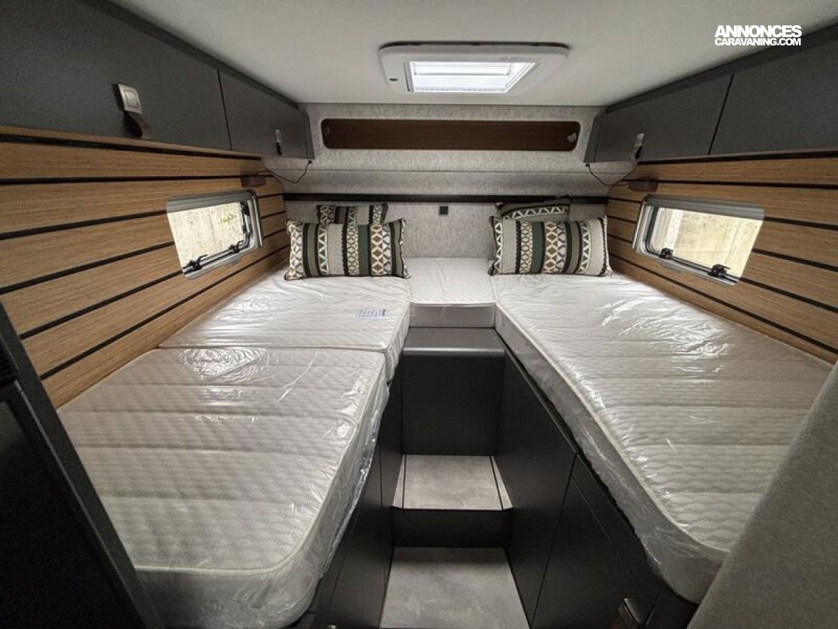 Pack complet ML-T Xperience Série spéciale Xperience : Mercedes-Benz Sprinter 3,5T - 417 CDI - 125KW/170CV - EURO VI-E Couleur extérieure cabine : gris Ténorite (métallisé) Sérigraphie Xperience Boîte de vitesses automatique 9G-TRONIC incluant la fonction Hold Feux antibrouillard avec feux de virage Jantes alliage 16'' Borbet coloris noir et pneus 4 saisons Volant cuir (uniquement avec la boîte de vitesses automatique) Régulateur de vitesse actif DISTRONIC PLUS avec commandes au volant Assistant reconnaissance des panneaux de signalisation Store extérieur 400 x 250 cm avec éclairage LED, boîtier noir Porte cellule Confort fermeture 2 points avec baie, store occultant et poubelle intégrés Transformation dînette en L en couchage (table au pied télescopique + coussin supplémentaire + utilisation du siège conducteur) Dînette en L confort avec coussins lounge, table coulissante longitudinalement / transversalement et 2 ceintures 3 points intégrées Système de couchage avec sommier à assiettes (lit(s) arrière) Coussin supplémentaire pour lits jumeaux avec accès confort Coussins avec housses (4 pièces) Radio DAB Support écran plat 32" Smart TV LED 32" avec haut-parleurs intégrés, télécommande, lecteur DVD, "Smart-Multimedia-System" HYMER (DVB-T / C, DVB-S2), récepteur inclus Système multimédia MBUX 10,25" avec caméra de recul, commande vocale et écran tactile, y compris navigation & intégration pour smartphone Pack capteurs HYMER Connect comprenant 1x capteur de niveau de gaz, 1x capteur de température et 2x capteurs de contact : 0 €