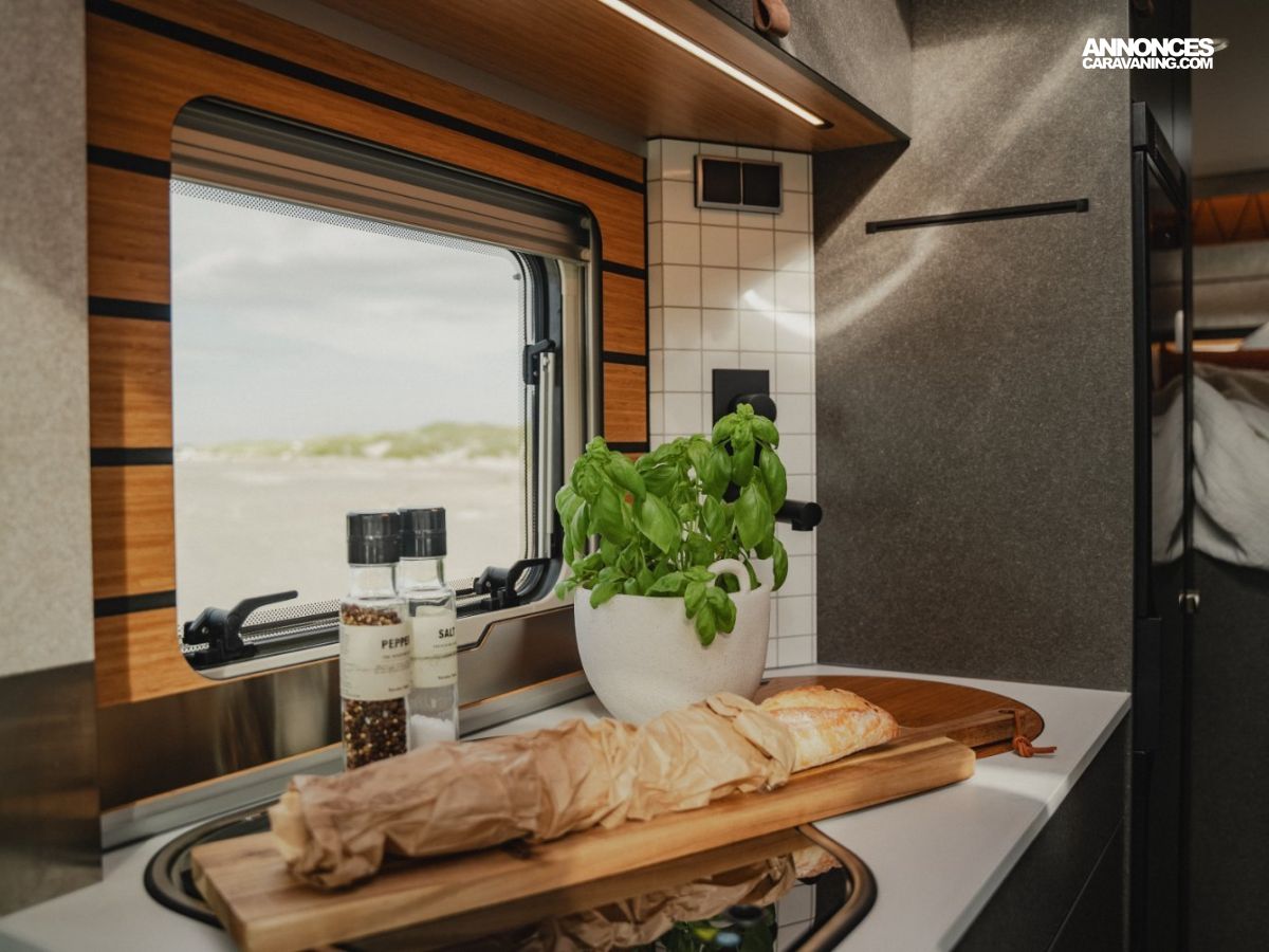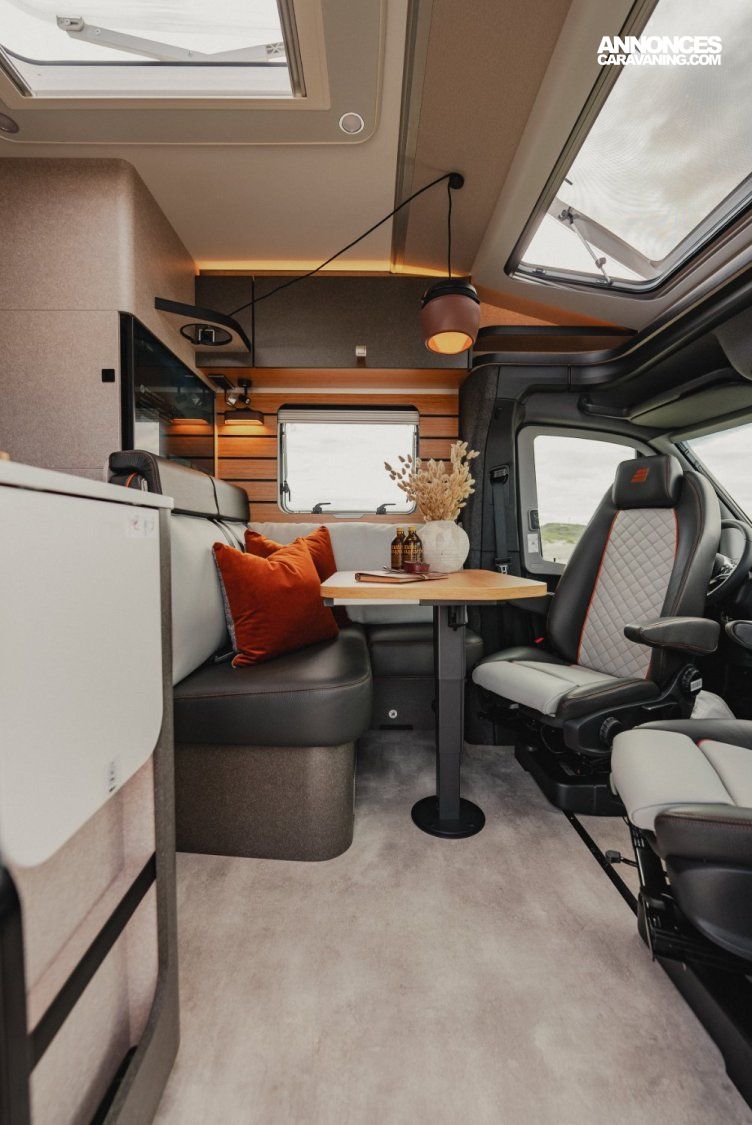 • Dînette en L confort avec coussins lounge, table coulissante longitudinalement / transversalement et 2 ceintures 3 points intégrées
