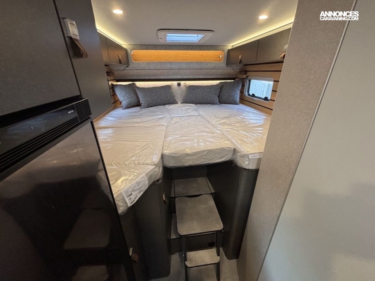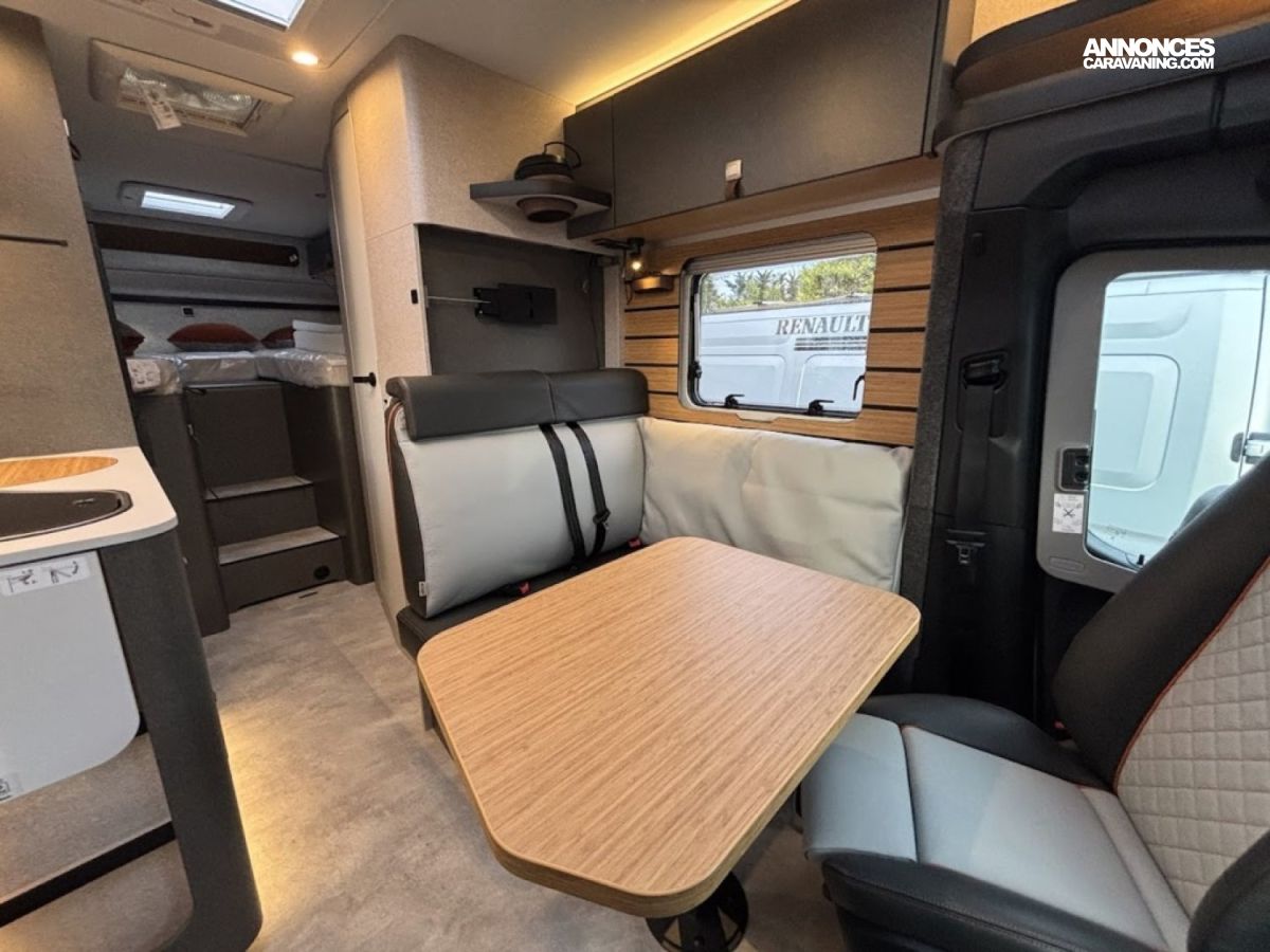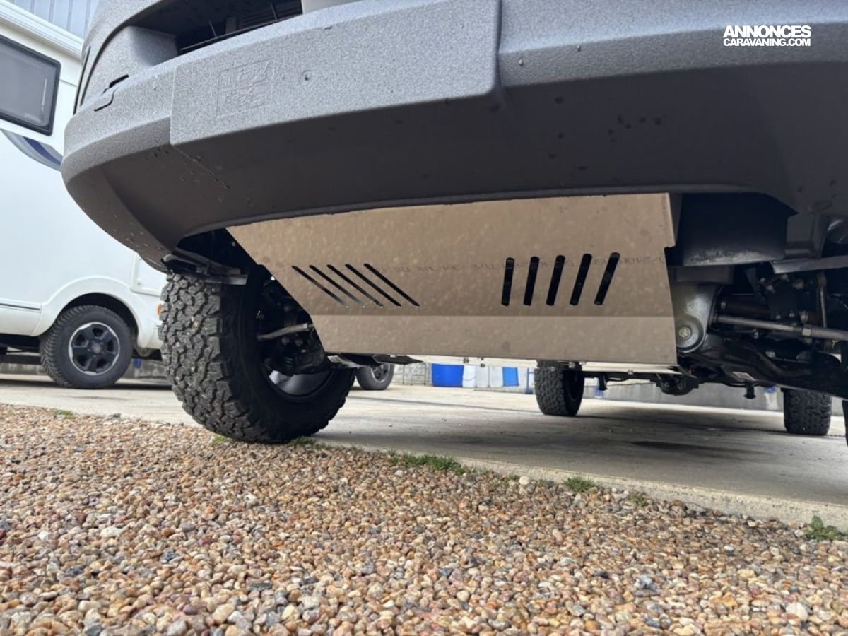 Transmission intégrale 4×4 permanente avec Torque-on-Demand,Couleur extérieure gris Pierre pastel Pare-chocs peinture Raptor, Essieu avant renforcé, Jantes Delta Hanma 18 pneus tout-terrain Pare-brise chauffant, Clim auto, Régulateur adaptatif, Store extérieur, Douche extérieure, M-BUX Set d’outils (bêche pliante, hache, etc.),Alternateur renforcé, réservoir eaux isolé chauffé 120 L, Panneaux solaires 2 x 95 W, Convertisseur 1800 W, 4 modules batterie 80 Ah LFP (totale 320 Ah) Routeur Wi-Fi 5G , Barre LED 44″, Downhill Speed Regulation (mode Offroad) , BVA 9G-TRONIC : Inclus
