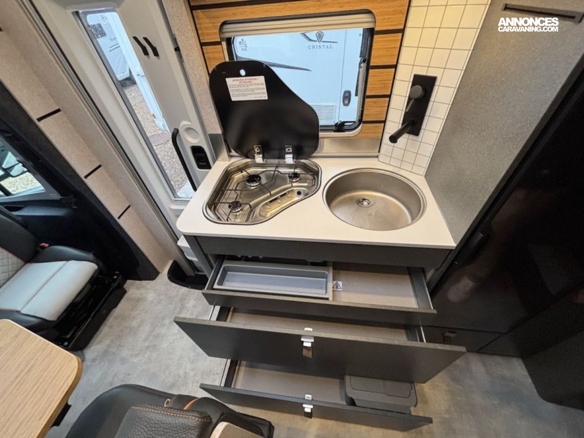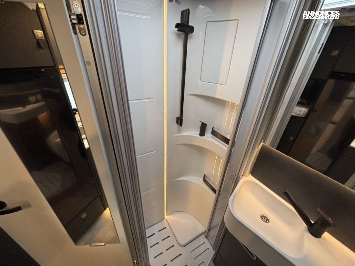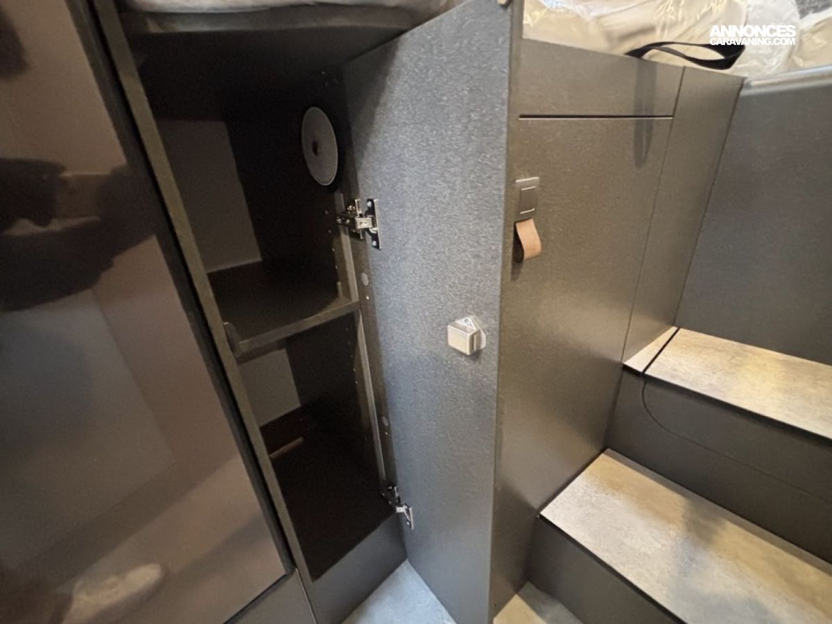 Transmission intégrale 4×4 permanente avec Torque-on-Demand,Couleur extérieure gris Pierre pastel Pare-chocs peinture Raptor, Essieu avant renforcé, Jantes Delta Hanma 18 pneus tout-terrain Pare-brise chauffant, Clim auto, Régulateur adaptatif, Store extérieur, Douche extérieure, M-BUX Set d’outils (bêche pliante, hache, etc.),Alternateur renforcé, réservoir eaux isolé chauffé 120 L, Panneaux solaires 2 x 95 W, Convertisseur 1800 W, 4 modules batterie 80 Ah LFP (totale 320 Ah) Routeur Wi-Fi 5G , Barre LED 44″, Downhill Speed Regulation (mode Offroad) , BVA 9G-TRONIC : Inclus