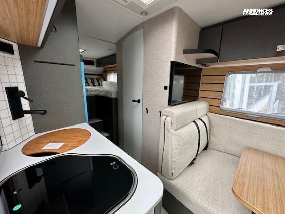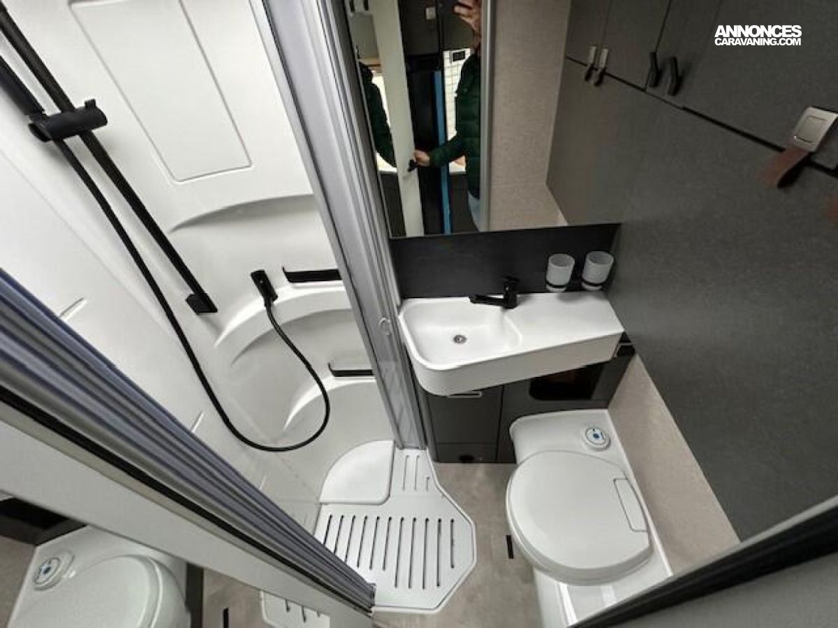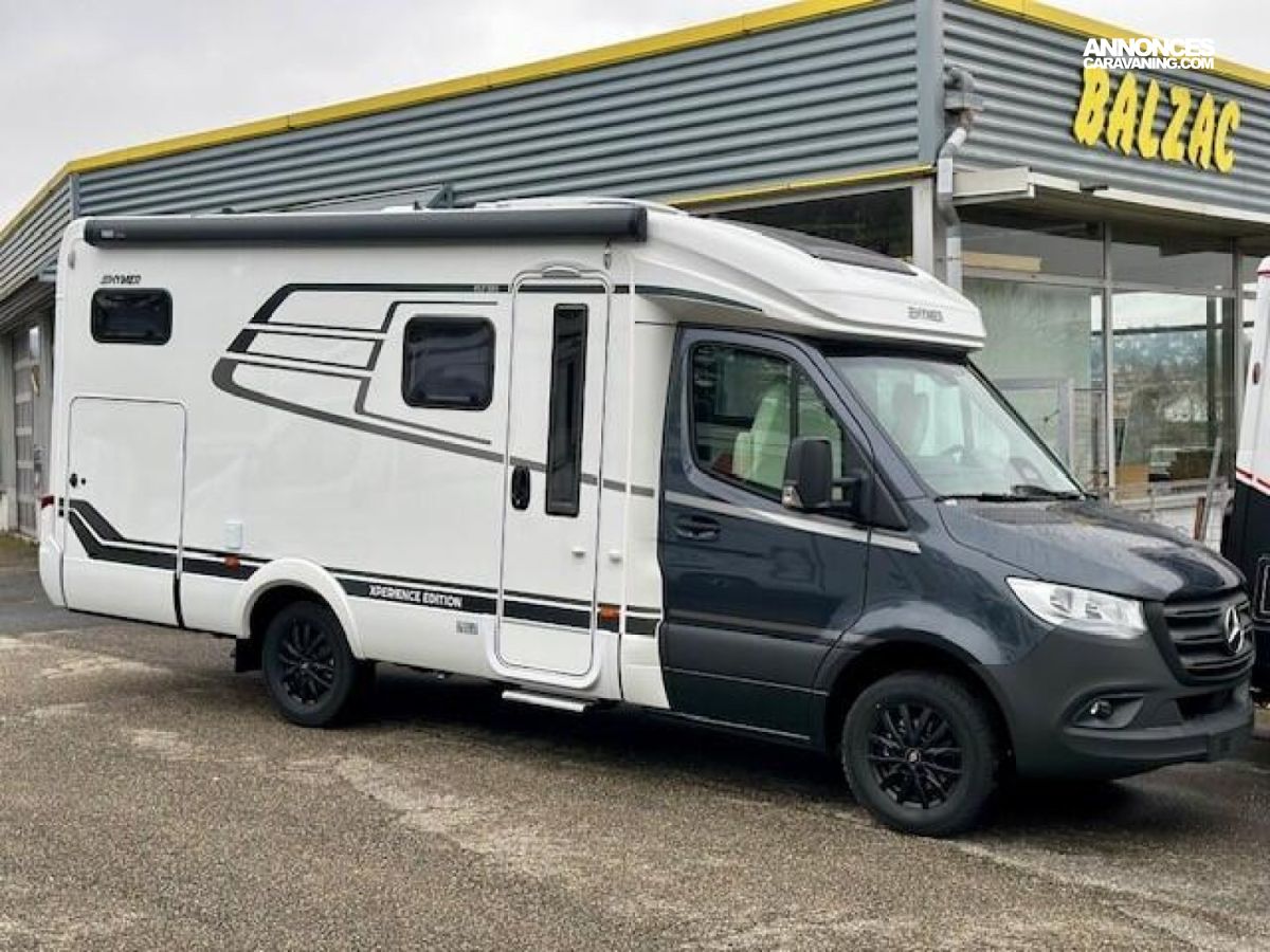 PACK XPERIENCE Mercedes-Benz Sprinter 3,5T - 417 CDI - 125KW/170CV - EURO VI-E Couleur extérieure cabine : gris Ténorite (métallisé) Sérigraphie Xperience Boîte de vitesses automatique 9G-TRONIC incluant la fonction Hold Feux antibrouillard avec feux de virage Jantes alliage 16'' Borbet coloris noir et pneus 4 saisons Volant cuir (uniquement avec la boîte de vitesses automatique) Régulateur de vitesse actif DISTRONIC PLUS avec commandes au volant Assistant reconnaissance des panneaux de signalisation Store extérieur 400 x 250 cm avec éclairage LED, boîtier noir Porte cellule Confort fermeture 2 points avec baie, store occultant et poubelle intégrés Dînette en L confort avec coussins lounge, table coulissante longitudinalement / transversalement et 2 ceintures 3 points intégrées Transformation dînette en L en couchage (table au pied télescopique + coussin supplémentaire + utilisation du siège conducteur) Système de couchage avec sommier à assiettes (lit(s) arrière) Coussin supplémentaire pour lits jumeaux avec accès confort Coussins avec housses (4 pièces) Radio DAB Support écran plat 32" Smart TV LED 32" avec haut-parleurs intégrés, télécommande, lecteur DVD, "Smart-Multimedia-System" HYMER (DVB-T / C, DVB-S2), récepteur inclus Système multimédia MBUX 10,25" avec caméra de recul, commande vocale et écran tactile, y compris navigation & intégration pour smartphone Pack capteurs HYMER Connect comprenant 1x capteur de niveau de gaz, 1x capteur de température et 2x capteurs de contact : 0 €
