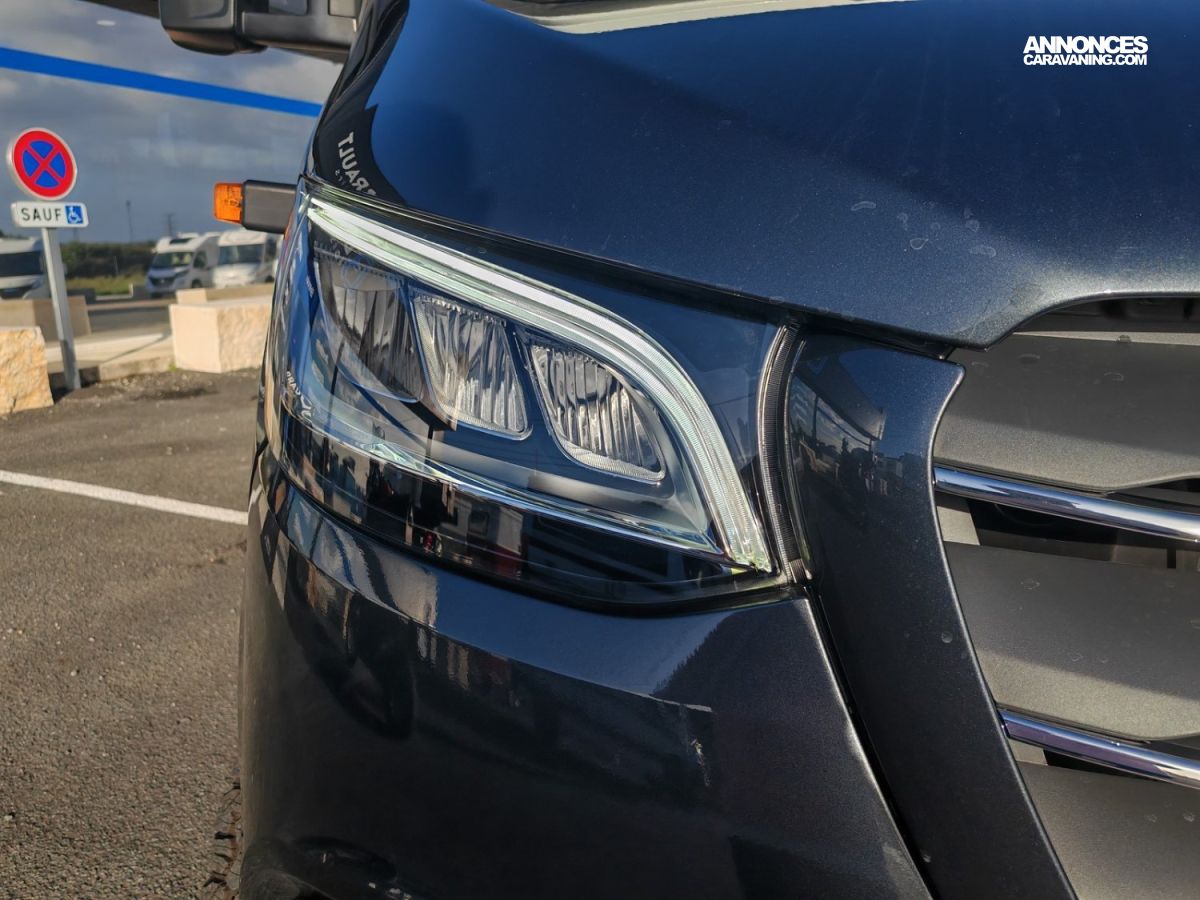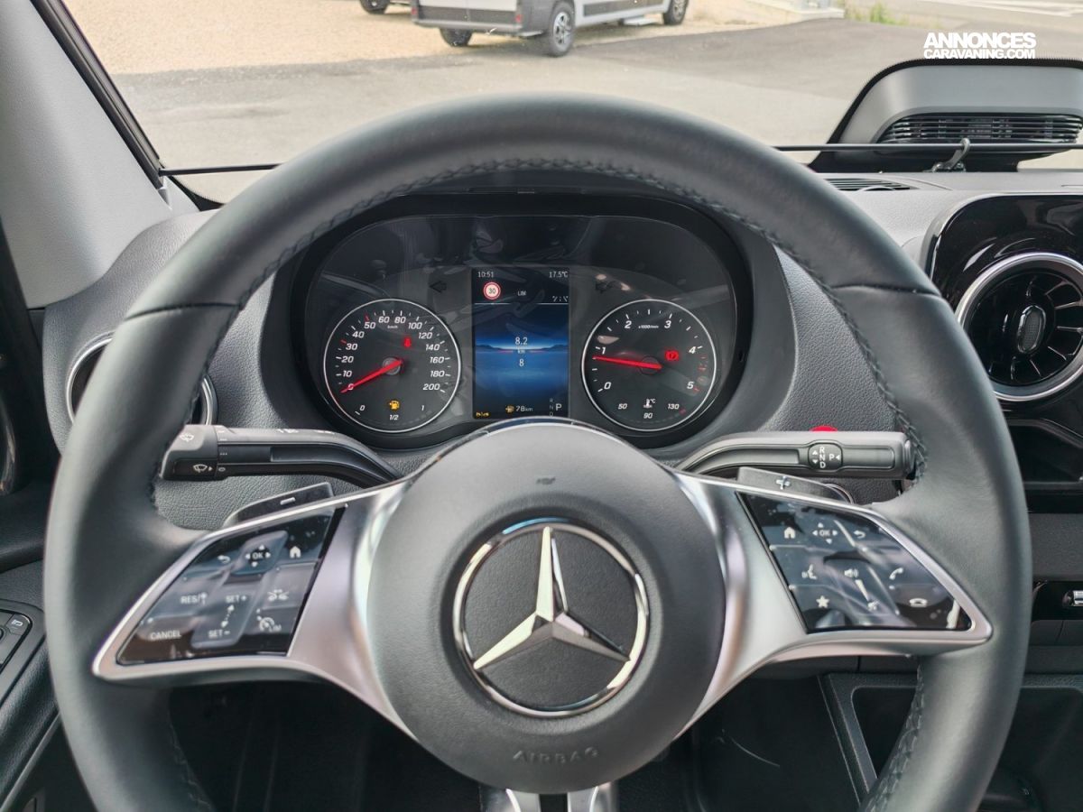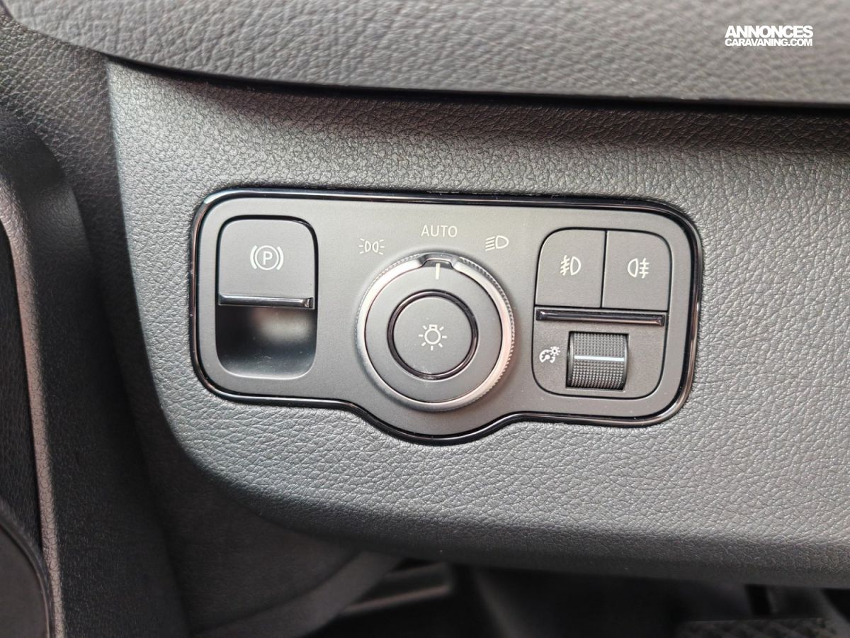- Pack "Finition Premium" (Régulateur de vitesse actif Distronic Plus, boîte de vitesse automatique 9G-Tronic, système multimédia MBUX à écran tactile 10.25" avec caméra de recul et navigation, pack acoustique Mercedes, instrumentation avec écran "Pixel-Matrix" Mercedes, assistance de reconnaissance des panneaux de signalisation, volant cuir, climatisation automatique "Thermotronic", détecteur de pluie, frein de stationnement électrique, détecteur de franchissement de ligne, assistance de vigilance du conducteur, volant cuir multifonction, essieu avant renforcé, bande filtrante thermo-isolante sur le pare-brise, radio DAB, pack chargement pour le tableau de bord avec 2 prises USB-C et 1 prise 12V, feux LED haute performance, rangement pour smartphones avec fonction de recharge sans fil et indicateur de niveau de charge),