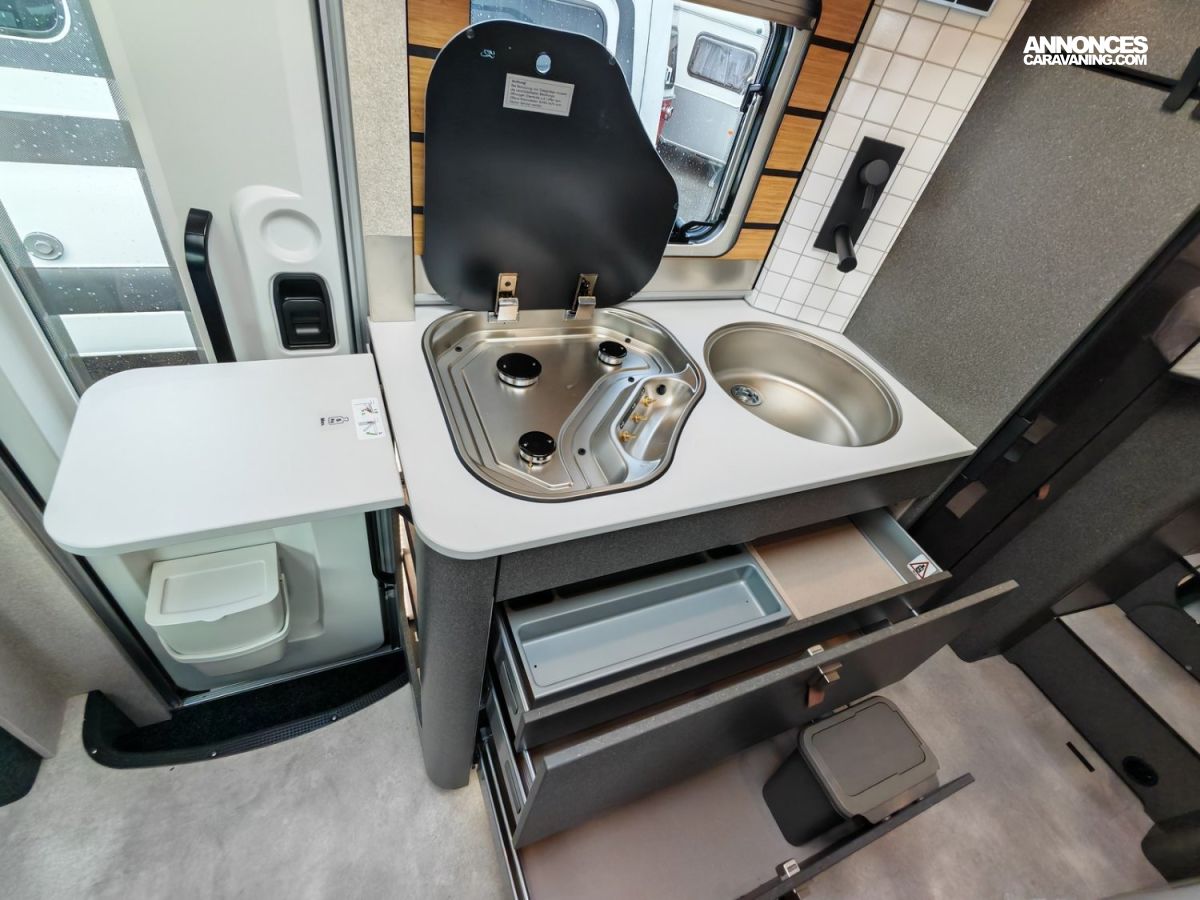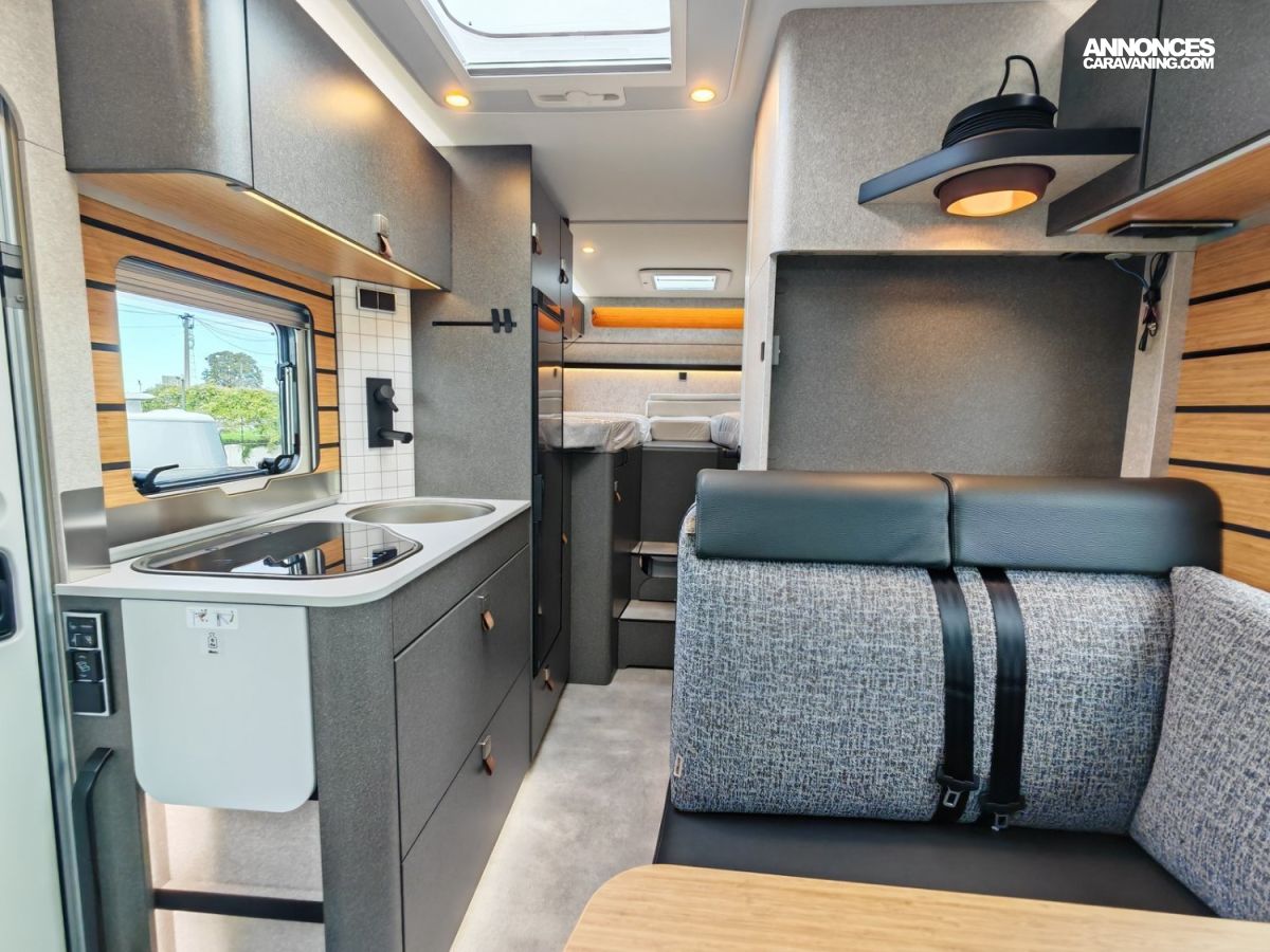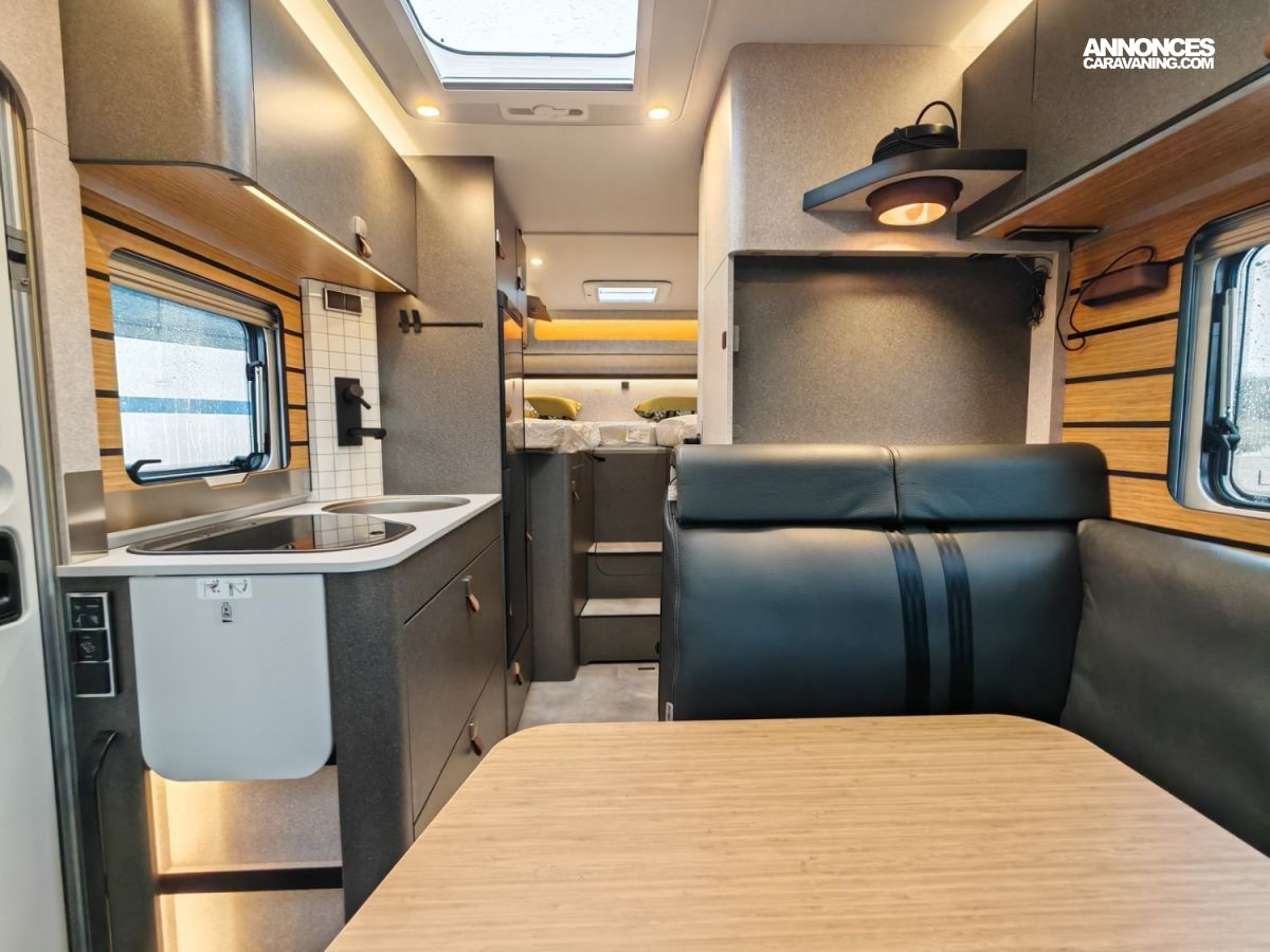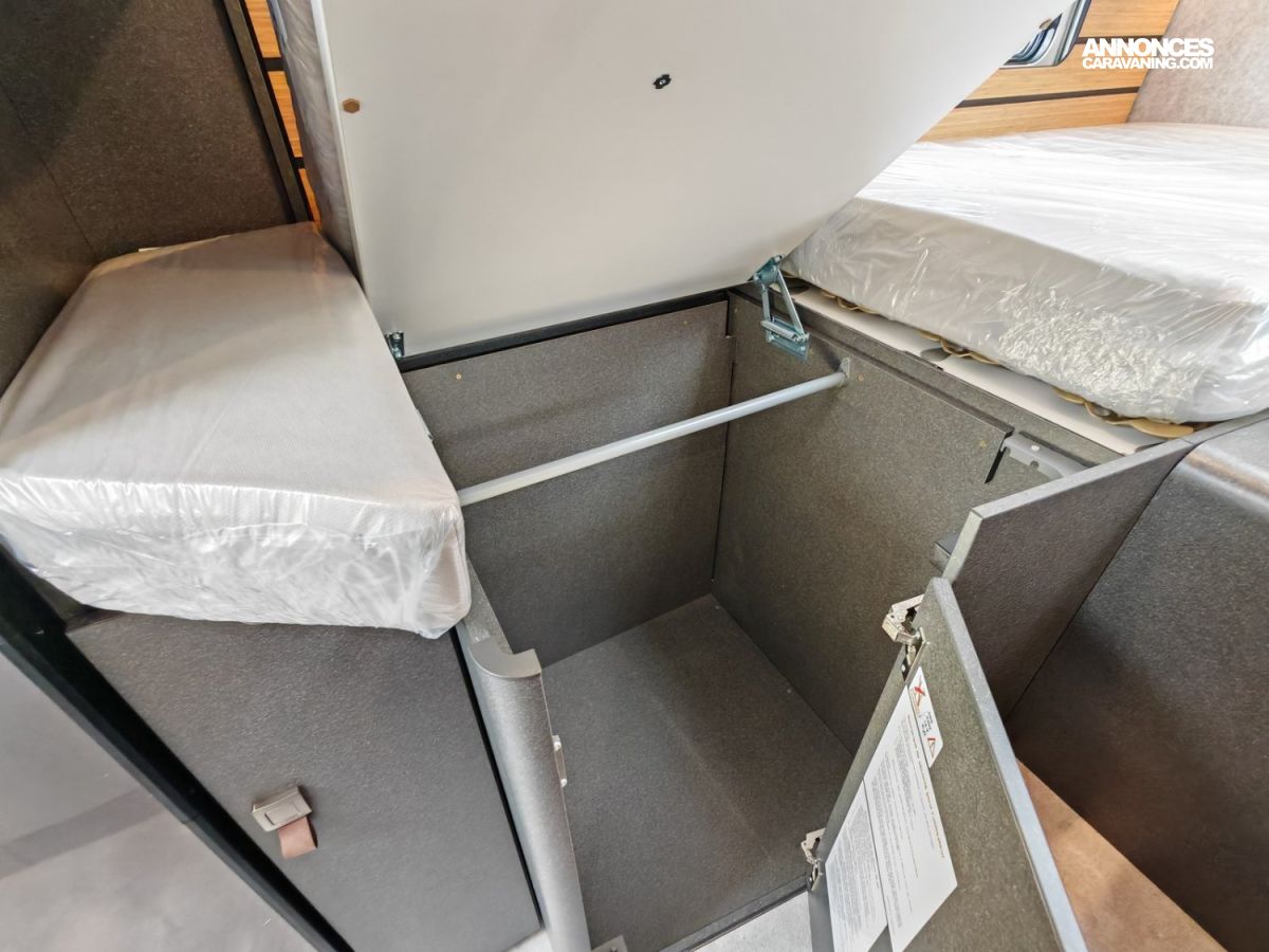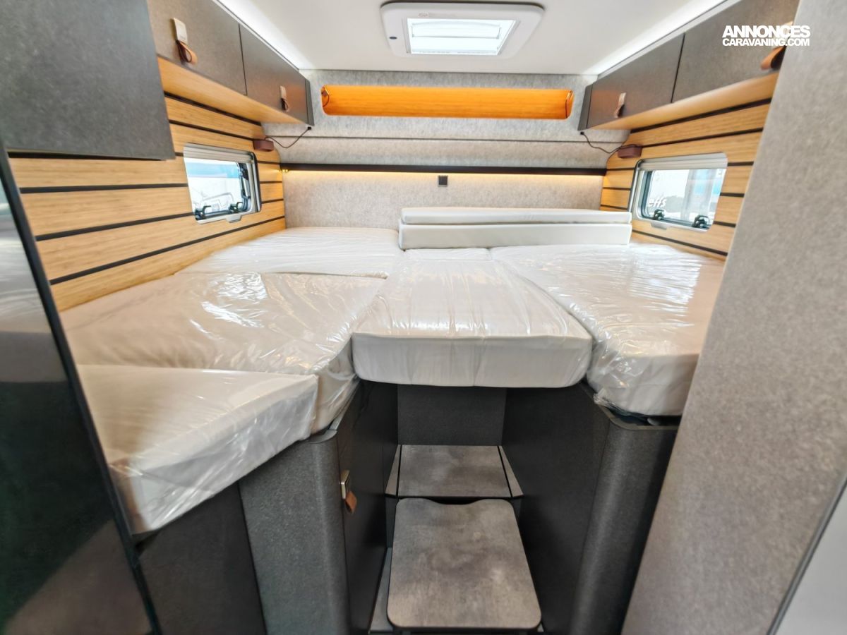- Pack "Confort cellule" (Système de couchage avec sommier à assiettes pour le lit arrière, draps-housse sur mesure pour lit arrière adaptés aux contours du matelas, système d'éclairage à plusieurs niveaux "Ambient Light" avec commande dynamique et balisage au sol, suspension multifonction et liseuse d'ambiance, revêtement supplémentaire pour mise à niveau du cabinet de toilette, moquette dans le garage, 4 coussins avec housses, prises supplémentaires),