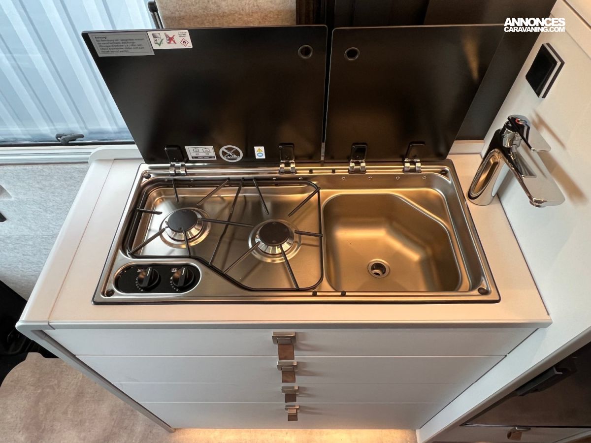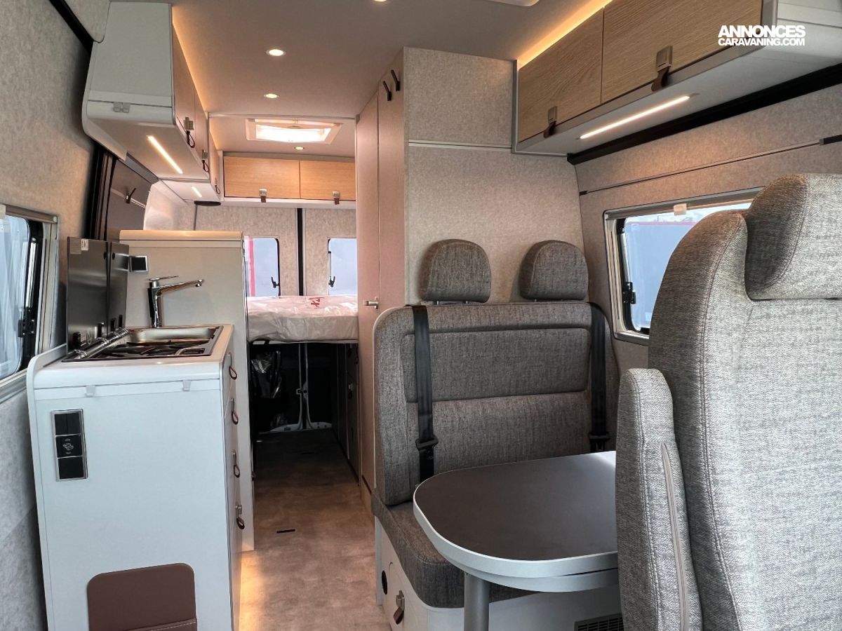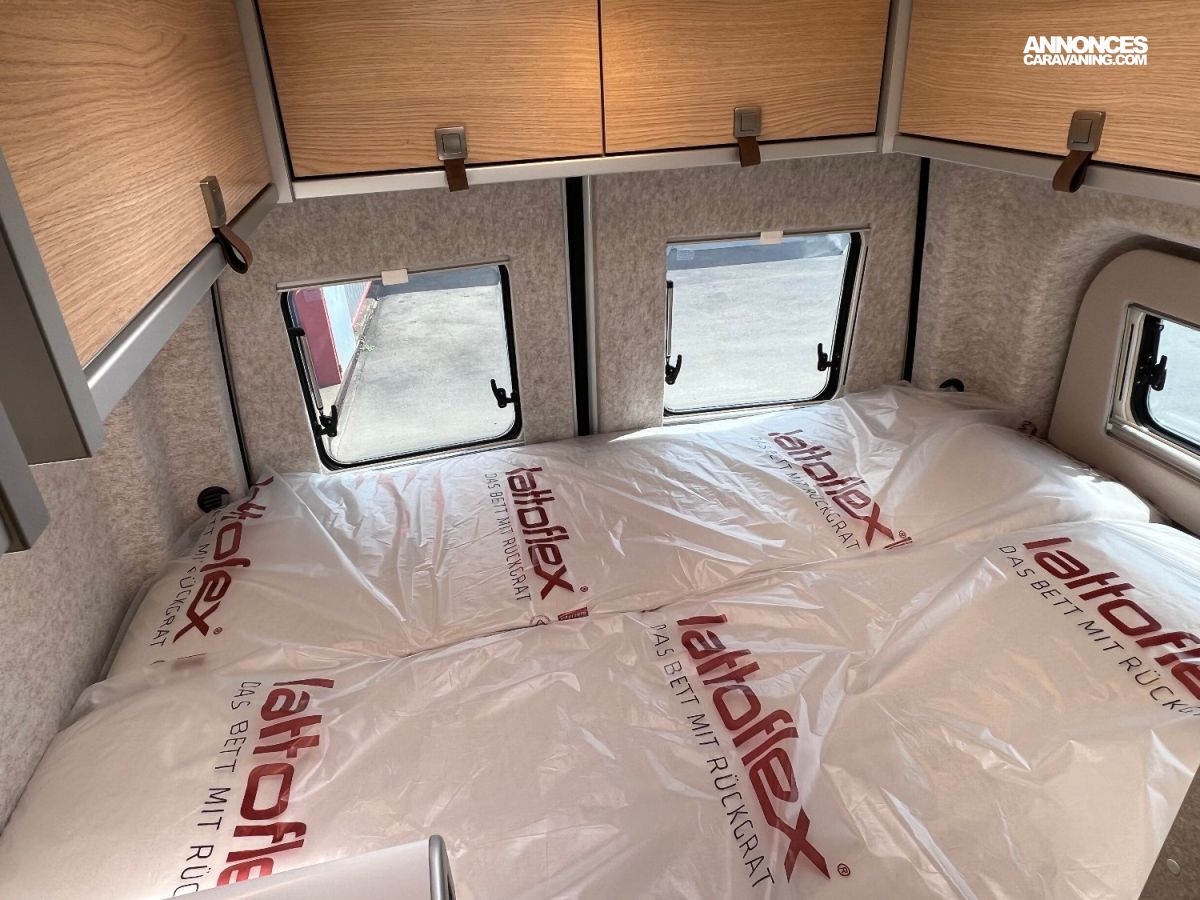 - Pack Confort Cellule GCS : Système d'éclairage d'ambiance : système d'éclairage à plusieurs niveaux avec commande dynamique et individuelle (y compris l'intensité de la lumière) ainsi qu'un balisage au sol, Ambiance style "HOME" (2 coussins houssés + pochette de rangement en tissu), Draps-housses sur mesure pour lits arrière adaptés aux contours du matelas, Caillebotis de douche avec surface en liège
