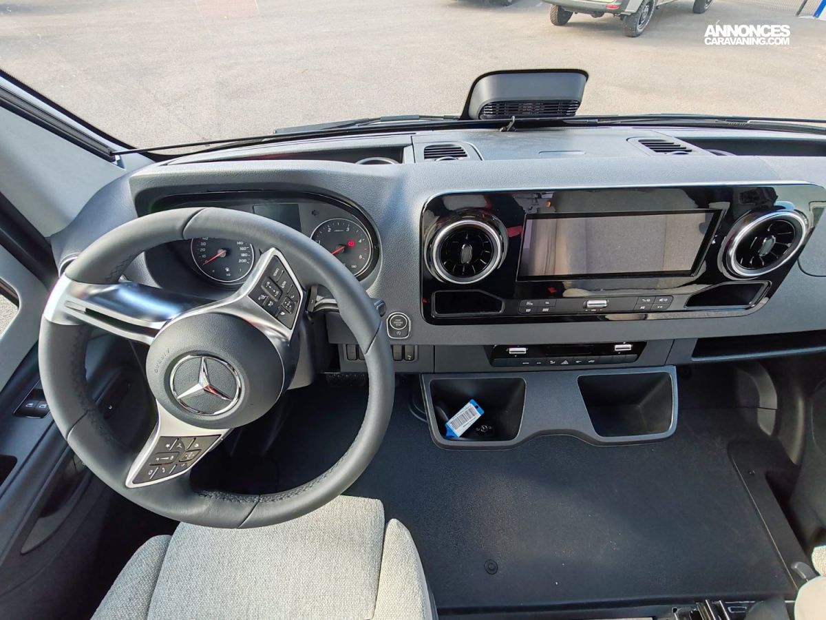 FINITION PREMIUM : ( Régulateur de vitesse actif DISTRONIC PLUS avec commandes au volant, Instrumentation combinée avec écran Pixel-Matrix Mercedes-Benz, Pack Acoustique Mercedes-Benz, Détecteur de franchissement de ligne, Assistant vigilance du conducteur, Détecteur de pluie, Boite de vitesse automatique 9G-TRONIC incluant la fonction HOLD, volant cuir assistant reconnaissance des panneaux de signalisation, Système multimédia MBUX avec navigation, intégration pour smartphone commande vocale et caméra de recul, Feux LED haute performance, rangement pour smartphones avec fonction de recharge sans fil et indicateur du niveau de charge, Climatisation automatique THERMOTRONIC, Bande filtrante thermo-isolante sur pare-brise Système multimédia MBUX 10,25" avec caméra de recul, commande vocale et écran tactile Frein de stationnement électrique Volant multifonction Essieu avant renforcé Régulateur de vitesse avec commandes au volant Radio DAB Pack chargement pour le tableau de bord avec 2 x prises USB-C 5 V / 1 x prise 12 V )