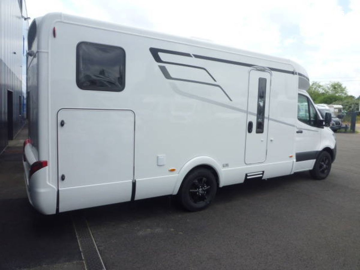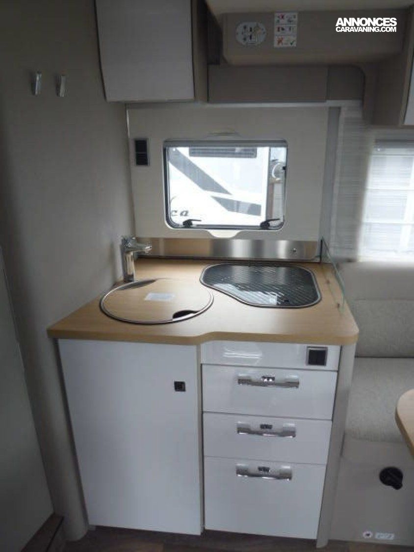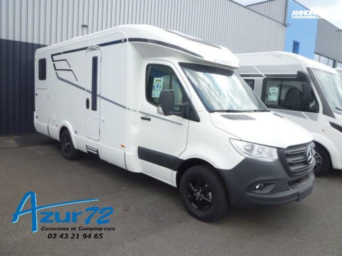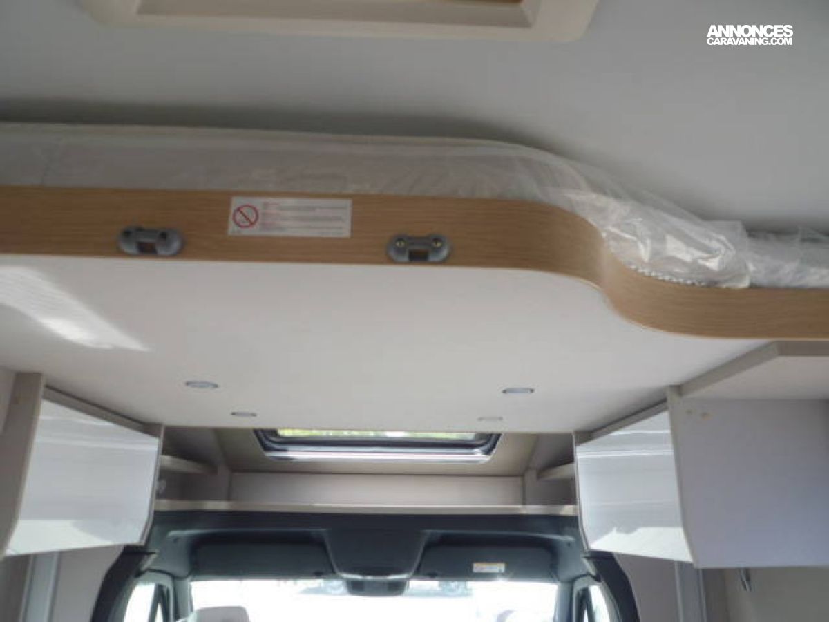 Cuisine en L, Douche indépendante, Grande soute, lit jumeaux, lit pavillon, Salon avant banquettes face à face, Salon avant sièges pivotants, WC Cassette.