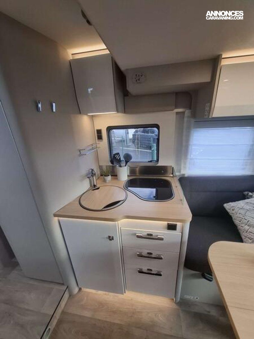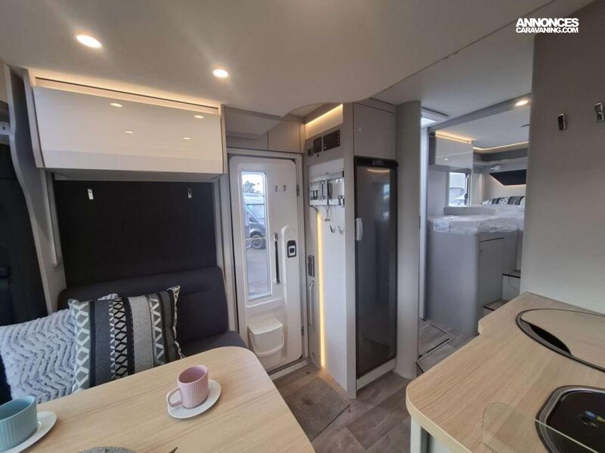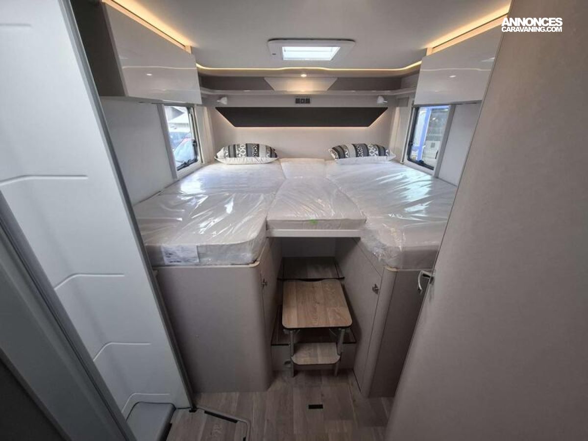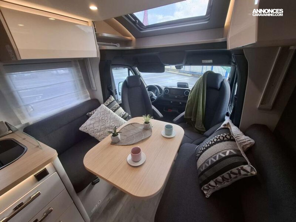 OPTIONS CONSTRUCTEUR FINITION PLUS Boîte de vitesses automatique 9G-TRONIC incluant la fonction Hold Essieu avant renforcé Bande filtrante thermo-isolante sur pare-brise Pack Acoustique Mercedes-Benz Frein de stationnement électrique Climatisation semi-automatique TEMPMATIC Instrumentation combinée avec écran Pixel-Matrix Mercedes-Benz Volant cuir (uniquement avec la boîte de vitesses automatique) Volant multifonction Régulateur de vitesse avec commandes au volant Régulateur de vitesse actif DISTRONIC PLUS avec commandes au volant Détecteur de franchissement de ligne Assistant vigilance du conducteur Détecteur de pluie Assistant reconnaissance des panneaux de signalisation Radio DAB Système multimédia MBUX avec navigation, intégration pour smartphone, commande vocale et caméra de recul Système multimédia MBUX 10,25" avec caméra de recul, commande vocale et écran tactile + PACK CONFORT CELLULE TRAMP S Prises supplémentaires : 4 x 230 V / 1 x 12 V / 1 x double-USB Coussins avec housses (4 pièces) Éclairage d'ambiance Draps-housses sur mesure pour lits arrière adaptés aux contours du matelas Trappe extérieure côté gauche, 75 x 85 cm : 7555 €