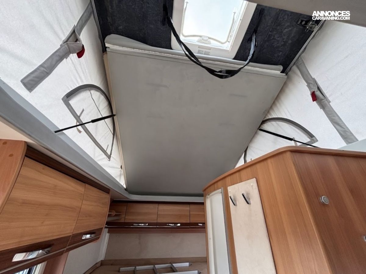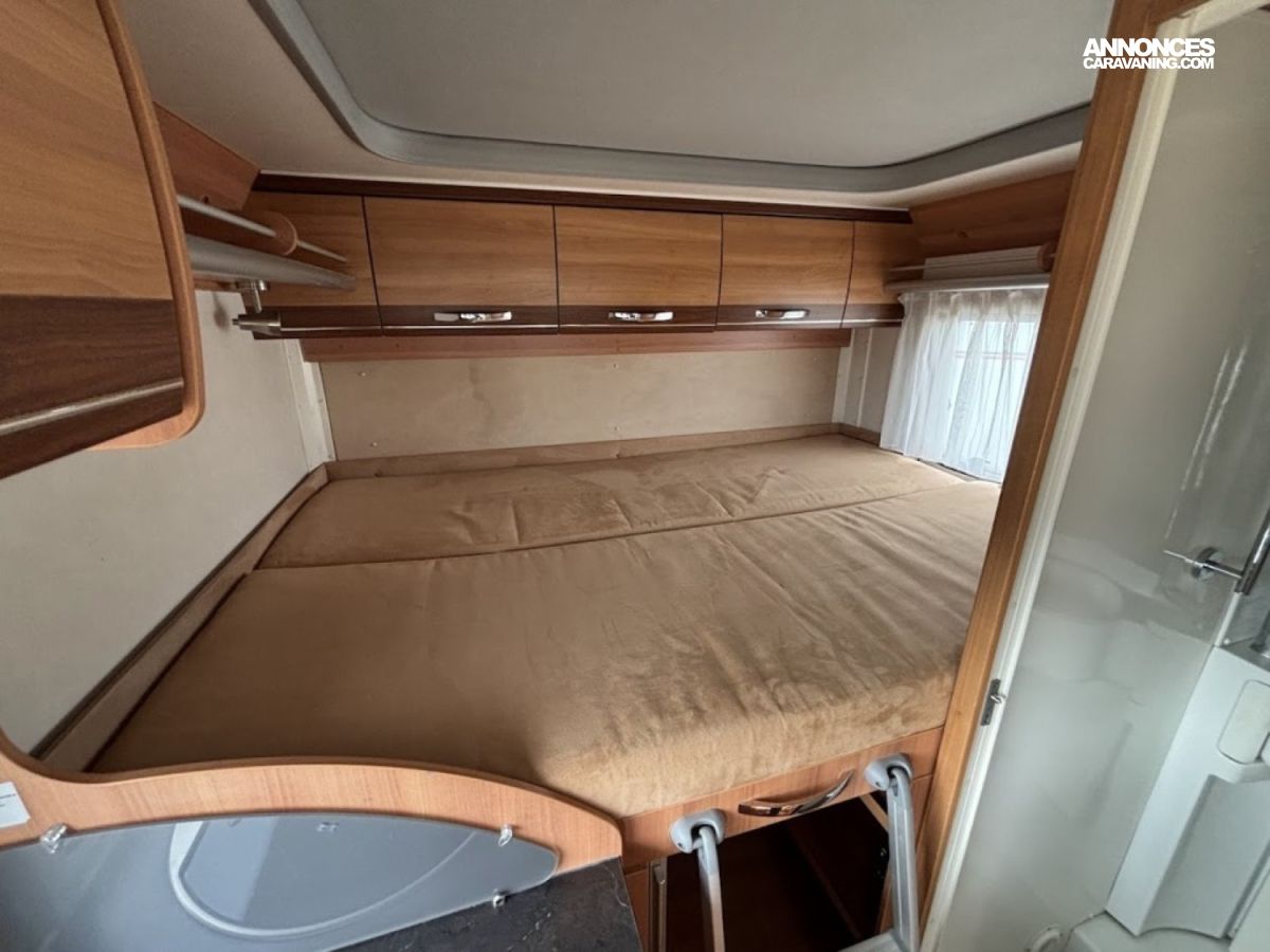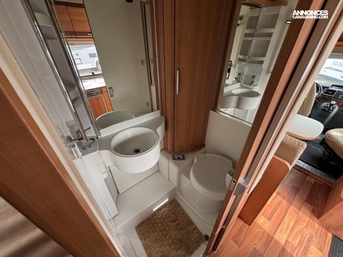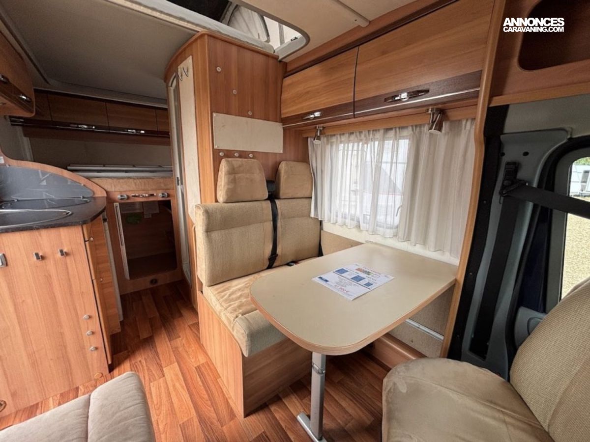 Cuisine en long, Douche à vario, Grande soute, Lit arrière transversal, Lit toit relevable, Salon avant sièges pivotants, WC Cassette.