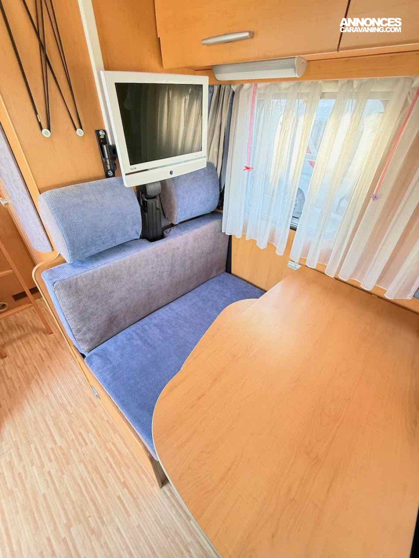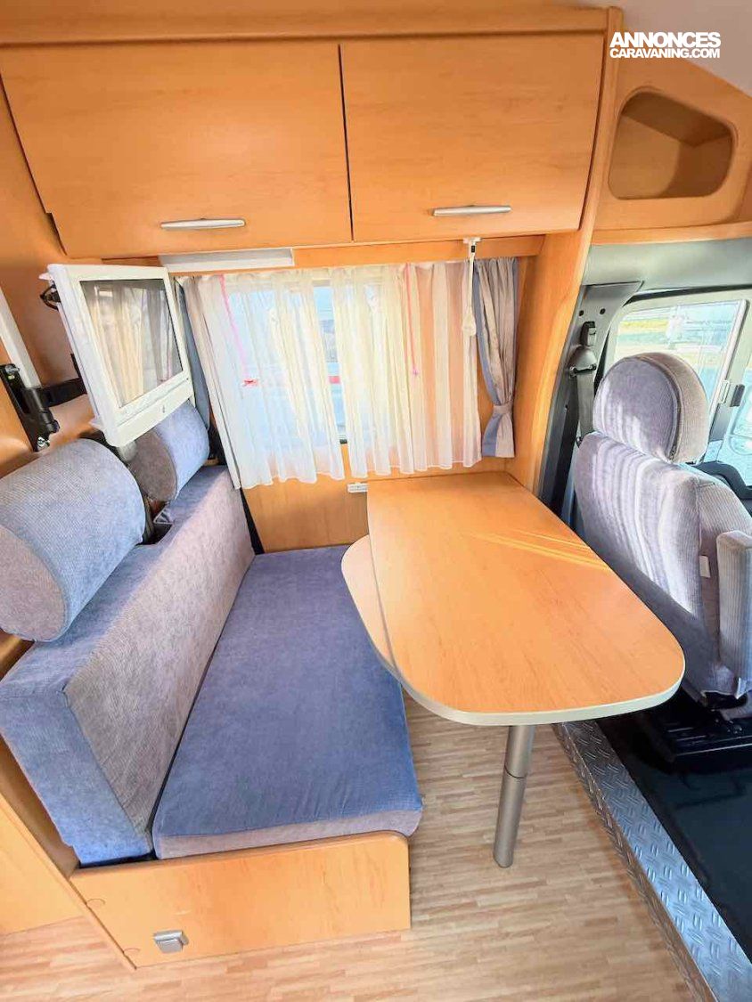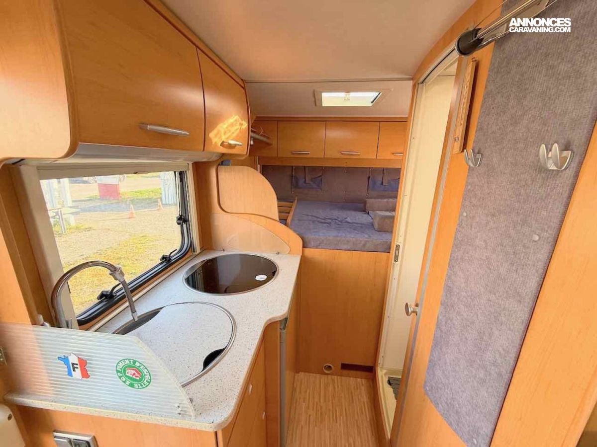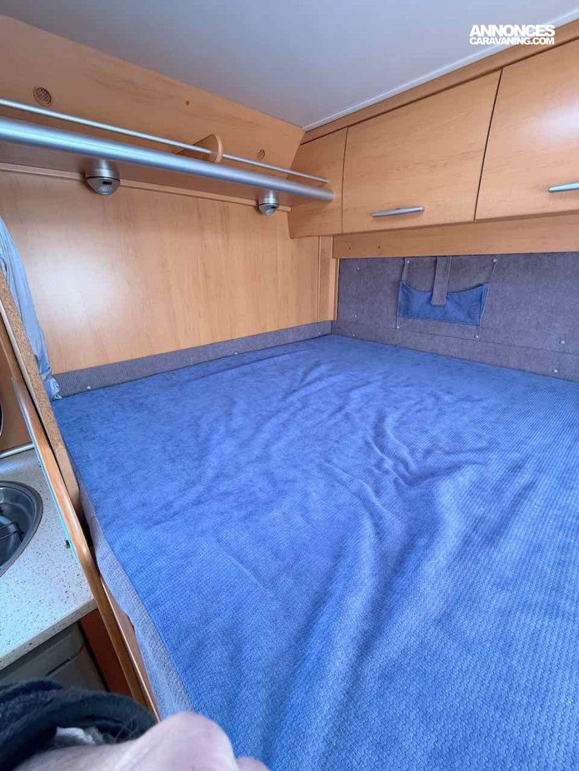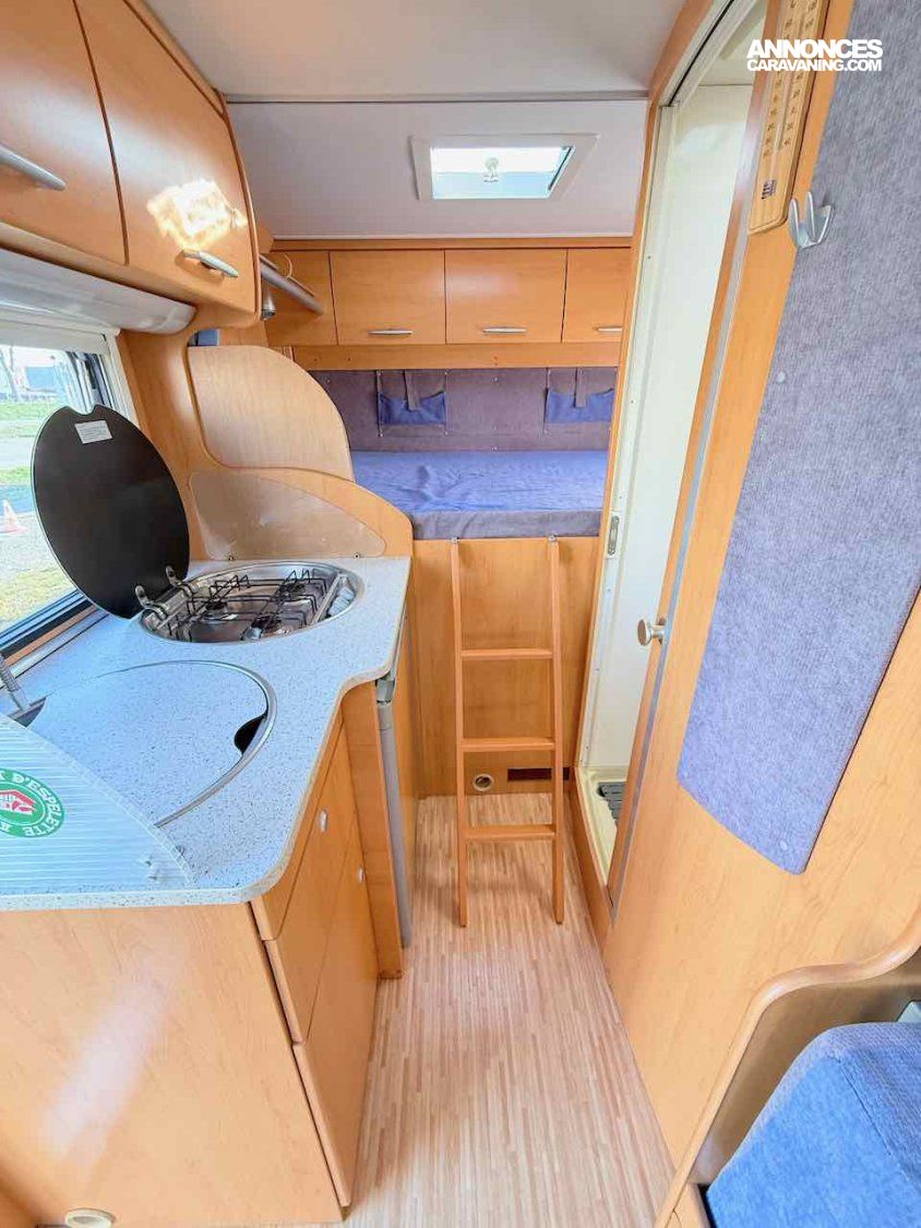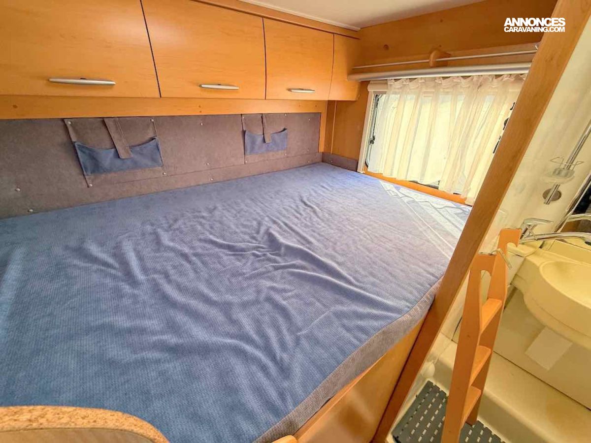 De petite taille, 5,99 m, ce profilé permet de voyager et de faire dormir 2 personnes, grâce à un lit permanent, sur soute de 195 x 135 cm.