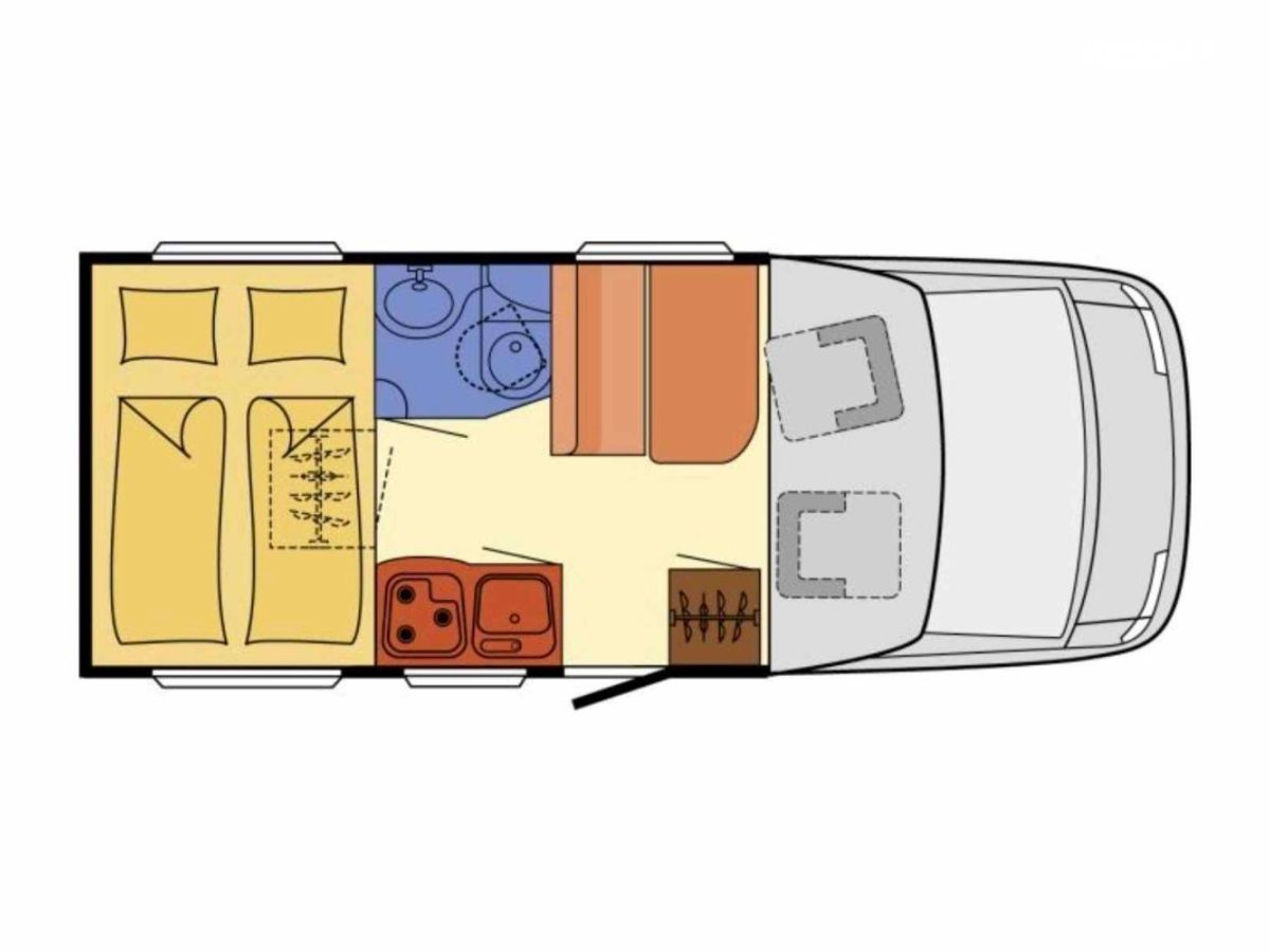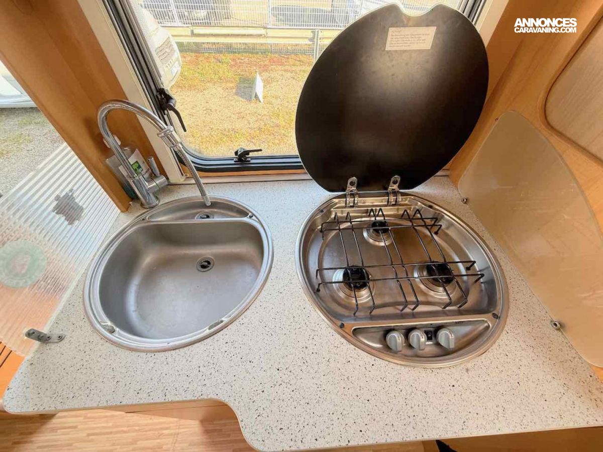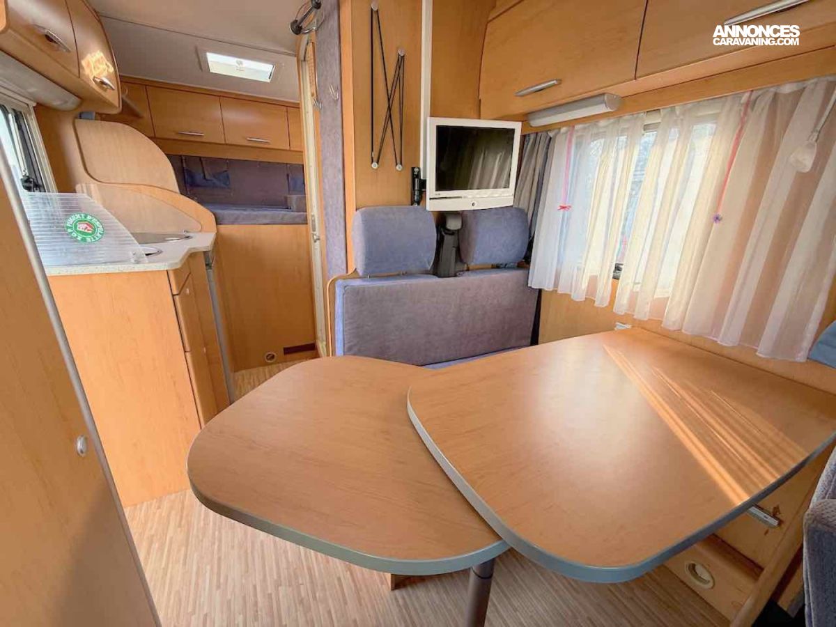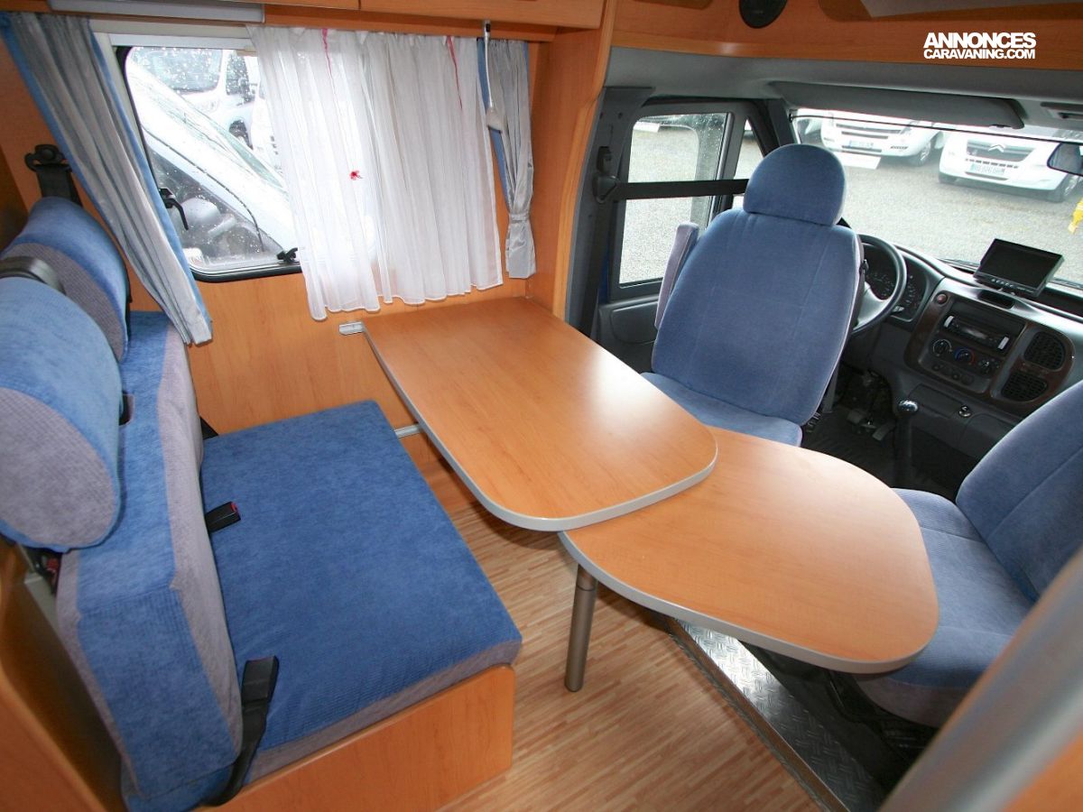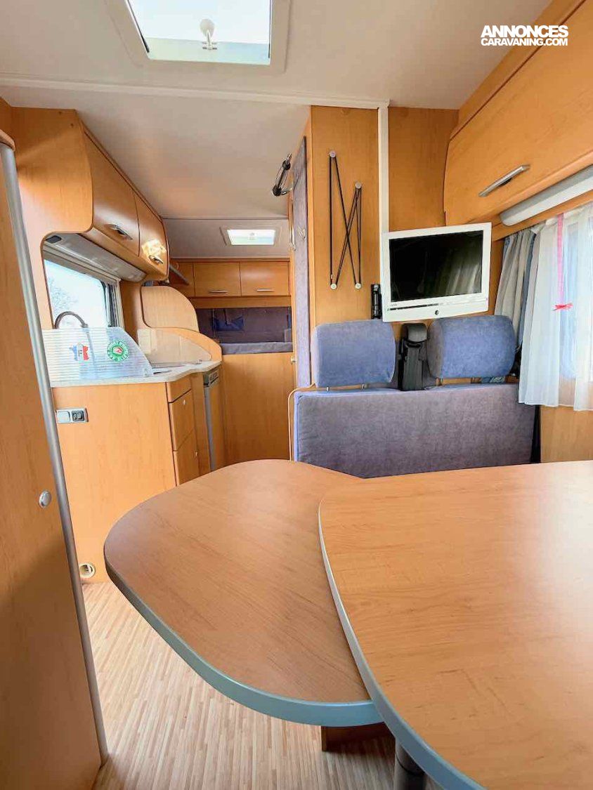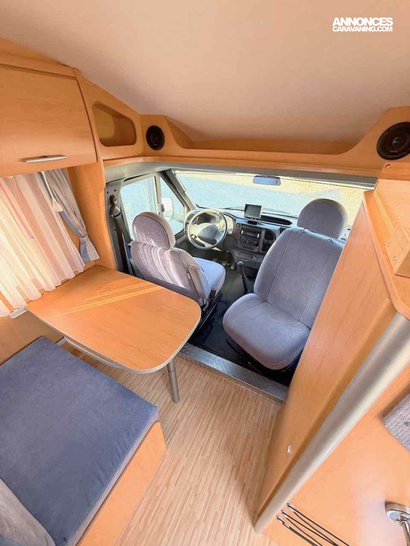 De petite taille, 5,99 m, ce profilé permet de voyager et de faire dormir 2 personnes, grâce à un lit permanent, sur soute de 195 x 135 cm.