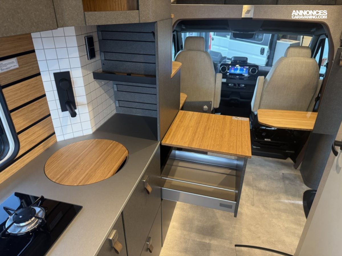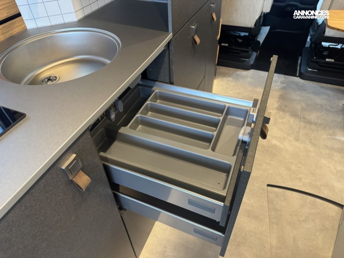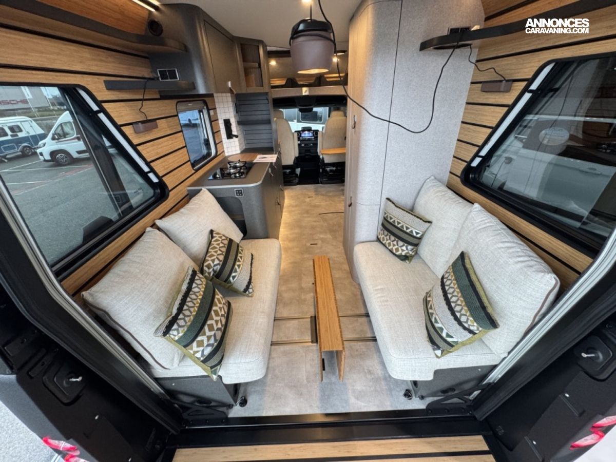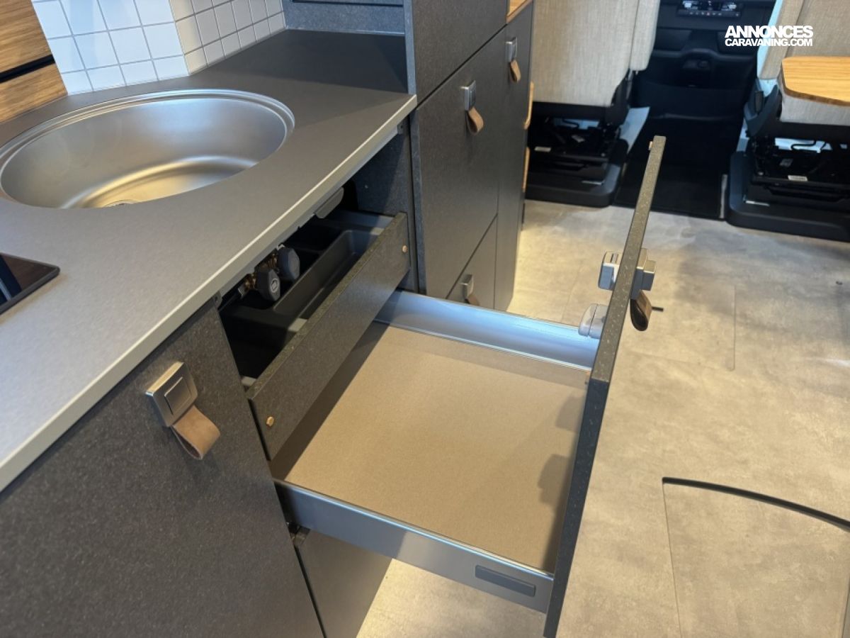 Avec ses 6,45 m de long, le Venture S 375 reste compact et maniable, tout en proposant un intérieur d’un raffinement exceptionnel. Finitions premium, mobilier design, grandes baies vitrées et toit panoramique créent une atmosphère lumineuse et moderne. Chaque détail incarne le savoir-faire Hymer, synonyme de qualité et de durabilité.