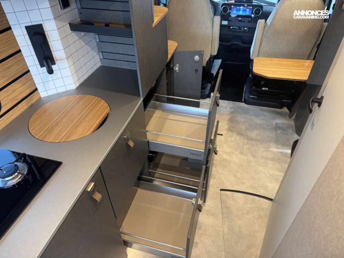 Ce camping-car 4x4 Hymer est pensé pour l’autonomie et le confort toutes saisons : isolation renforcée, chauffage performant, double couchage modulable, rangements ingénieux et technologies embarquées Mercedes dernière génération.