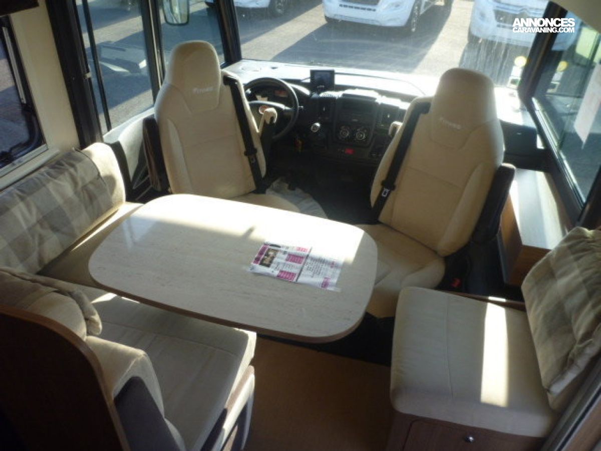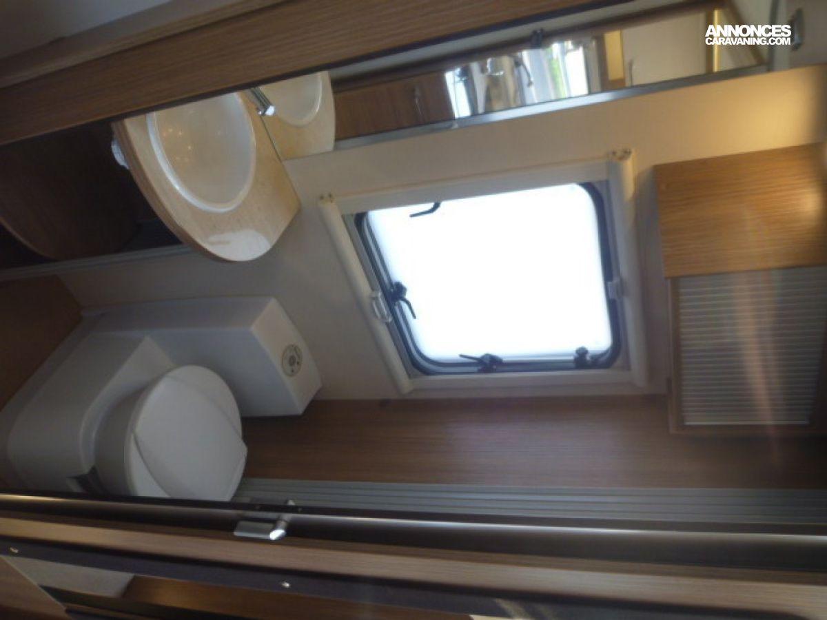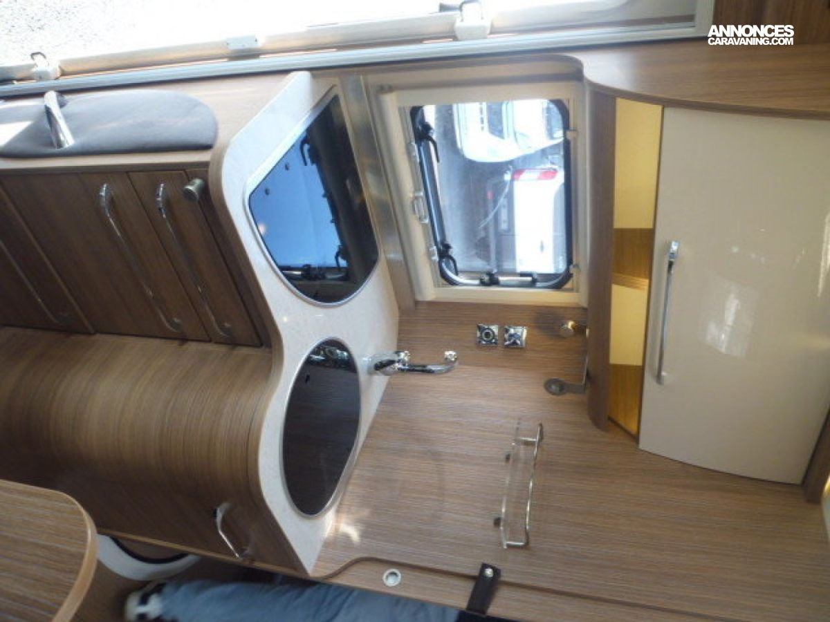 Cuisine en long, Douche indépendante, Lit central, Lit dînette avant, lit pavillon cabine, Salon avant sièges pivotants, Salon en L, Soute réglable en hauteur, WC Cassette.
