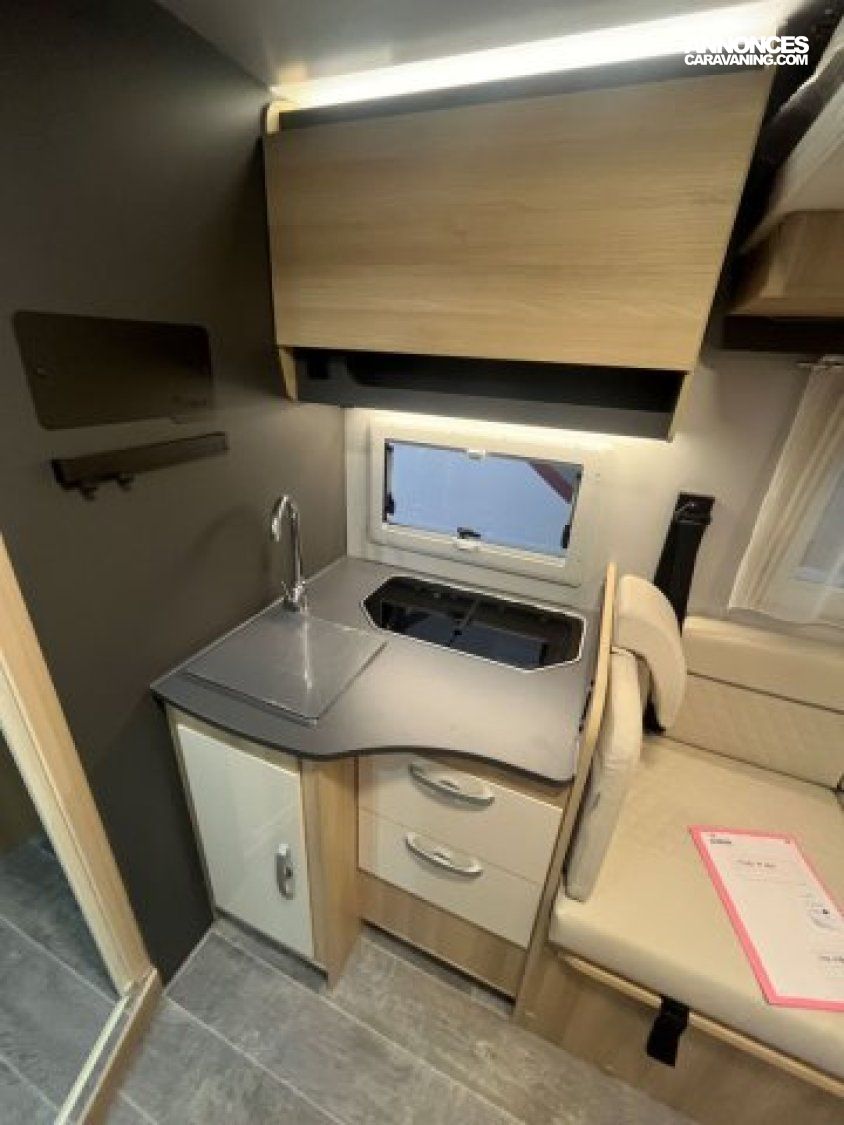 4 places couchage de série :- Lit pavillon électrique intégré 2 places (149/125 cm x 192 cm)- Lit d’appoint dînette (160/110 x 201 cm)