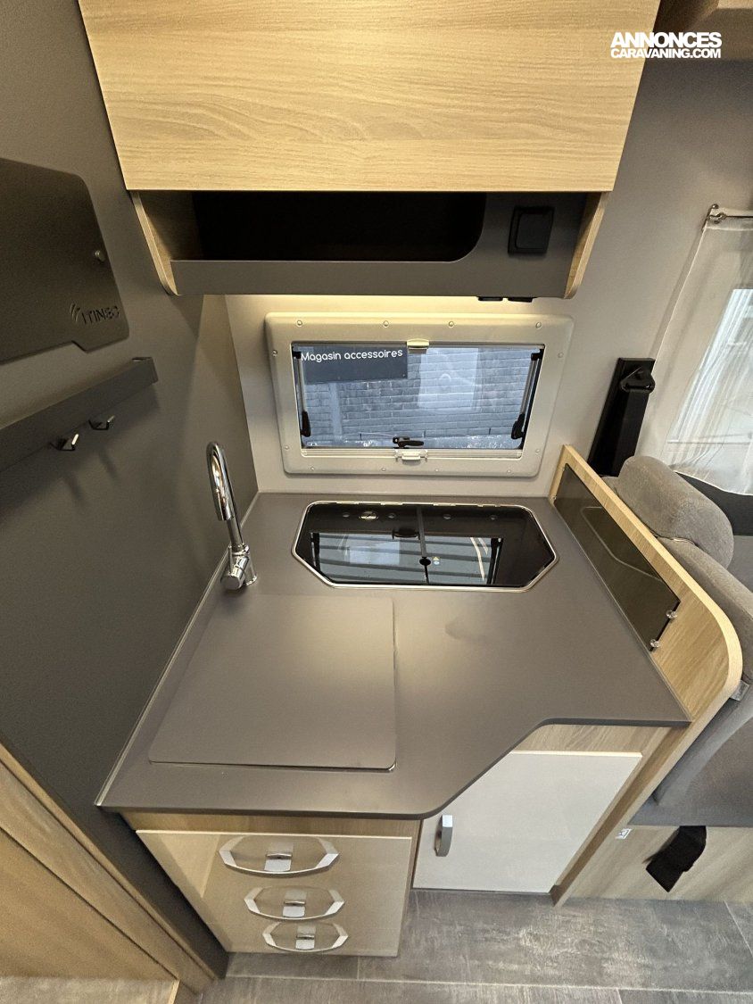 Energie : Gazole 60l – Eau propre = 100L – usée = 100L – réfrigérateur 145L
